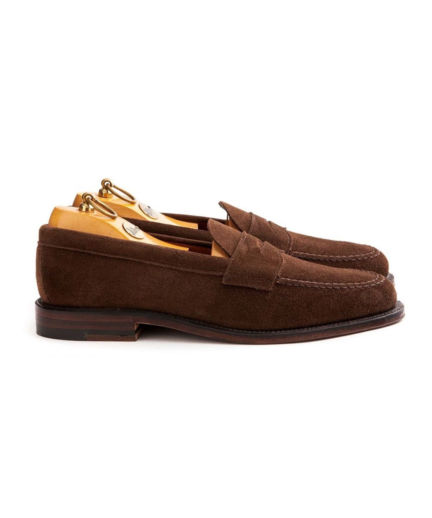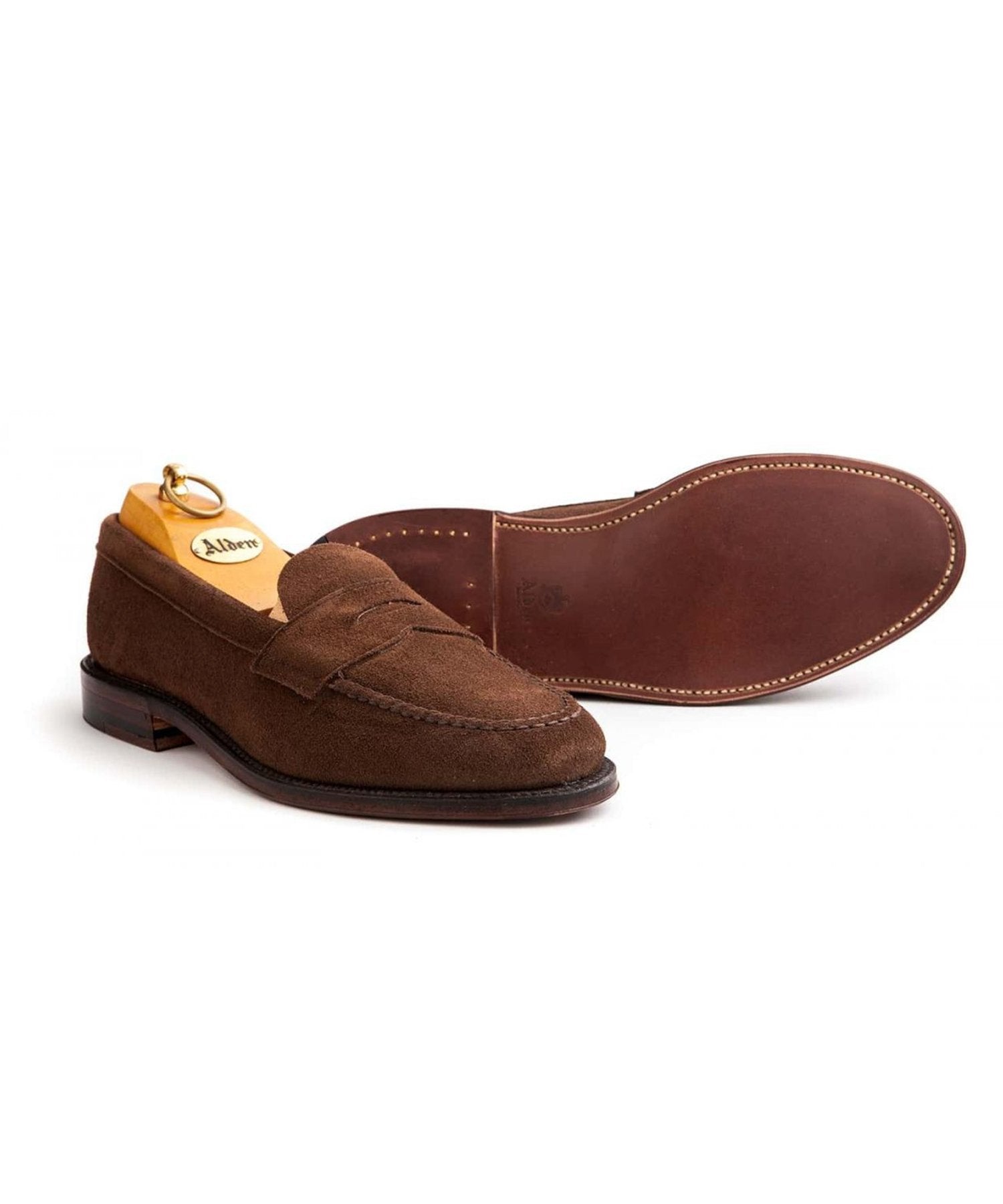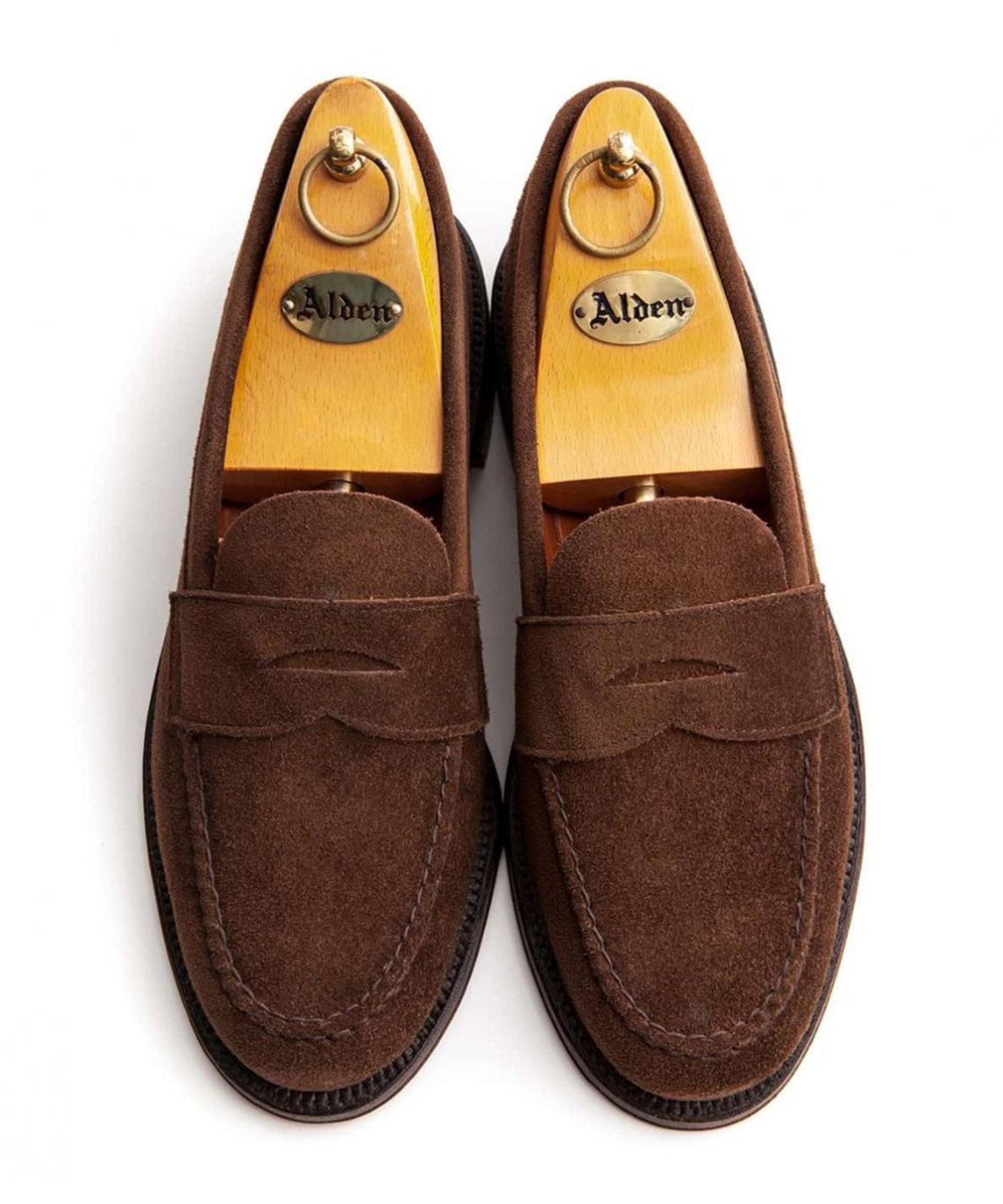 Alden’s unlined dark brown suede loafer is a classic model known as the Leisure Handsewn, or LHS for short, that's built on the Van last. This shoe fits like a sock, wrapping your foot in light and vibrant suede. With its oil-soaked flex welt, these loafers are light and flexible.