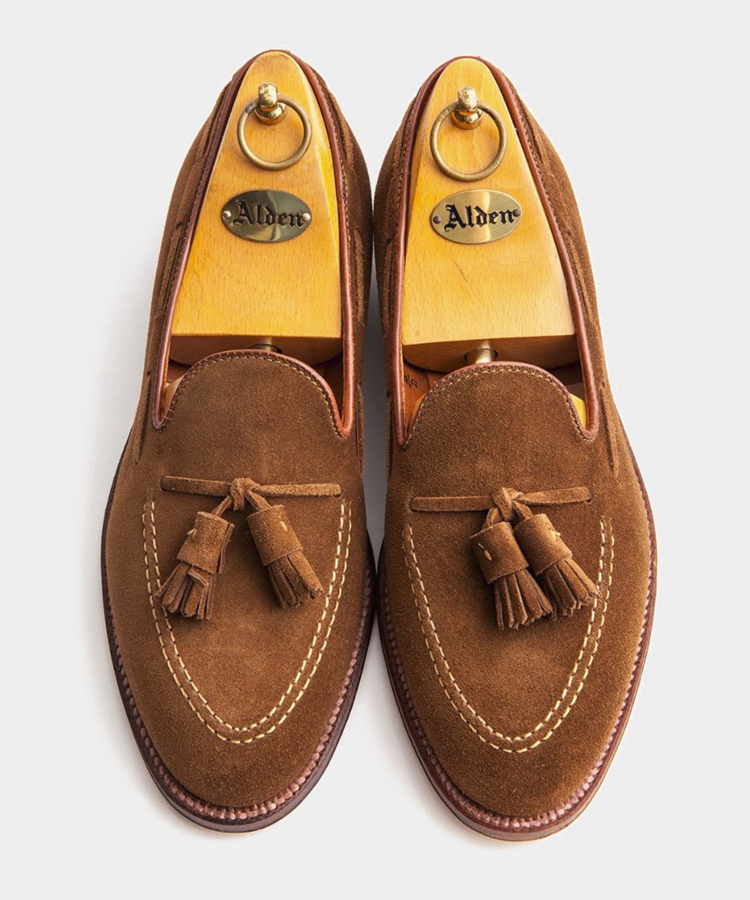 A classic Alden tassel loafer model, built on the Aberdeen last. Made in snuff suede, this shoe fits like a sock, wrapping your foot in light and vibrant suede.