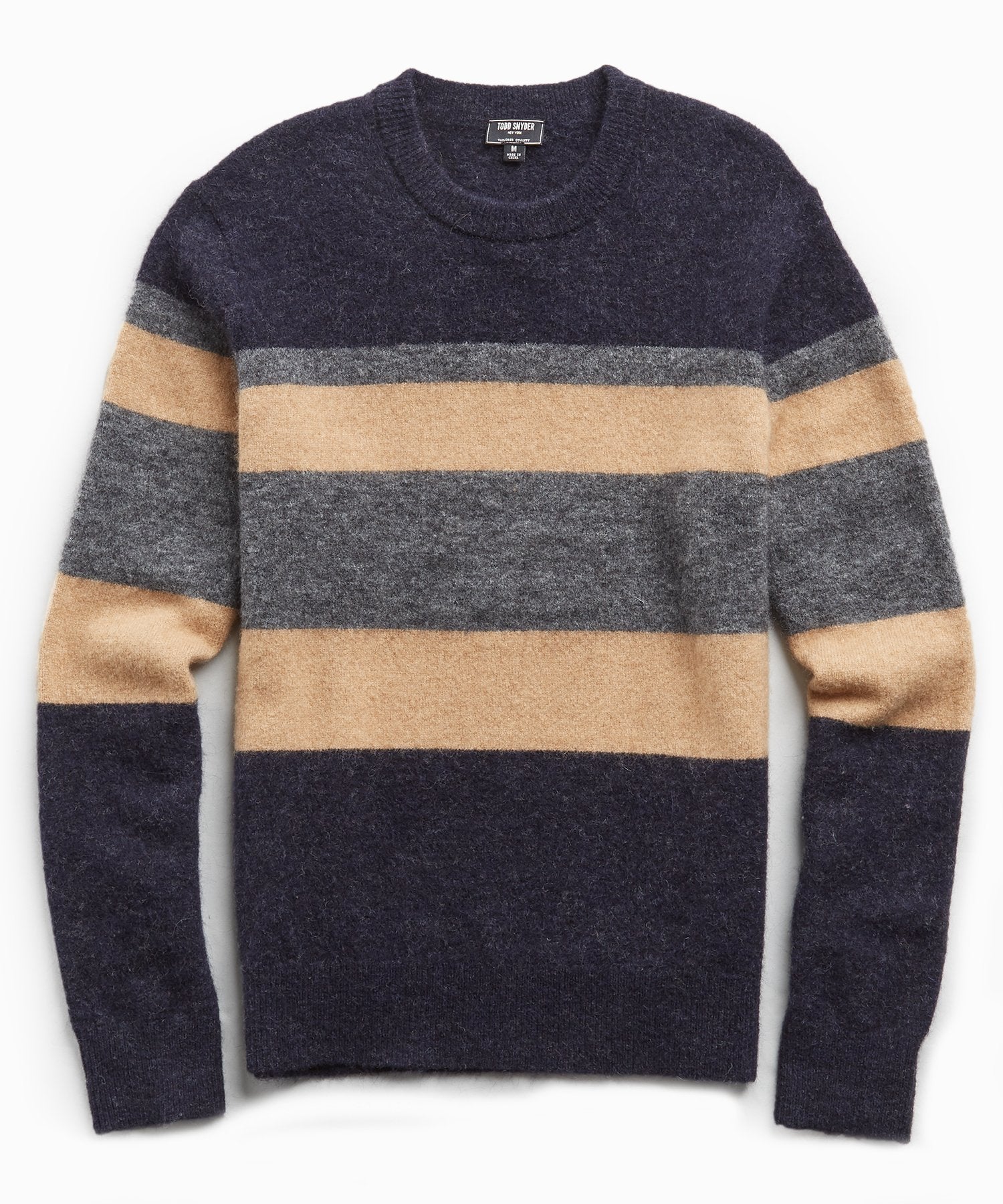 Made from soft alpaca blend wool, this lightweight yet exceptionally warm classic crew is a staple piece for casual fall layering. Sourced from Italy, the yarn is lightly brushed for a soft feel, featuring lycra cuffs and waistband for durability and retention. Easy, relaxed fit that’s key for styling and layering over a basic tee or dress shirt.