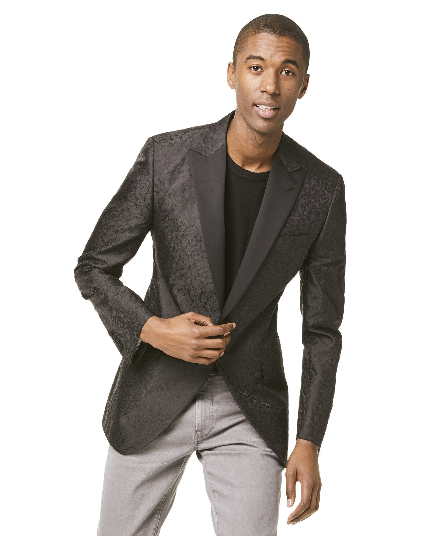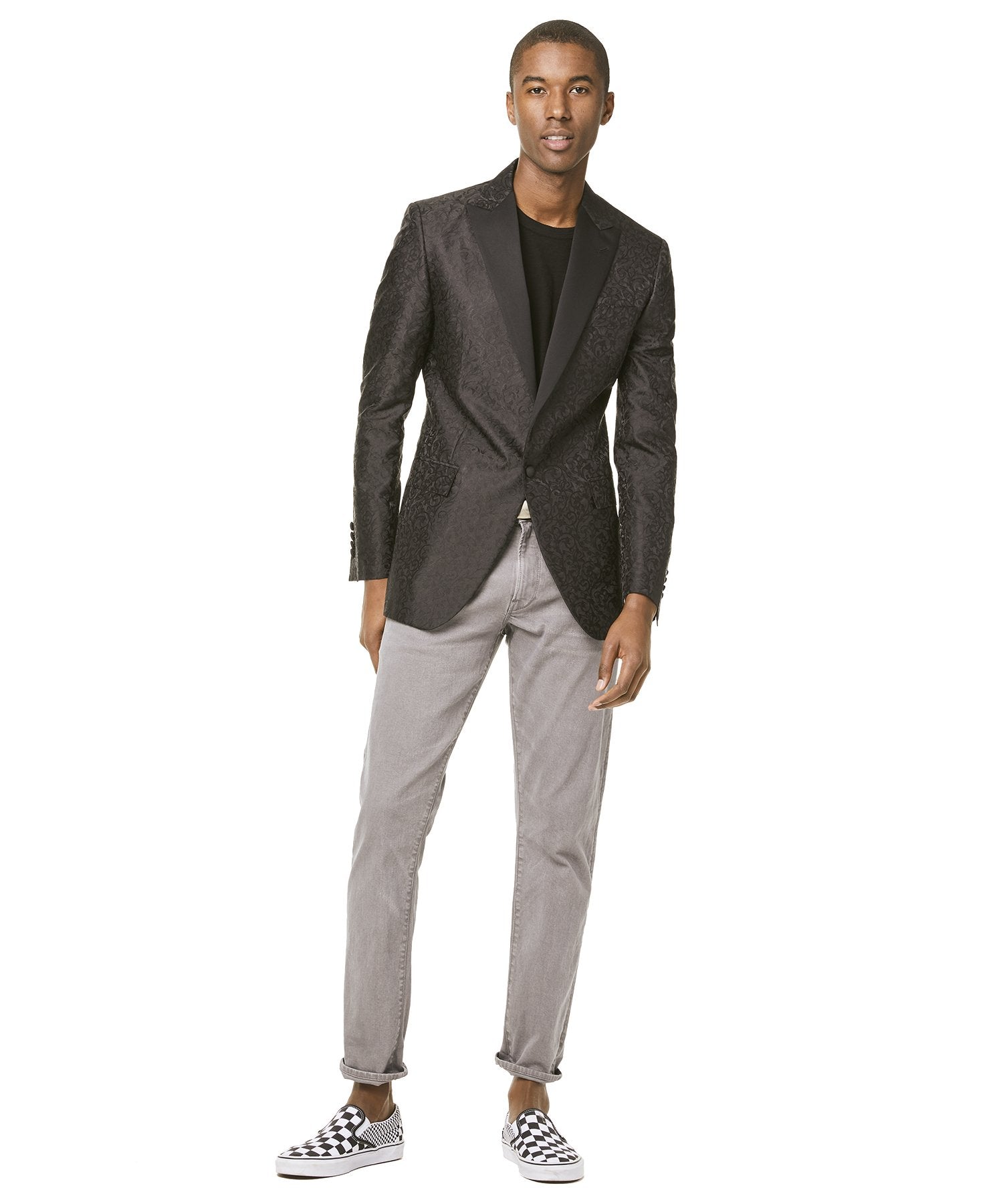 Keep a black dinner jacket in your closet and you’ll always be ready for any occasion. This version is ultra versatile in handsome silk jacquard from Stephen Walters & Sons, who’ve been weaving the finest textiles in England since 1720. It’s impeccably tailored in our signature Sutton fit with a peak lapel and premium details. Pair it back to a tuxedo trouser for a classic black tie look, or with dark denim for a modern spin on evening.