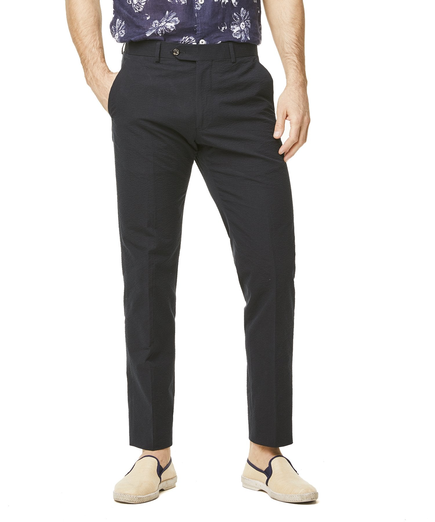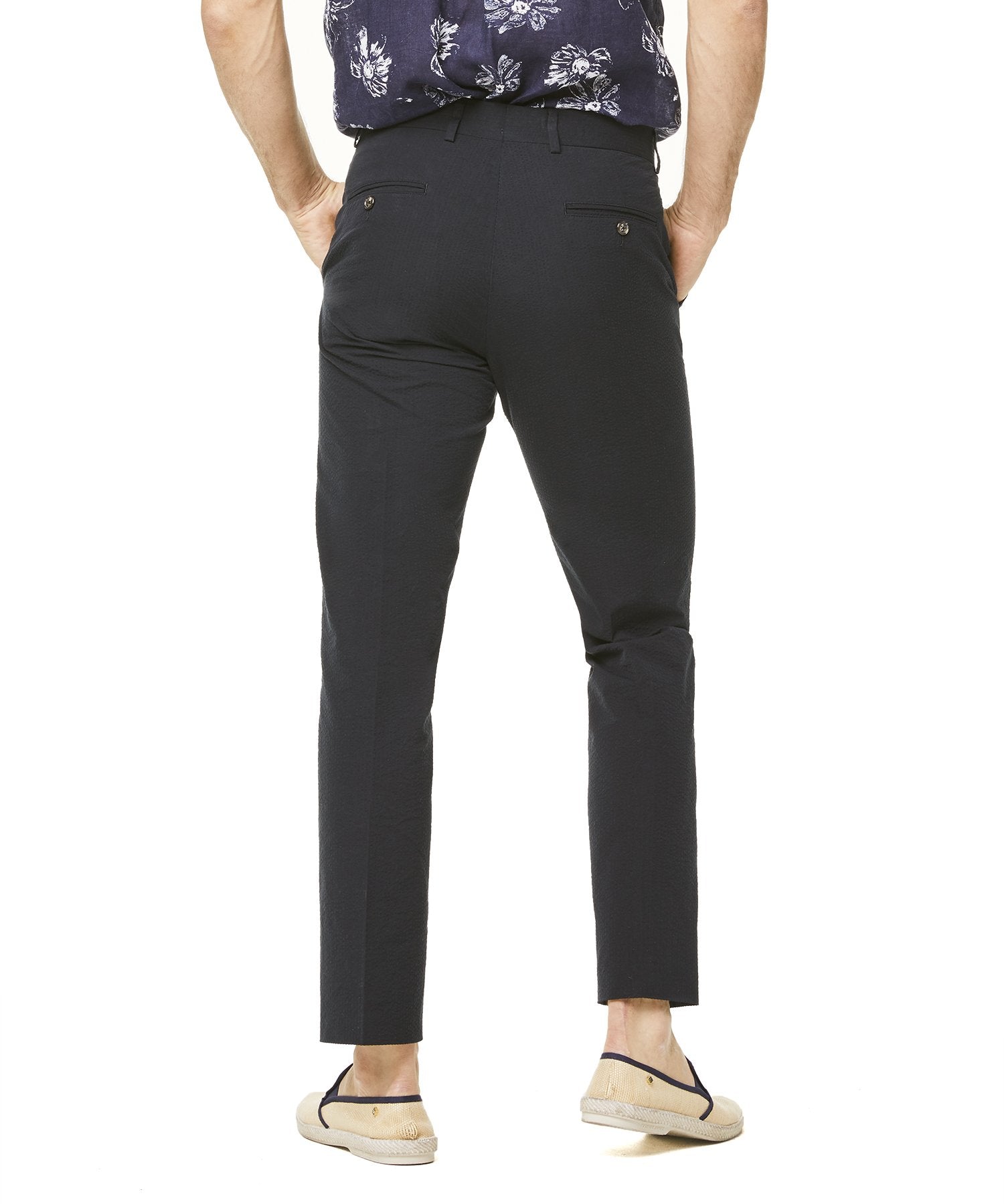 One half of the perfect spring suit. Our signature Sutton Suit trouser offers a modern tailored fit for every guy. It’s impeccably crafted right here in the USA from premium cotton seersucker milled in Japan. Pair it with the matching jacket and a crisp tee for a smart spring statement.