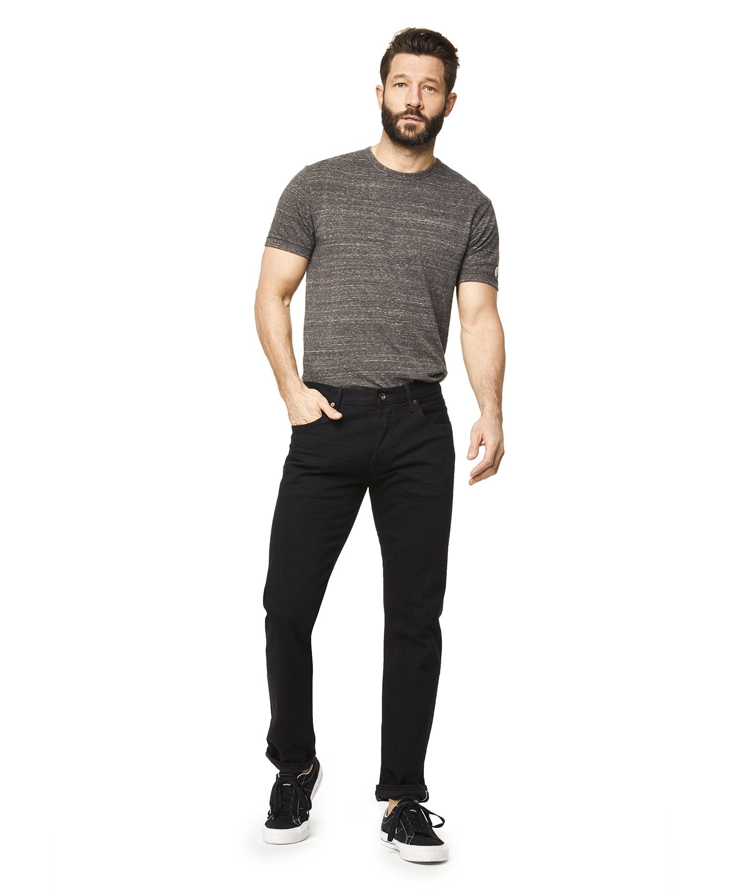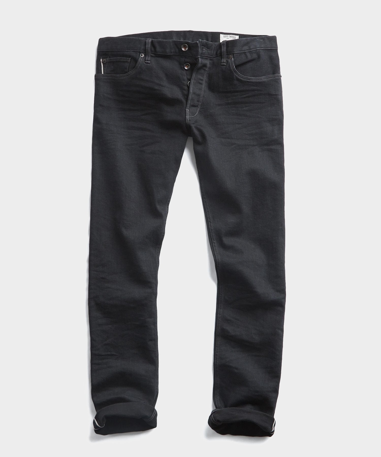 Cut with a modern slim fit from premium Japanese stretch selvedge fabric, this pair is rinsed for an authentic black wash and a lived-in feel from the first wear. Softer than our other denim offerings and styled with a button fly, this new signature style is a laid-back alternative to your go-to black pant, and is destined to get even better with age.