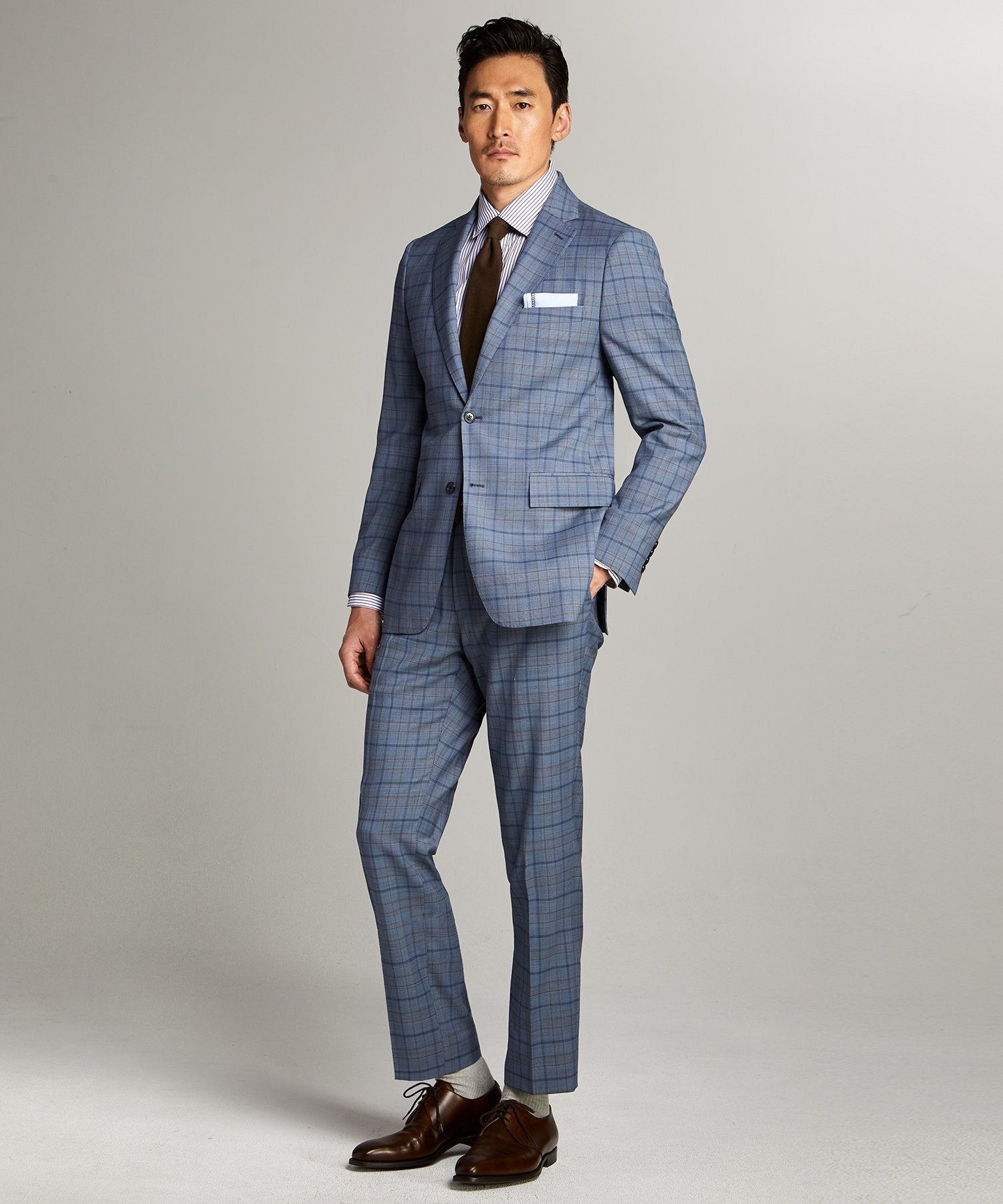 This season’s Sutton suit jacket has a modern tailored fit for every guy and stands out as the ideal option for summer events. Made in Canada with a premium tropical-weight wool from renowned Italian mill Tollegno 1900. The blue check windowpane pattern lends to a versatile and classic style that works with matching pants or as a foundation piece for other looks.