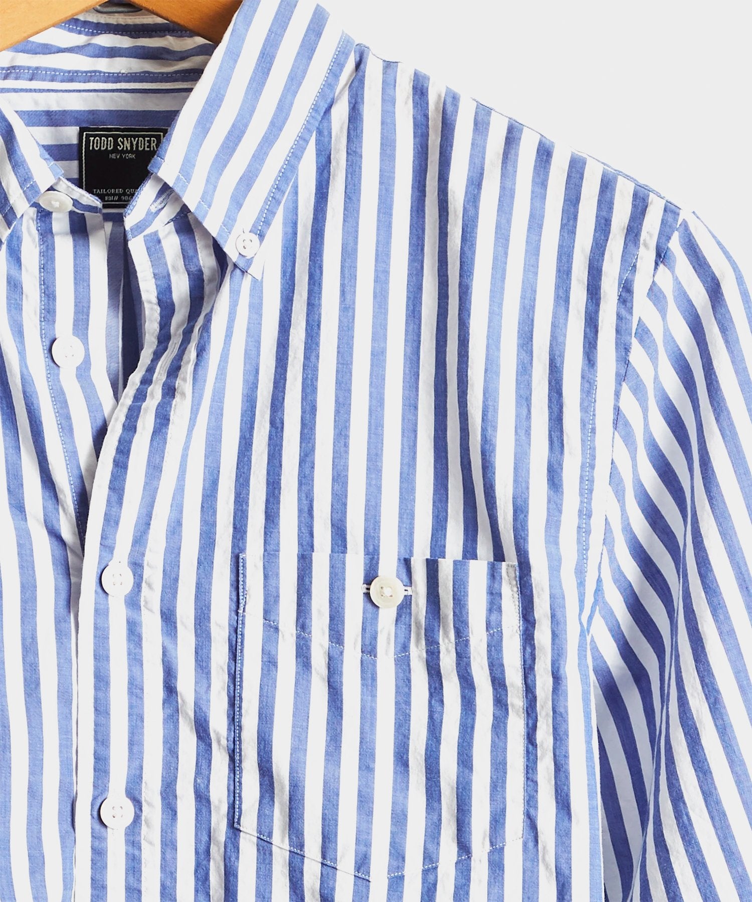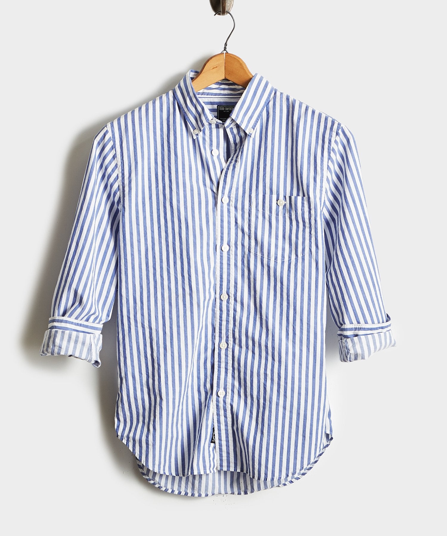 We’ve refined the classic shirt with a slightly elongated collar point length for impeccable good looks—whether you’re wearing it with or without a tie. Crafted from premium mid-weight, garment-dyed bold blue stripe fabric from Somelos, a family-owned mill in Portugal that’s been in operations for generations. It’s the stylish staple that every man should have as a go-to item.