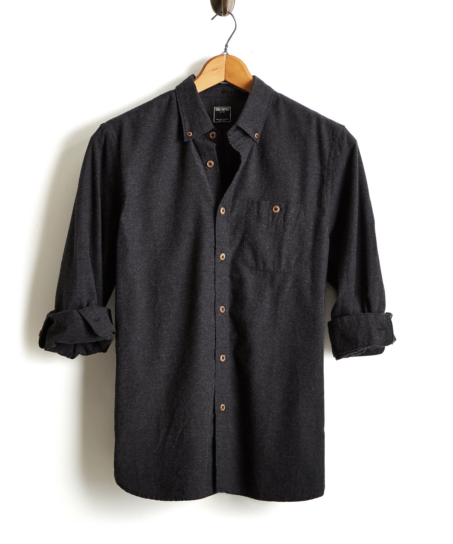 Brushed Cotton Cashmere Twill Shirt in Charcoal