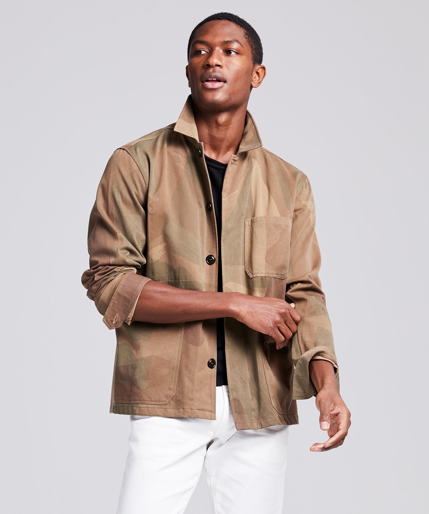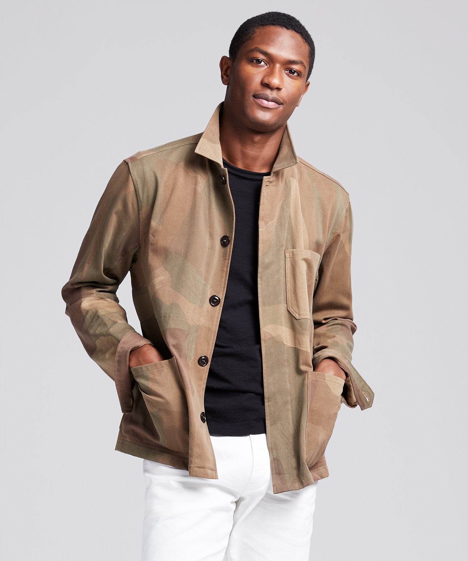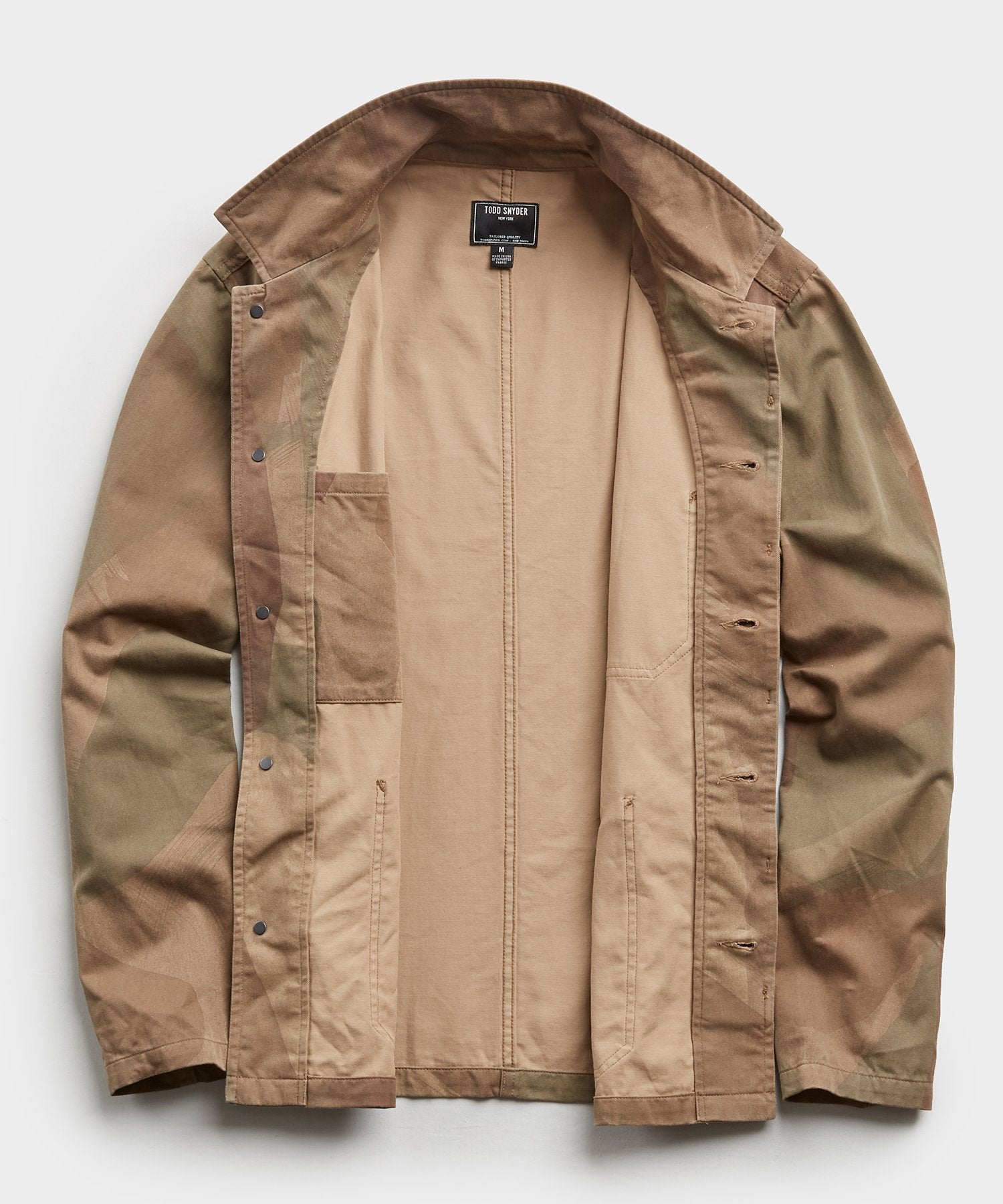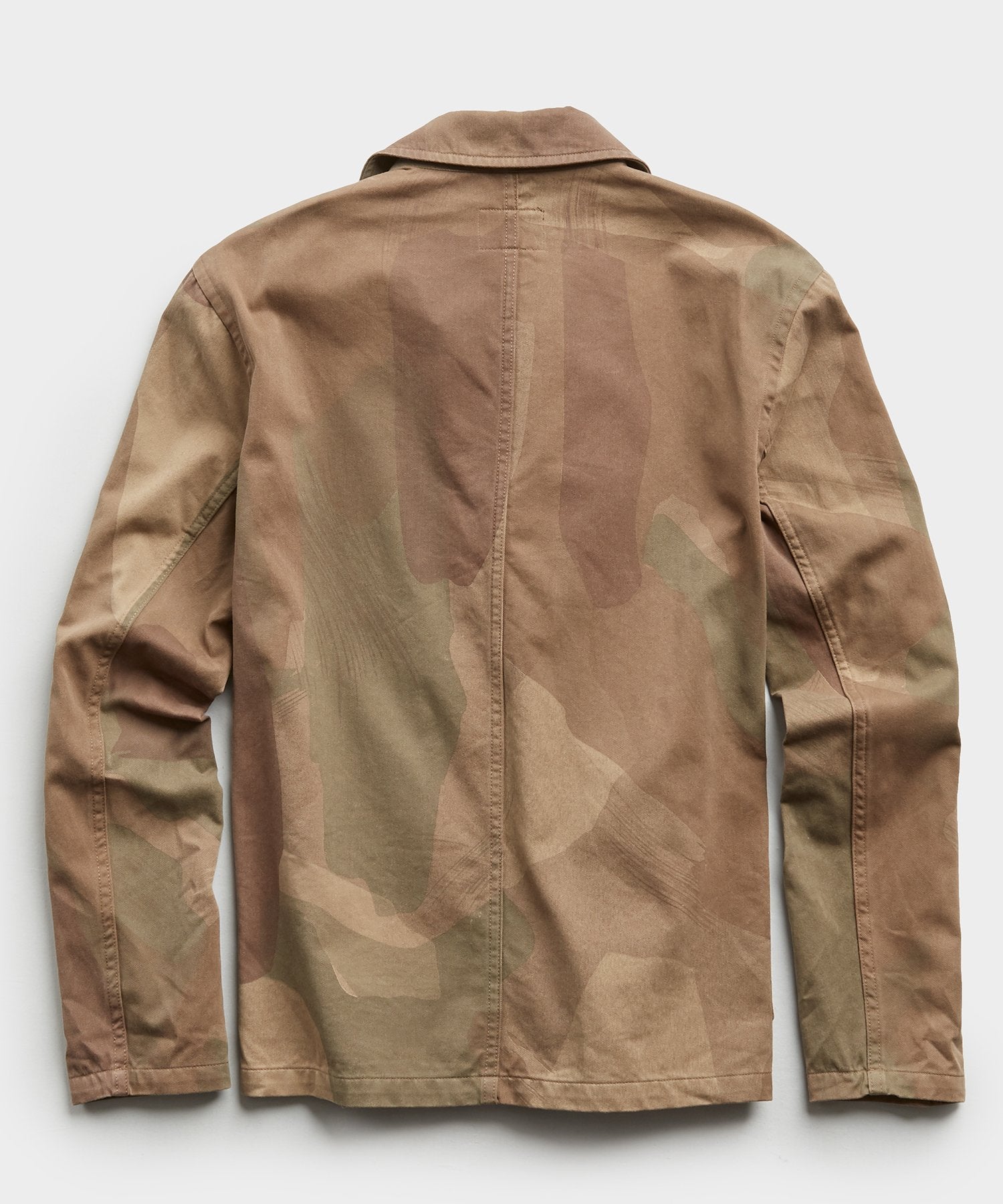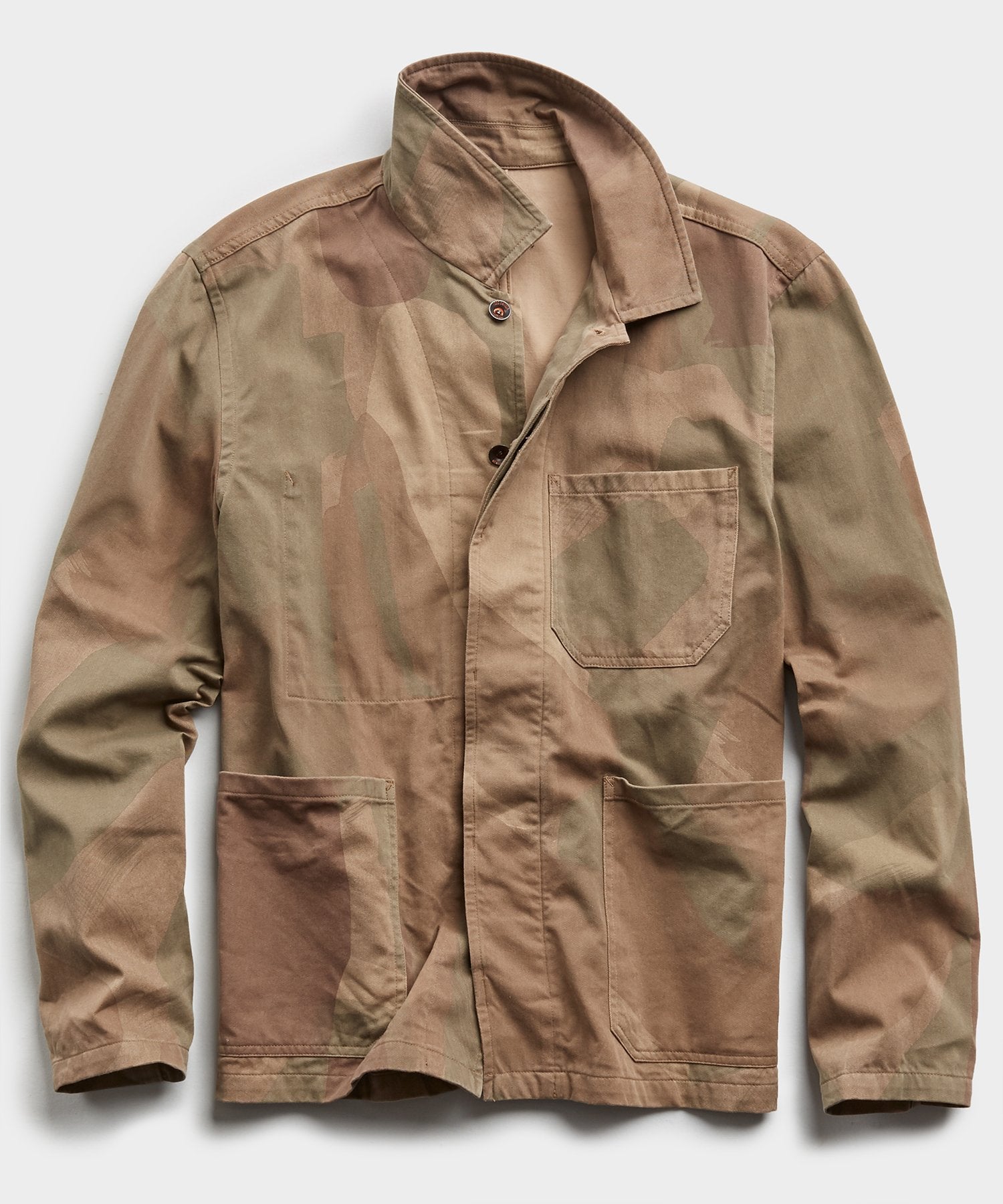 Our version of the utilitarian classic, inspired by a vintage garment and remade in a premium 100% cotton from Italy that will wash down and break in beautifully over time—just like your favorite pair of jeans. Crafted in an oversized brushed camo print, it’s finished with premium details from the single interior pocket to shank buttons.
