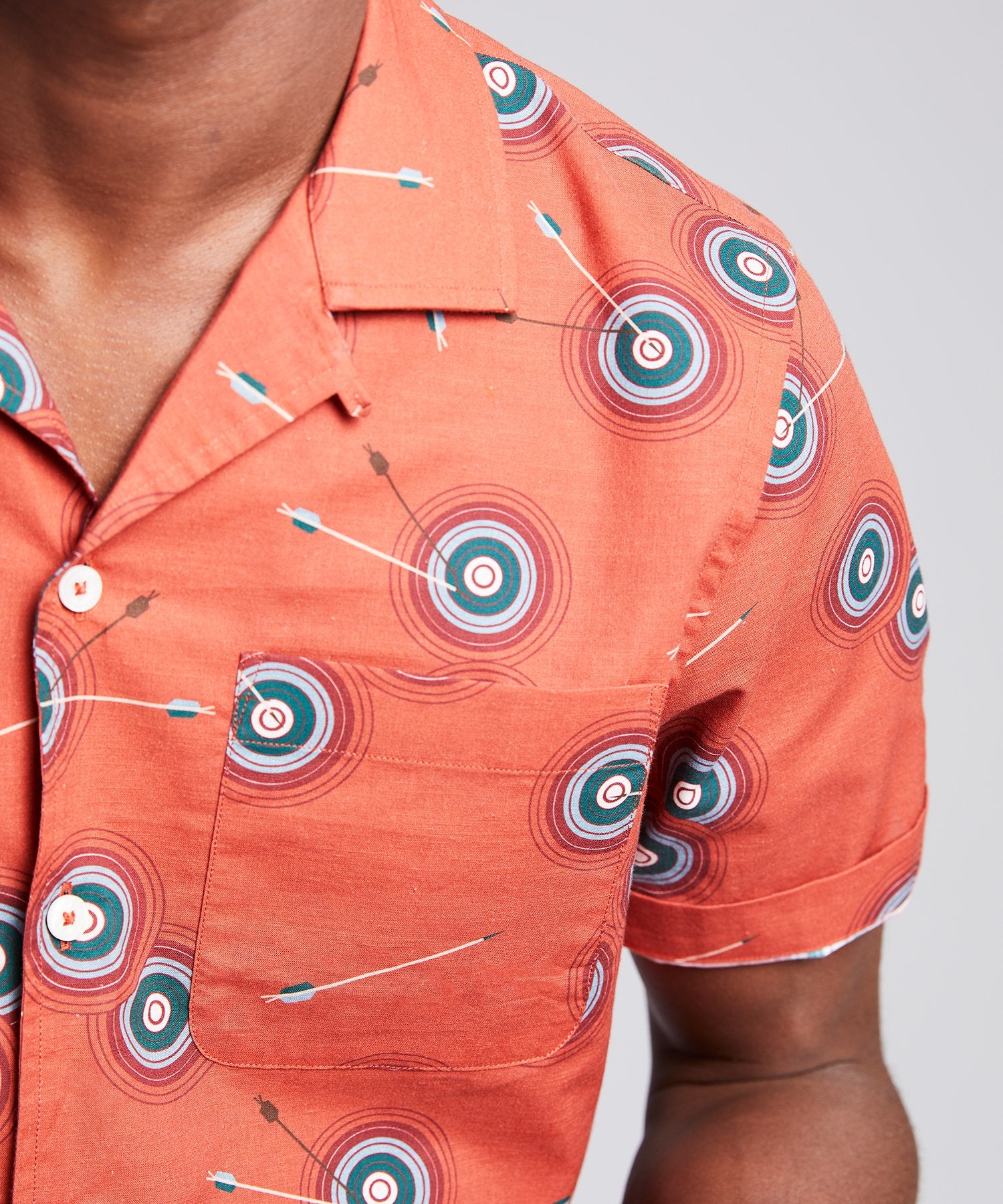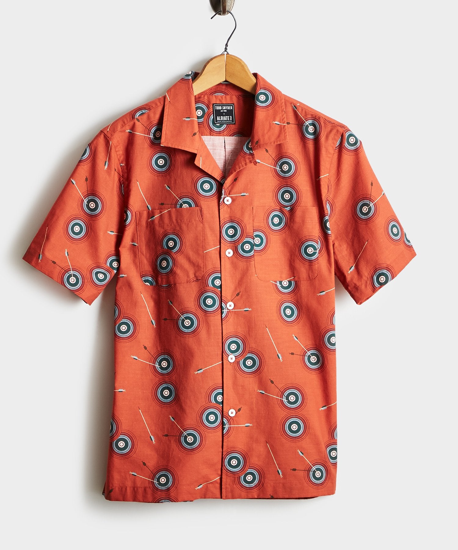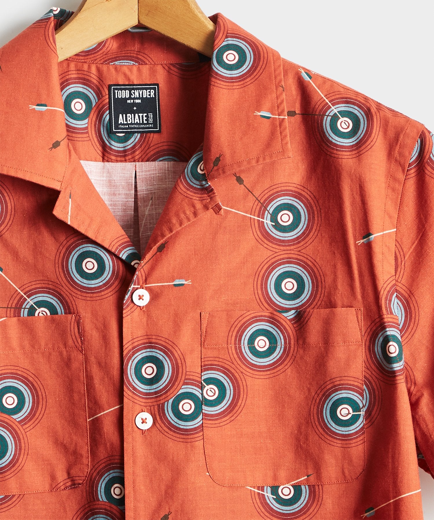 In a rich red and blue bullseye print fabric, our signature camp collar shirt is the epitome of laid-back luxe, made of 100% Cotton from Italy’s world-class Albiate 1830 mill. Based off a mid-century vintage find, this leisure print has been recreated in a Limited Edition run sure to start a conversation. With its versatile modern fit, this style staple is made to be lived in and looks even more elegant with a few well-earned wrinkles.