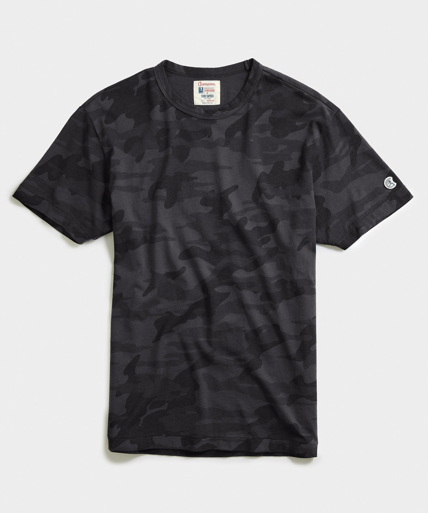 Looking for your favorite, soft everyday tee for fall? Consider this your new seasonal staple. Crafted from quality 9 oz.cotton jersey with considered details and the iconic logo nod to Champion’s athletic heritage—elevating this printed camo tee to an everyday basic. Created in collaboration with iconic American athletic brand Champion Sportswear, and exclusively designed and manufactured by Todd Snyder.