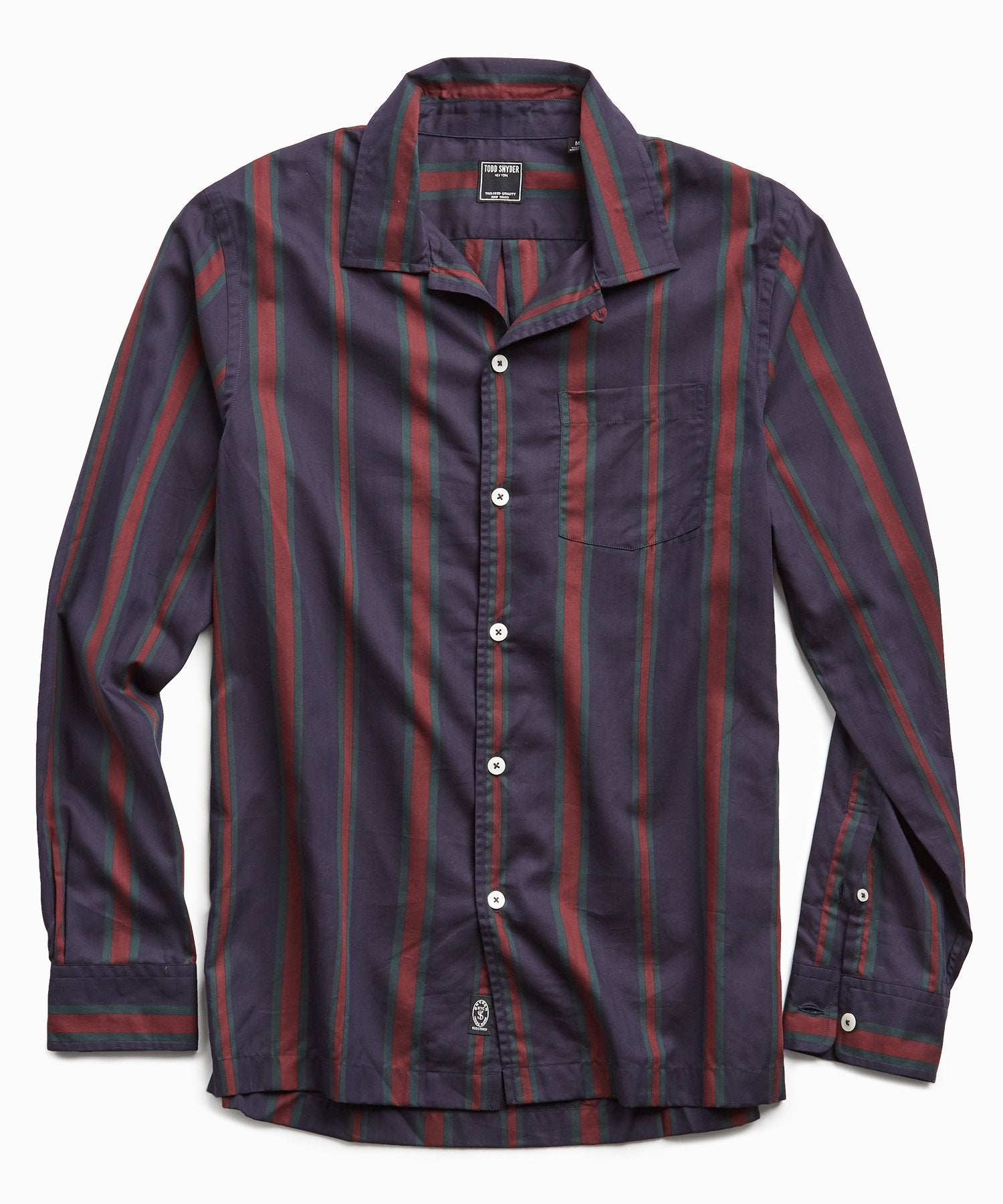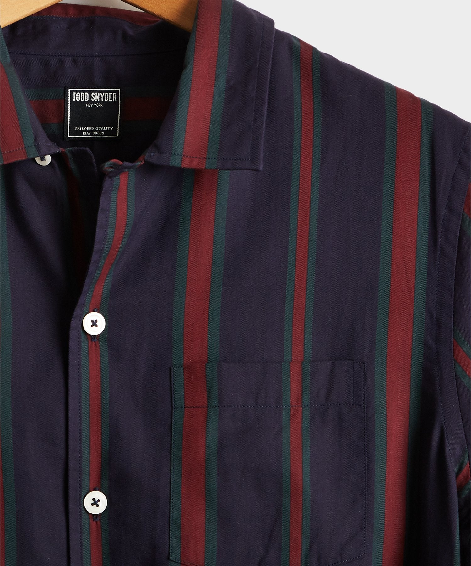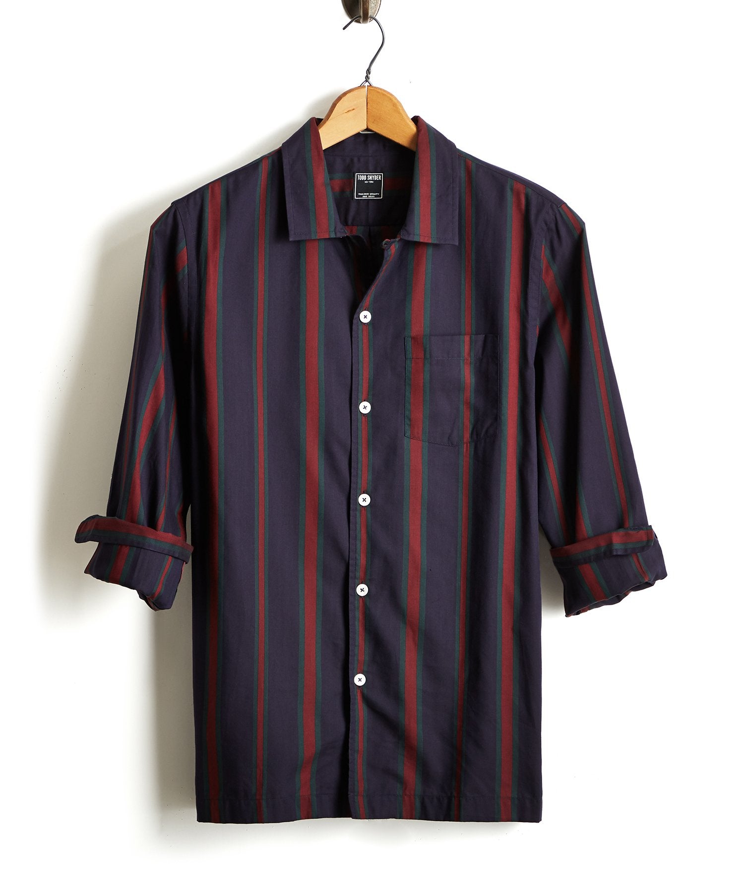 This playful shirt features our camp collar silhouette made with imported Japanese fabric. The design features a set in sleeve, and 70s inspired striping. The spread camp collar gives this shirt a stand out look.
