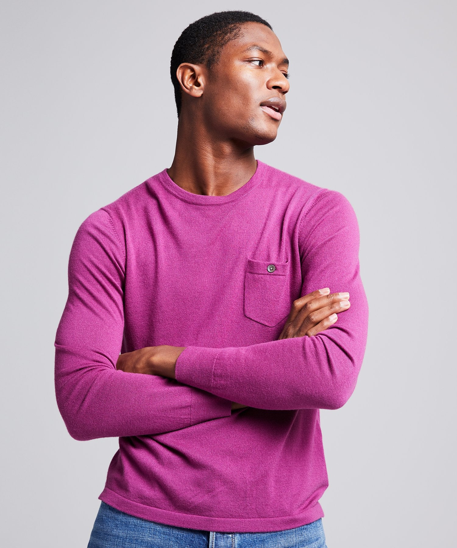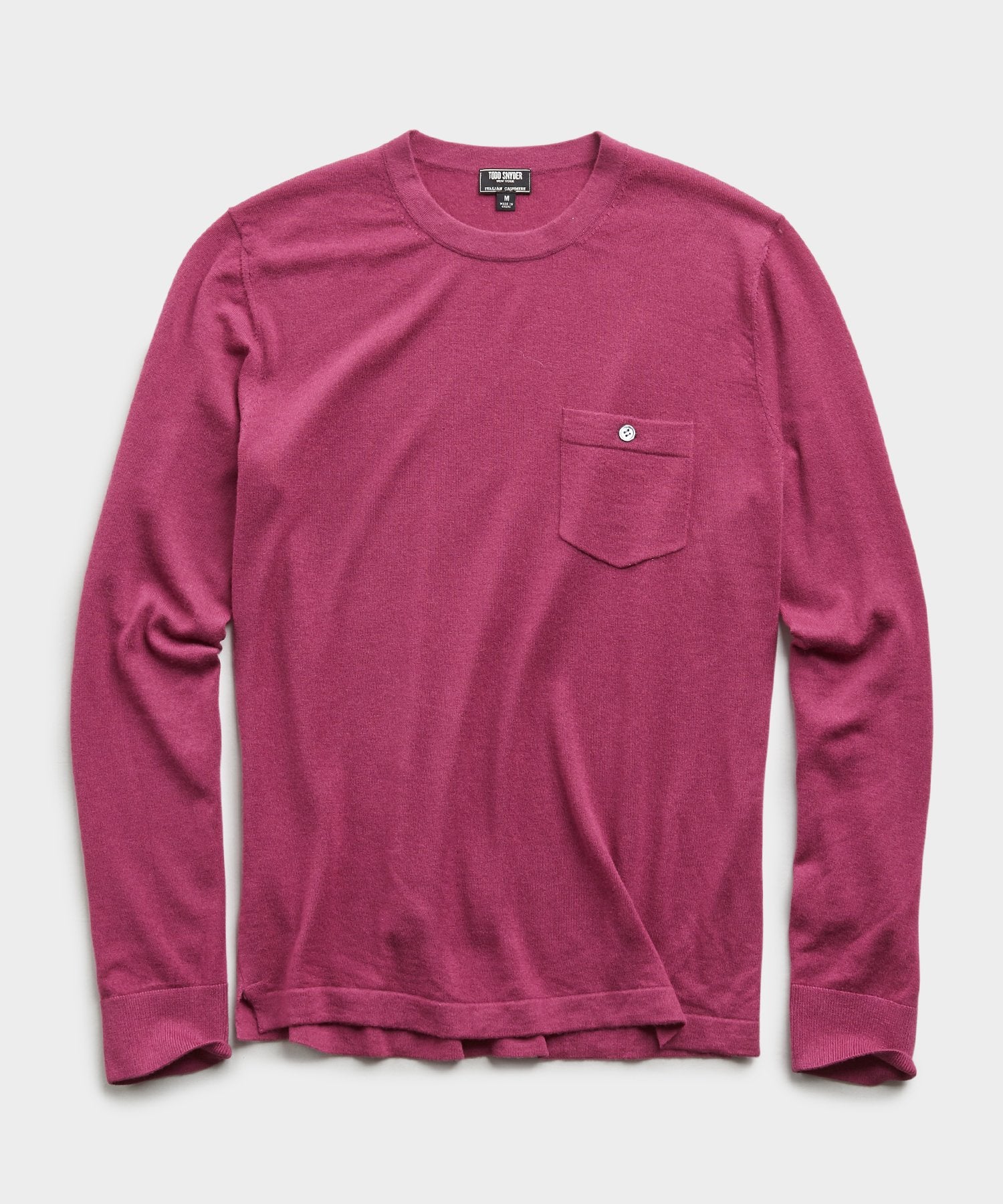 Italian Cashmere Pocket T-Shirt Sweater in Magenta Mist