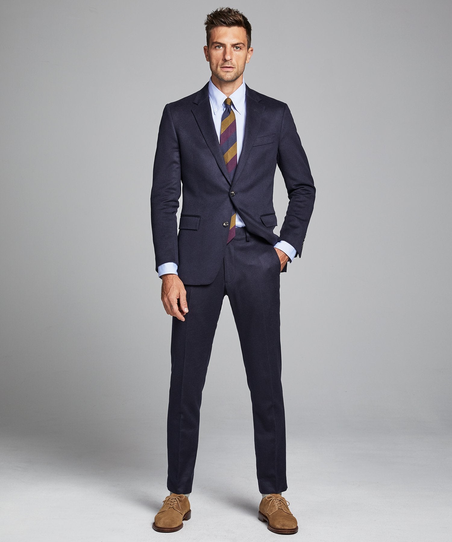 One half of the perfect fall suit, in premium 100% cashmere from Italy’s prestigious Tollegno mill. Our latest signature Black Label Sutton Suit jacket offers a modern tailored fit, 29.5-inch center back length, slightly nipped waist and high-end detailing for every guy. A versatile classic that’s easy to style with or without the matching trouser or as a foundation for a variety of fall looks.