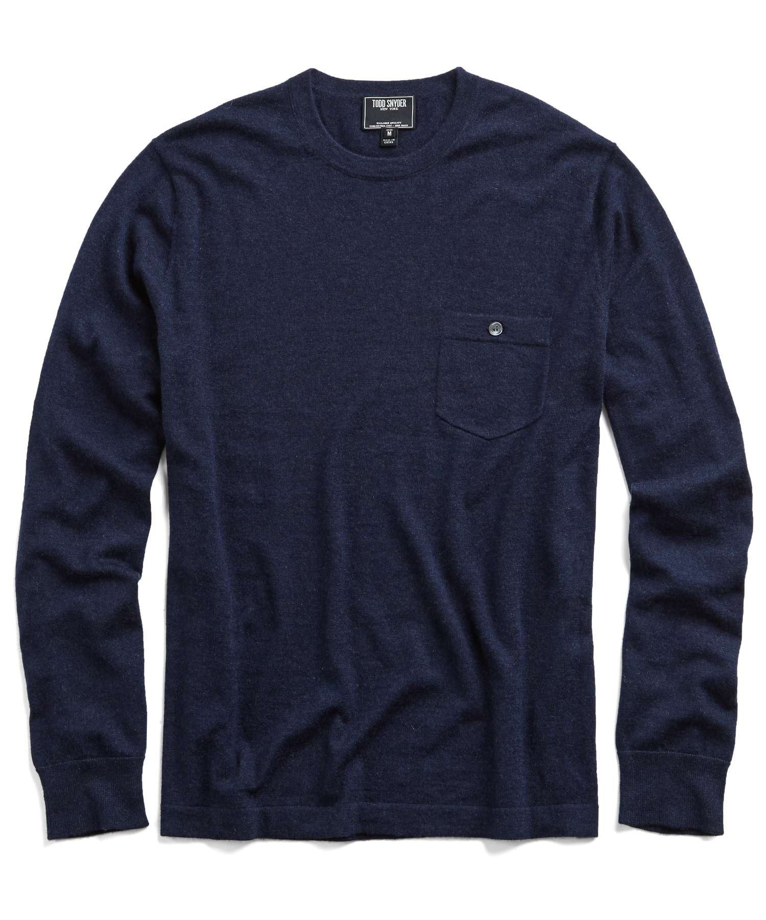 Italian Cashmere T-Shirt Sweater in Navy Heather