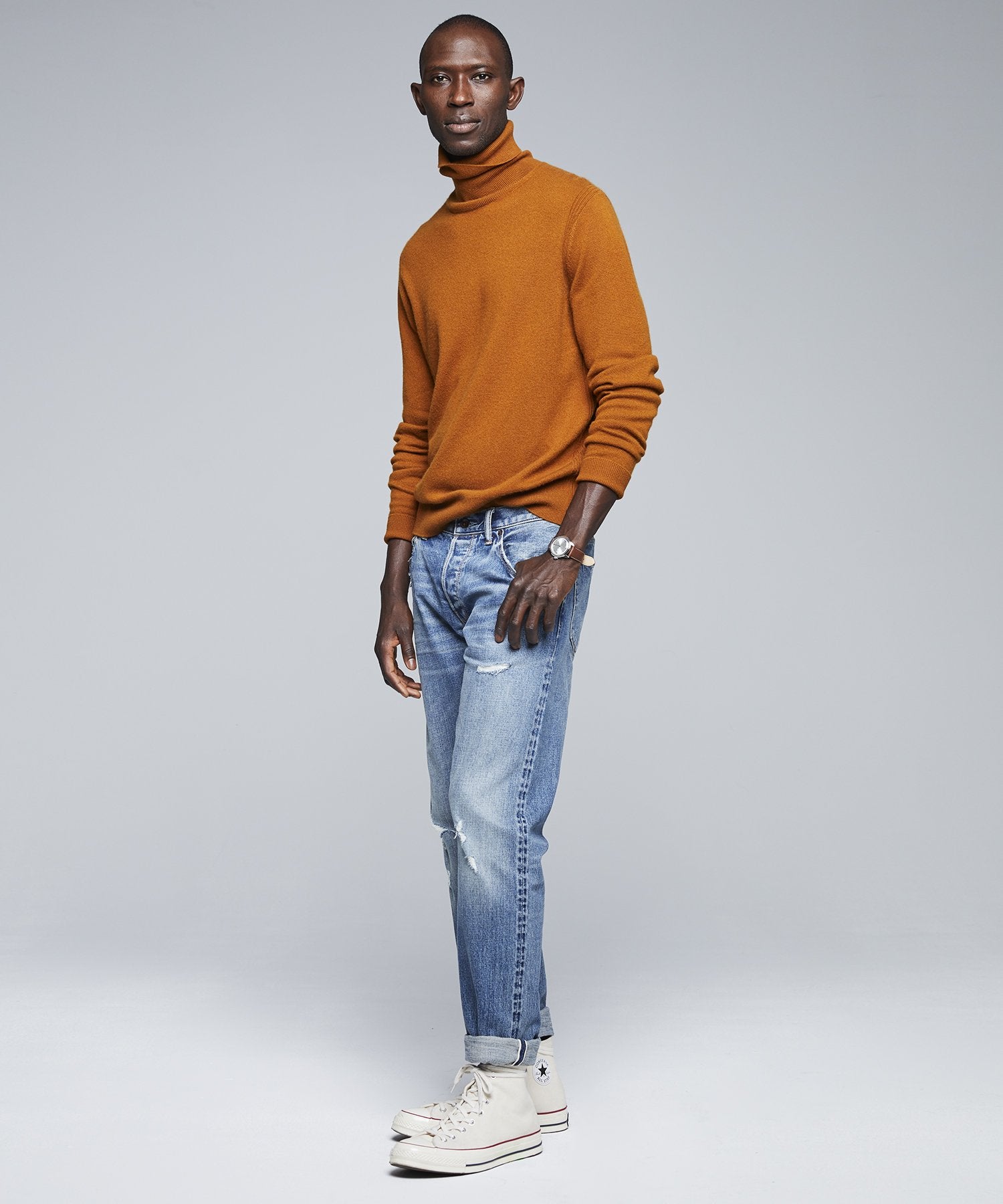 We updated everyone’s favorite turtleneck from last year with our new fall cashmere essential. Our cashmere turtleneck tee is the ultimate cool-weather layer, crafted from the finest cashmere yarns and knit at a perfect medium gauge for just the right amount of warmth. Finished with a tubular hem and ribbed knit cuffs, this sophisticated staple is a go-to piece under button-downs, sweaters or paired with a blazer for work or a night out.