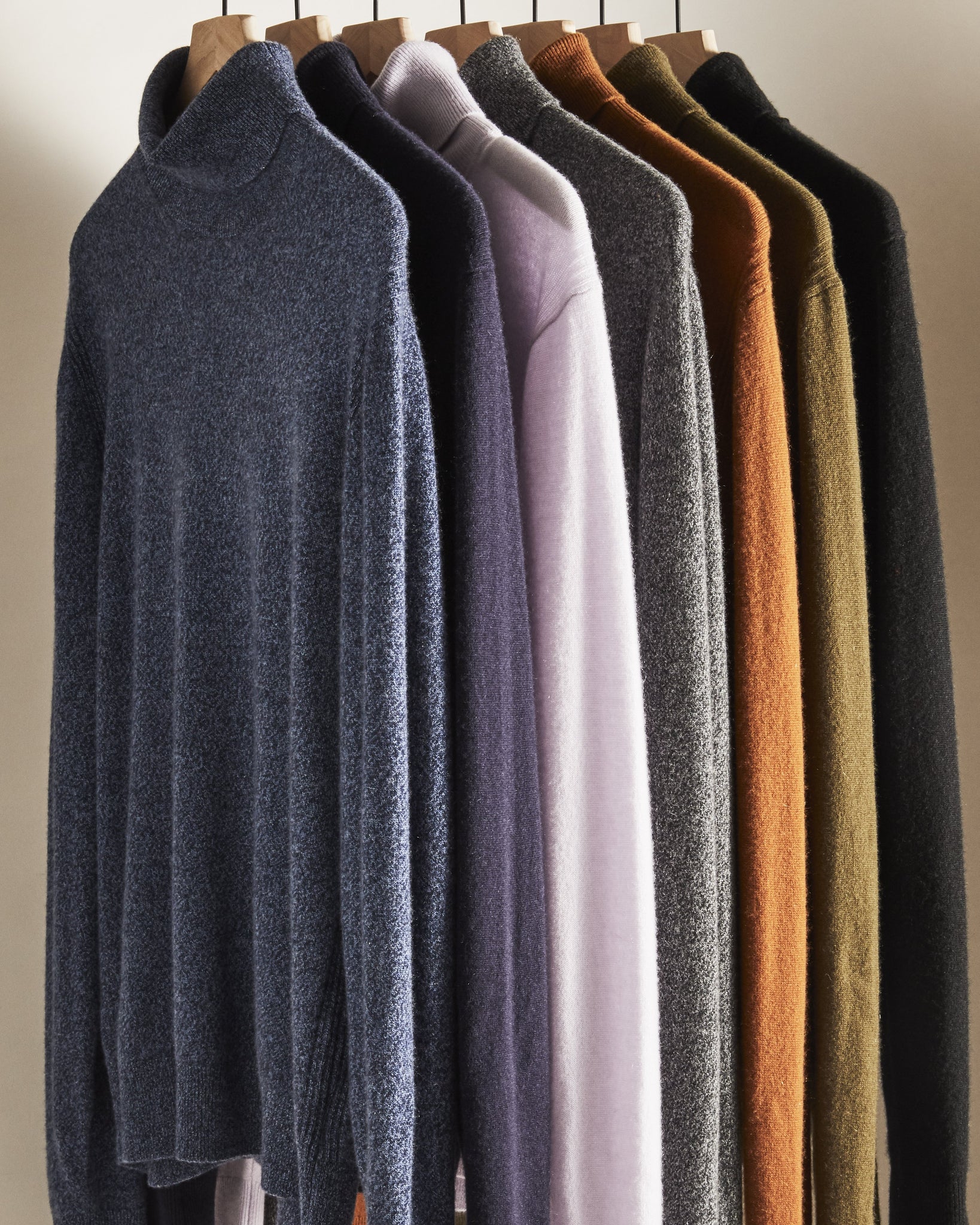 - Classic roll-turtleneck styling.