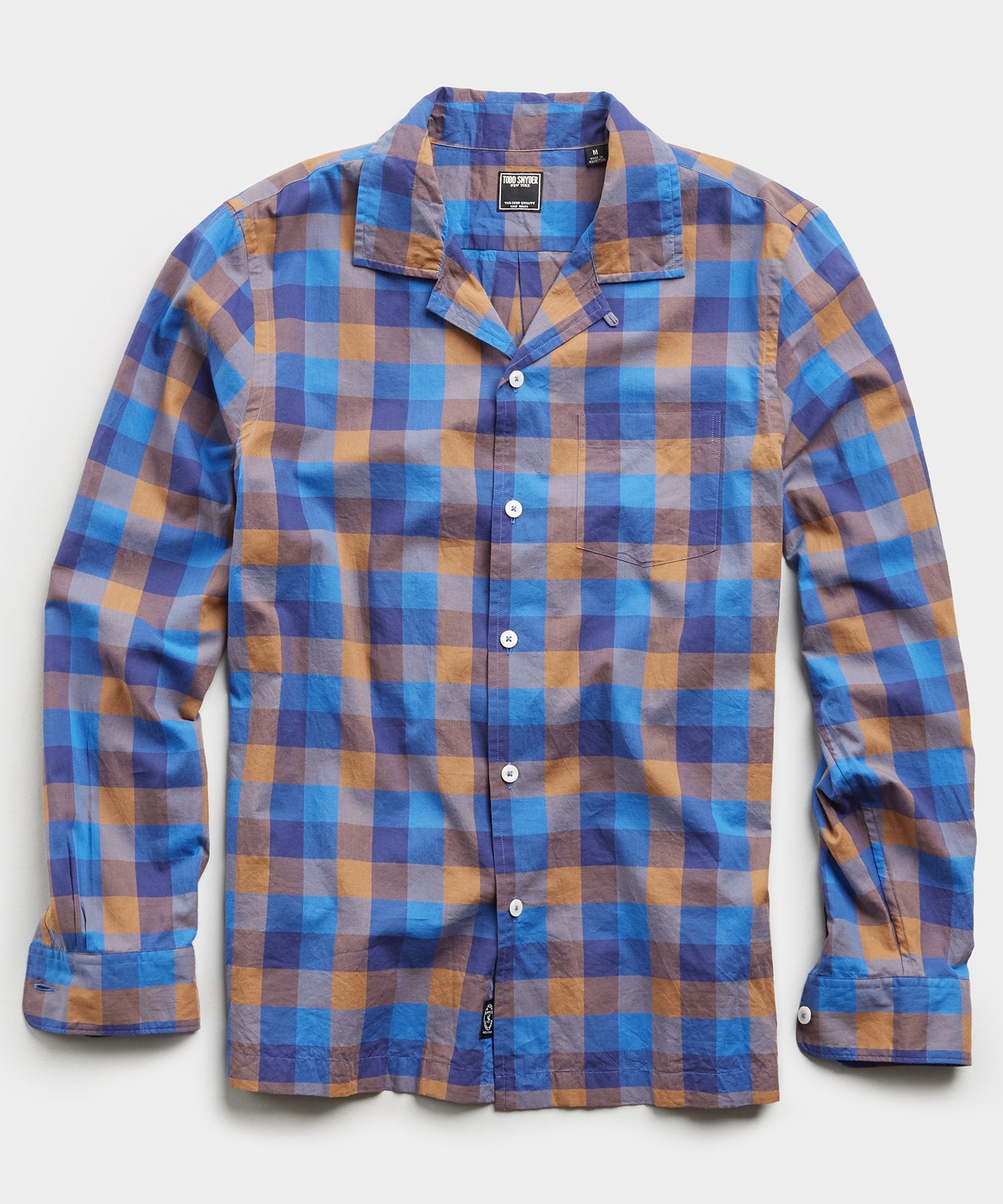 Camp Collar Long Sleeve Shirt in Chestnut Blue Plaid