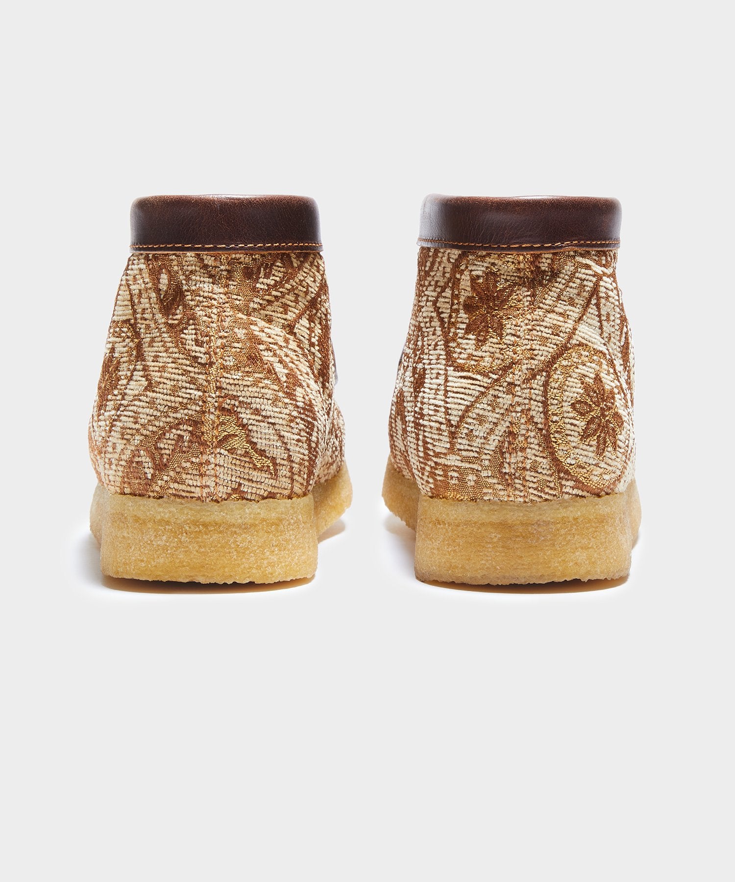 Expertly crafted in Italy, the Todd Snyder x Clarks Originals Wallabee is woven with one-of-a-kind upholstery fabric. Featuring a leather-lined interior, suede/leather tonal accents, and Clarks’ signature crepe sole, this iteration of a timeless silhouette brings premium materials to fore.