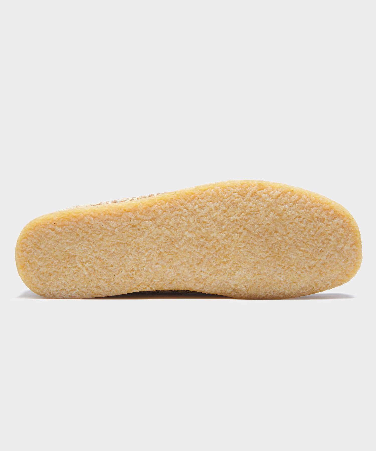 Expertly crafted in Italy, the Todd Snyder x Clarks Originals Wallabee is woven with one-of-a-kind upholstery fabric. Featuring a leather-lined interior, suede/leather tonal accents, and Clarks’ signature crepe sole, this iteration of a timeless silhouette brings premium materials to fore.