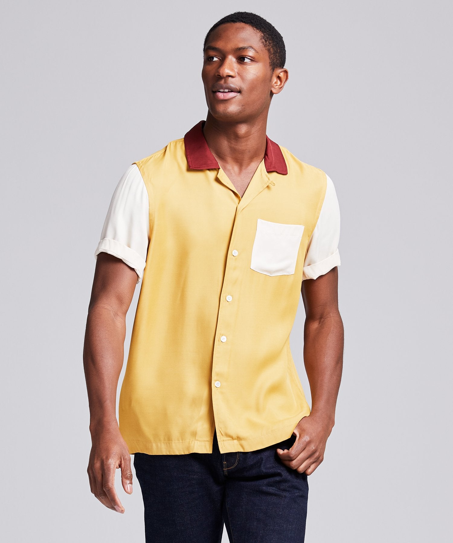 Our retro-inspired take on a classic bowling shirt is crafted from lightweight 100% Japanese Rayon which creates a relaxed drape on the body. With contrast color blocking on the collar, sleeves, and front pocket, it’s a bold shirt that works dressed up or down for a variety of activities.