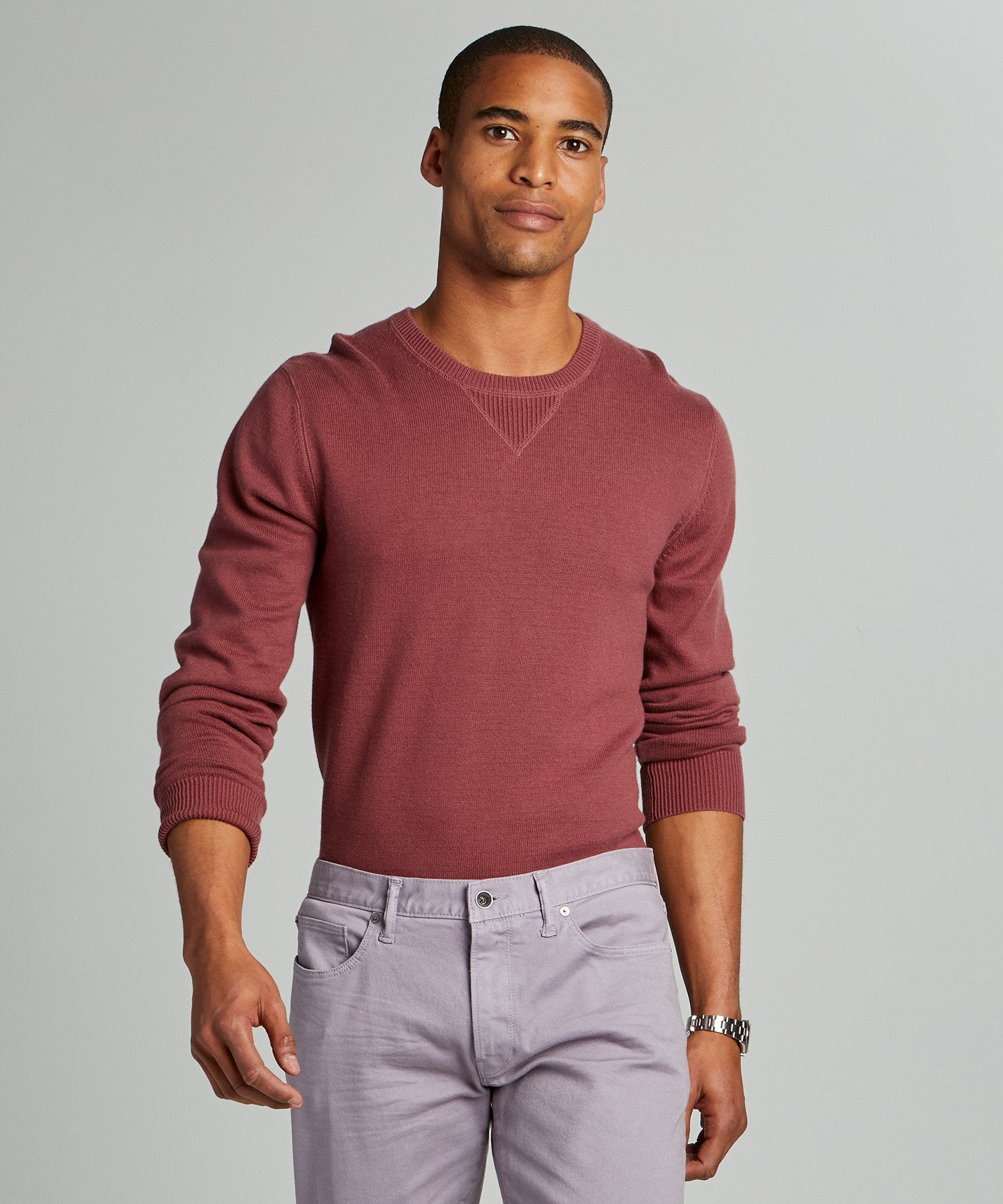 Quality meets American sportsmanship in this modern hybrid that’s part favorite tee, part cashmere sweater, and completely essential. Crafted with classic sweatshirt details, and fully fashioned with flat-lock construction for an elevated take on authentic gym style.