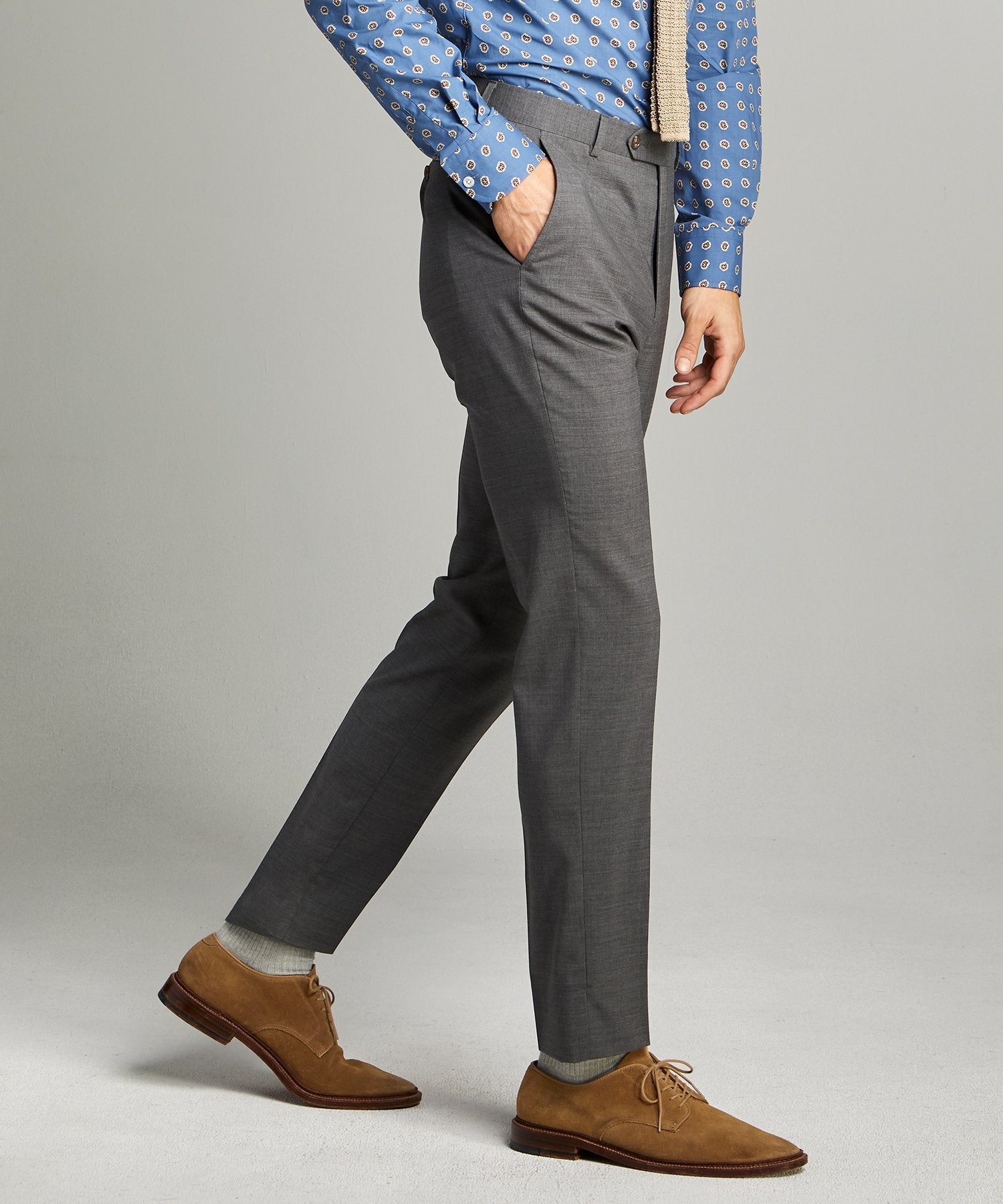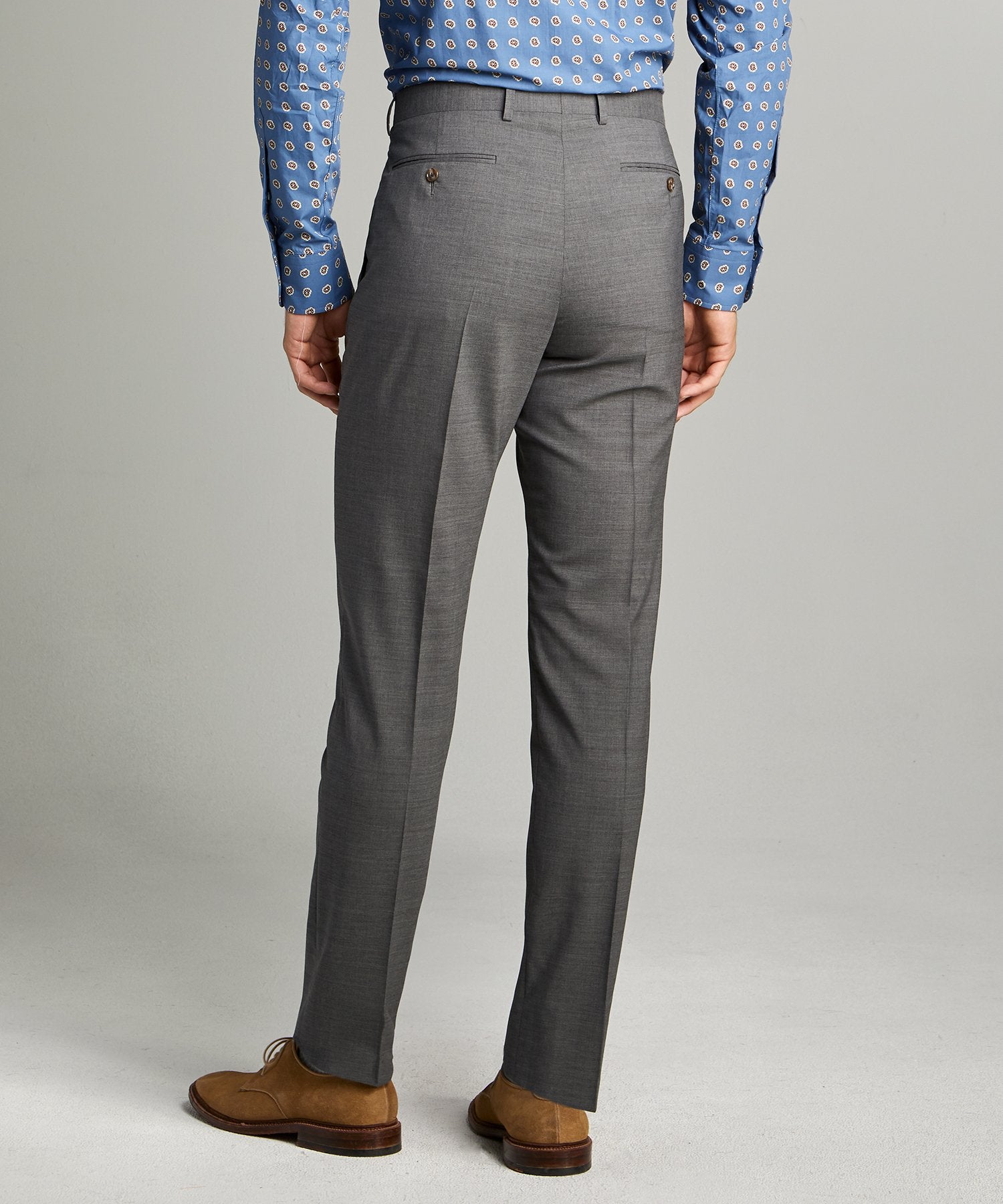 One half of the perfect spring suit, in a premium dark charcoal tropical wool from Italy’s world-renowned Tollegno. Our signature Sutton Suit trouser offers a twist on a traditional tailored fit and is made in the USA. With a moderate rise, they lay straight through the hip with a flat front and modern slim fit through the thigh and knee. Pair it in style with the matching jacket or ease up with a light button-down or sweater finished with smart sneakers for an elevated weekend look.