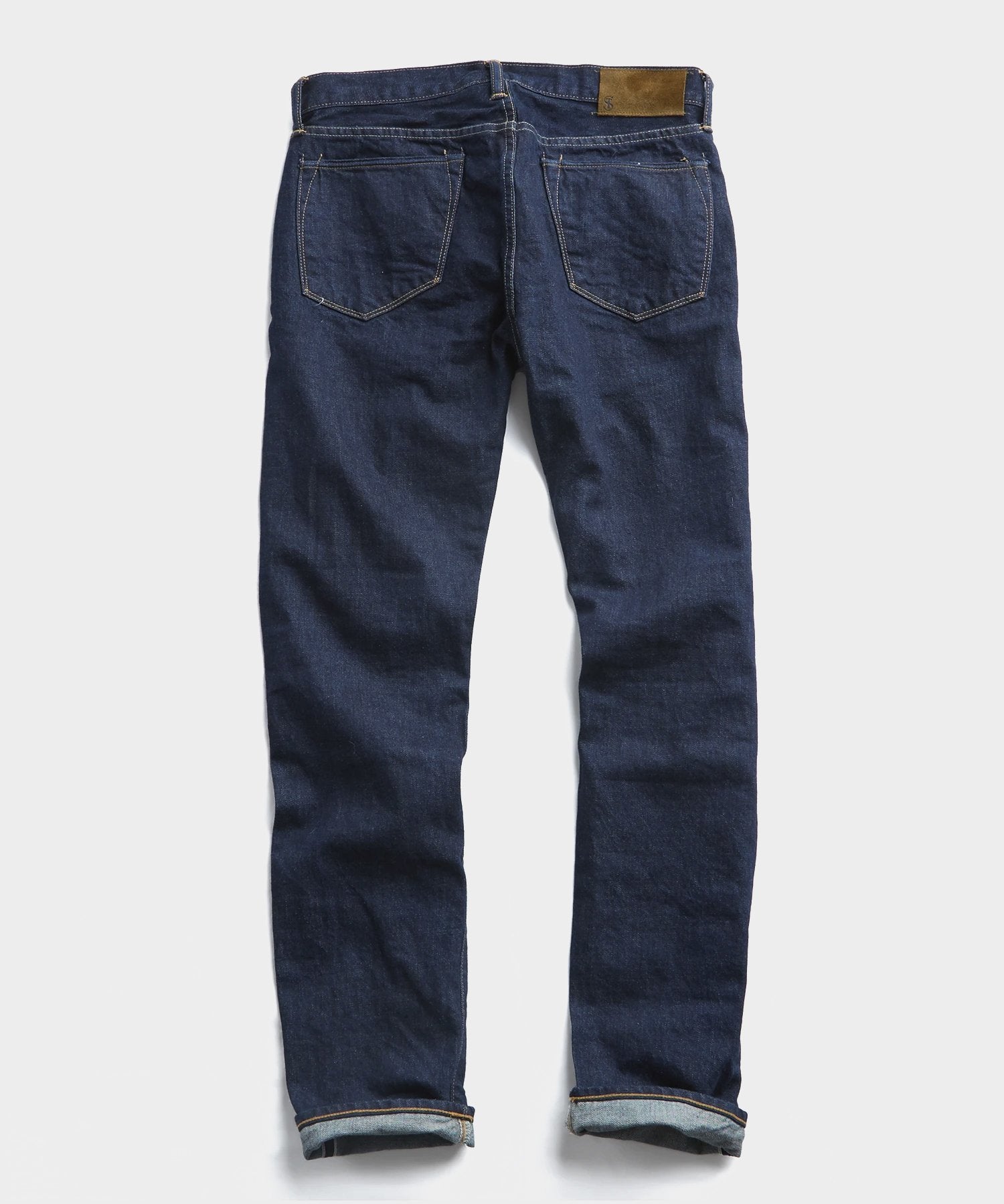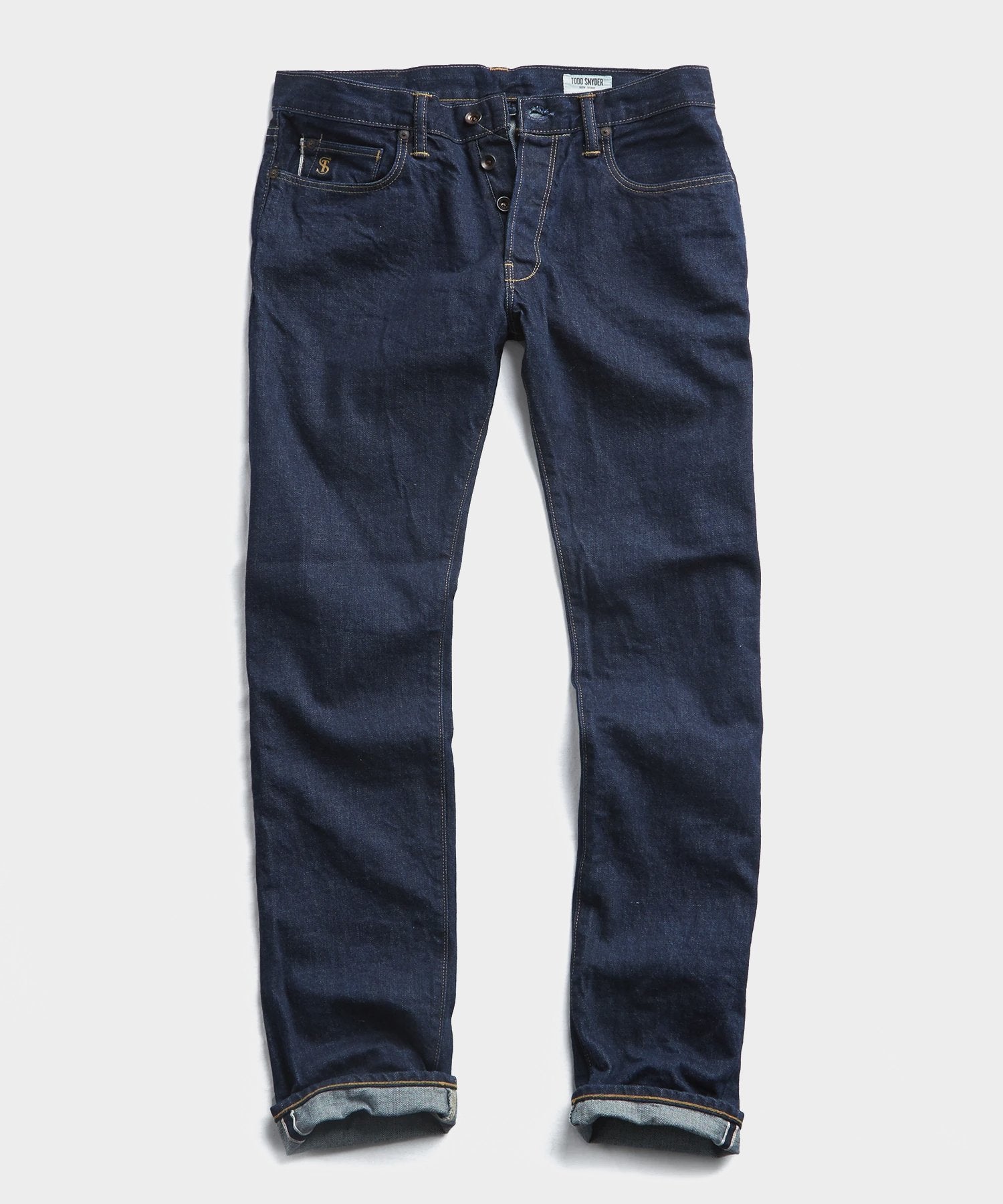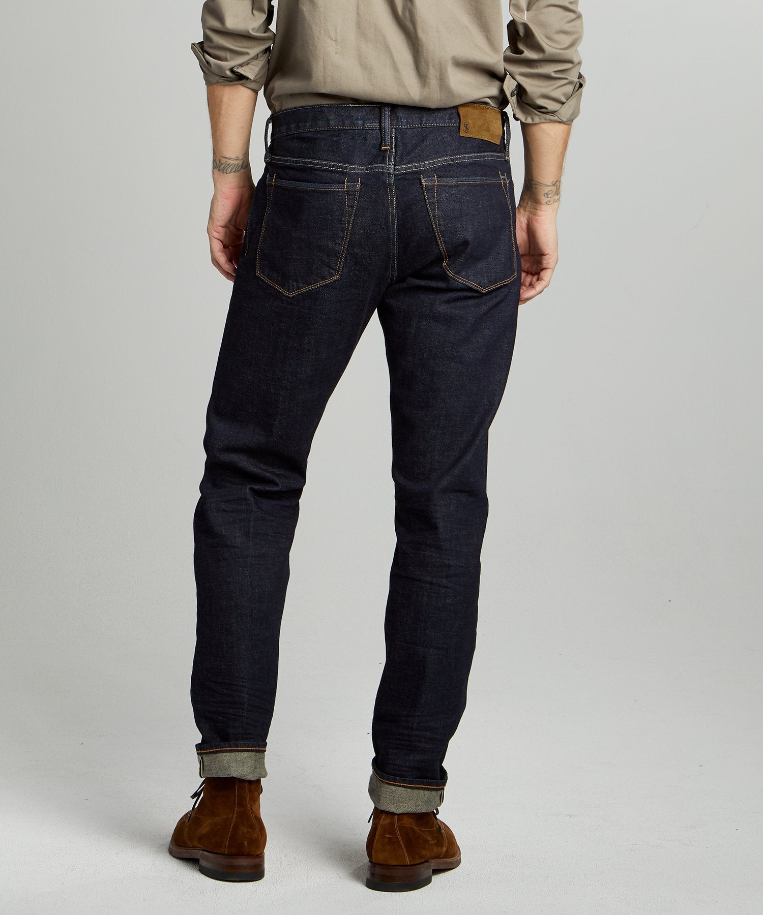 Cut with a modern slim fit from premium Japanese stretch selvedge fabric, this pair is rinsed for an authentic wash and a lived-in feel from the first wear. Softer than our other denim offerings and styled with a button fly, this new signature style is our take on the American icon, destined to get even better with age.