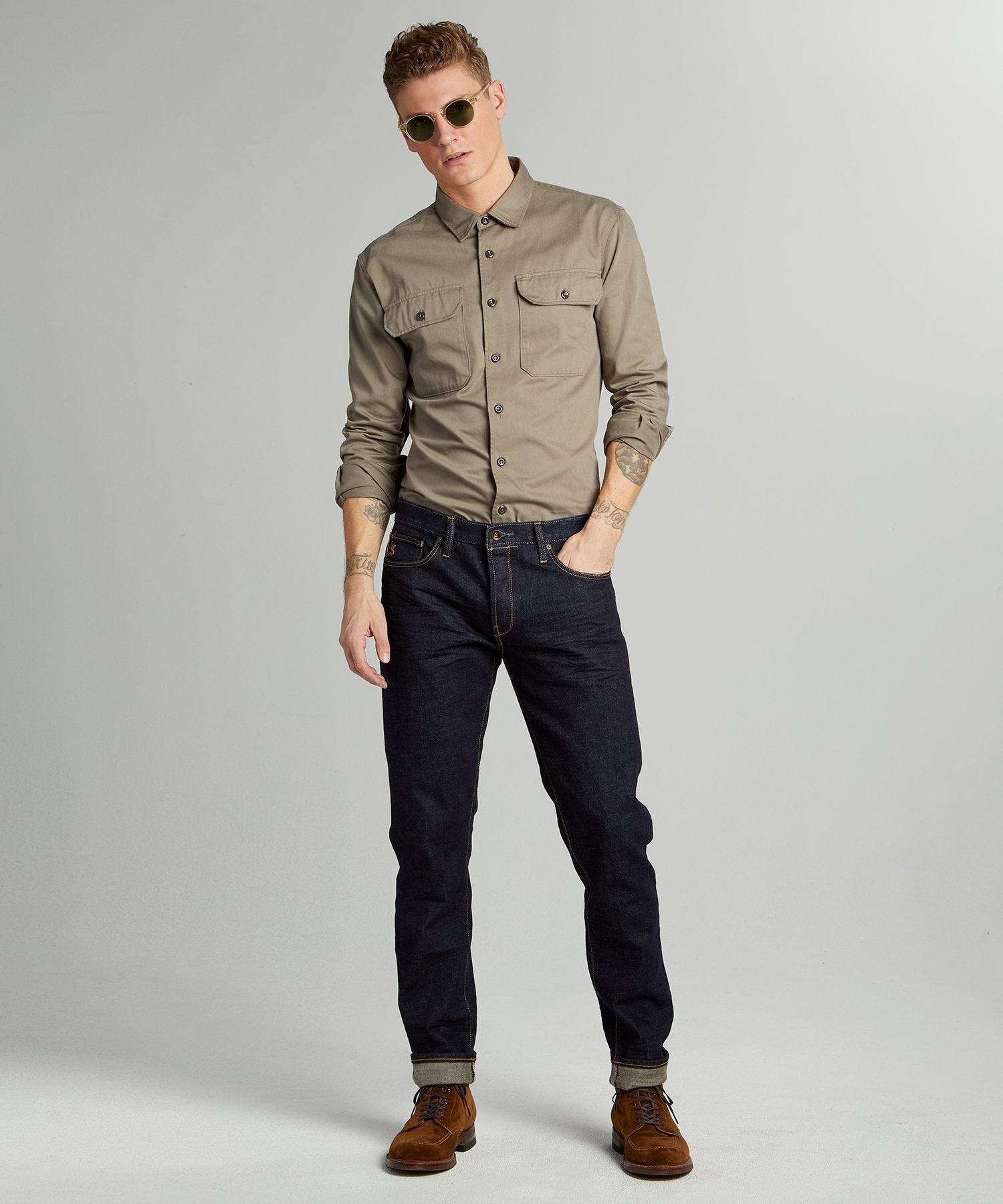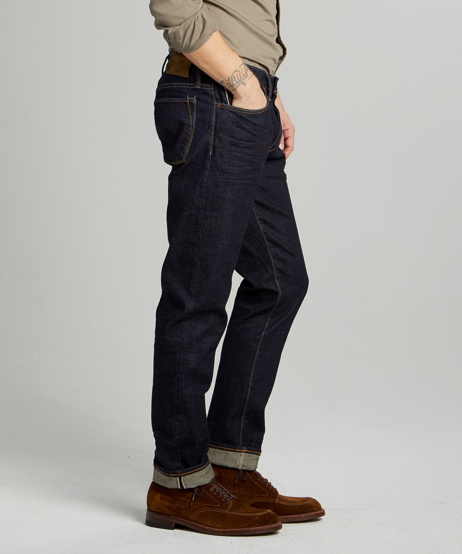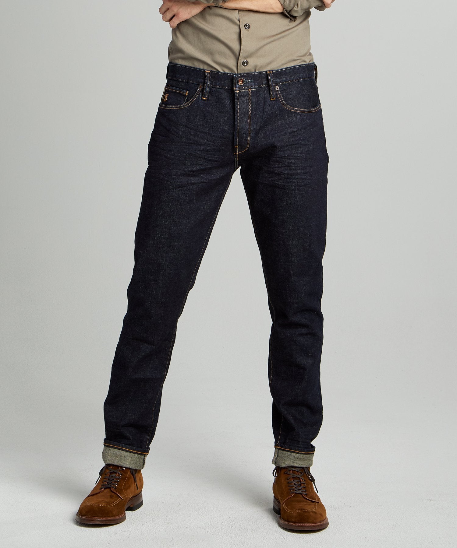 Cut with a modern slim fit from premium Japanese stretch selvedge fabric, this pair is rinsed for an authentic wash and a lived-in feel from the first wear. Softer than our other denim offerings and styled with a button fly, this new signature style is our take on the American icon, destined to get even better with age.