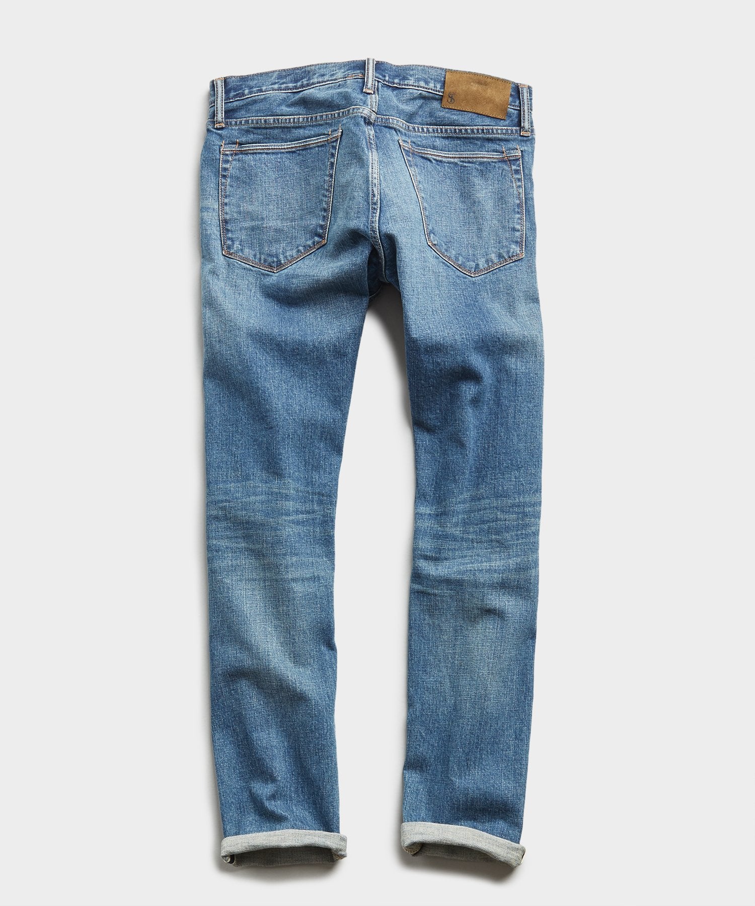Straight Fit Japanese Stretch Selvedge Jean in Medium Indigo