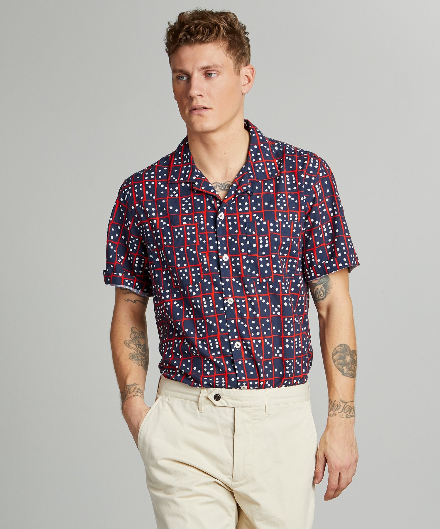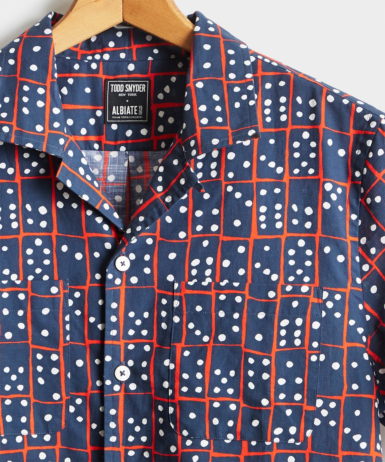 In a bold red, white + blue domino print fabric, our signature camp collar shirt is the epitome of laid-back luxe, made of 100% Cotton from Italy’s world-class Albiate 1830 mill. Based off a mid-century vintage find, this leisure print has been recreated in a Limited Edition run sure to start a conversation. With its versatile modern fit, this style staple is made to be lived in and looks even more elegant with a few well-earned wrinkles.