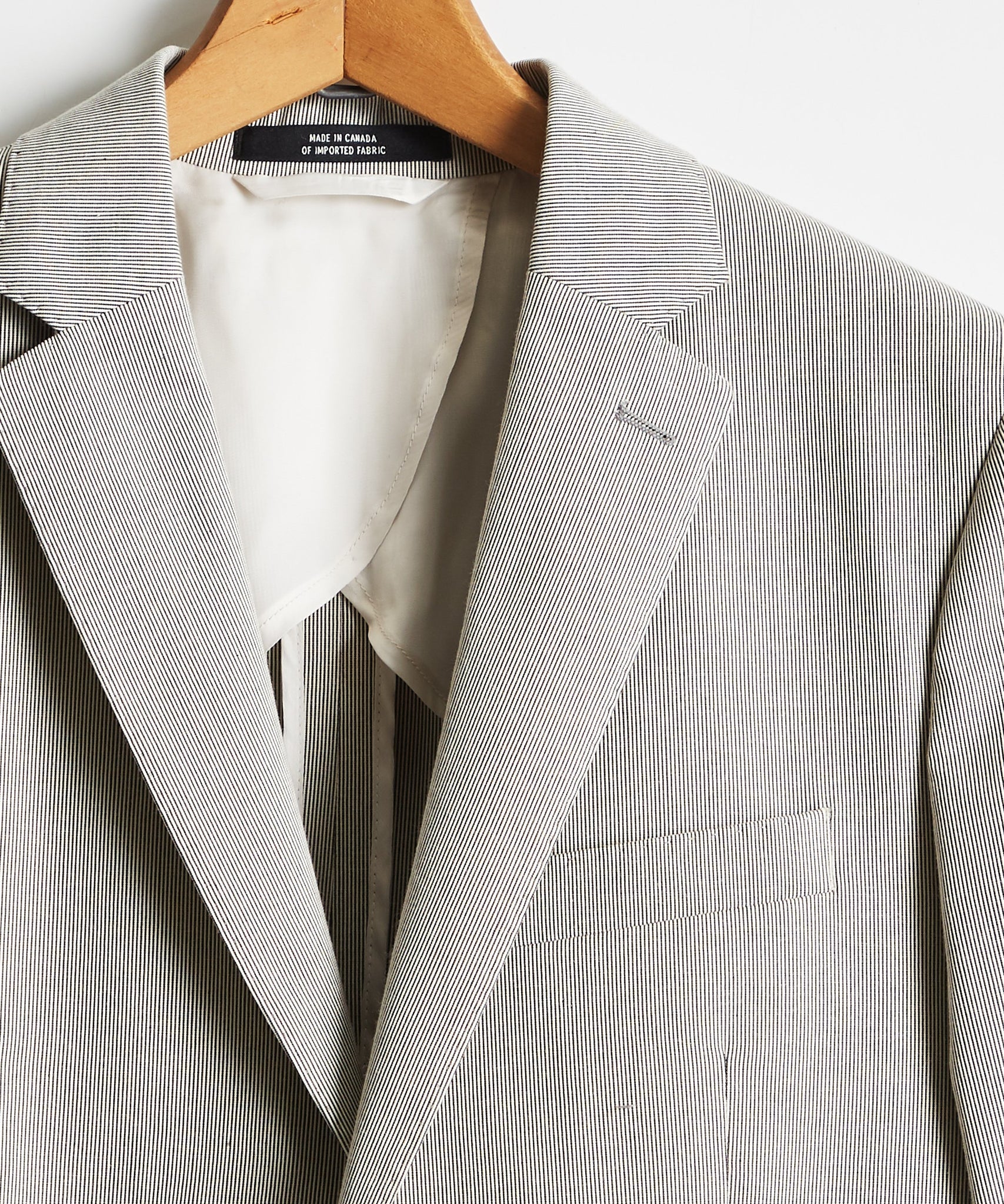 The classic Sutton suit jacket has a modern tailored fit for every guy and stands out as the ideal option for summer suiting. Made in Canada with 100% fine wale cotton cord fabric from renowned Italian mill Lanificio Subalpino. It's a versatile and classic style that works with matching pants or as a foundation piece for other looks.