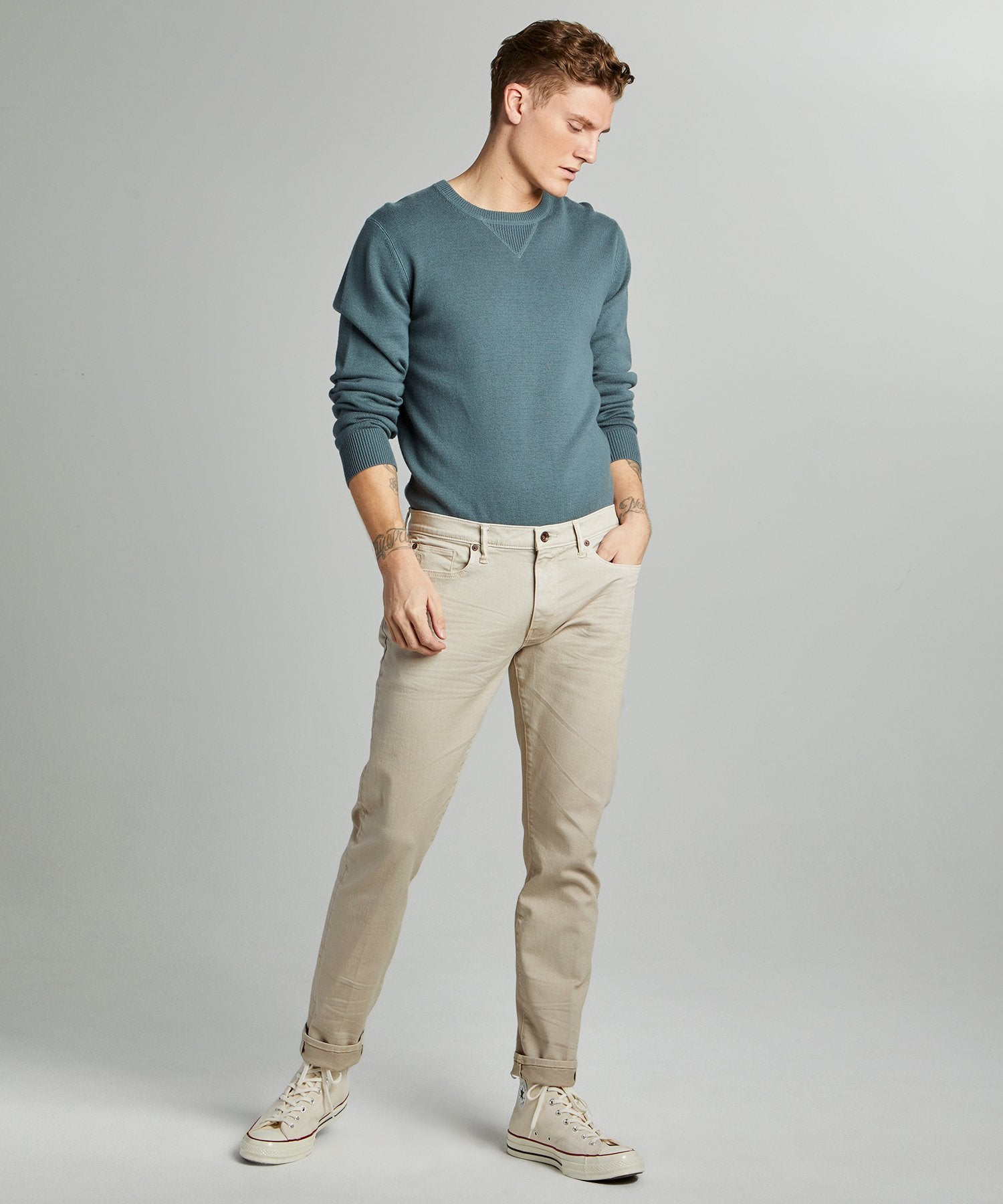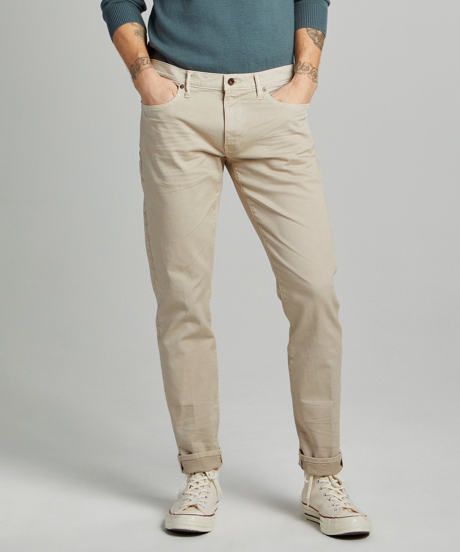 This modern hybrid merges the best features of your favorite denim and your trusty chinos into one truly perfect pair of pants. Crafted from garment-dyed twill with a touch of stretch, and tailored with a slim fit similar to our selvedge jean, the essential 5-Pocket Chino is casual yet elevated, comfy yet polished, and ready for just about anything. Leg tapers slightly from knee to hem; available in multiple inseams.