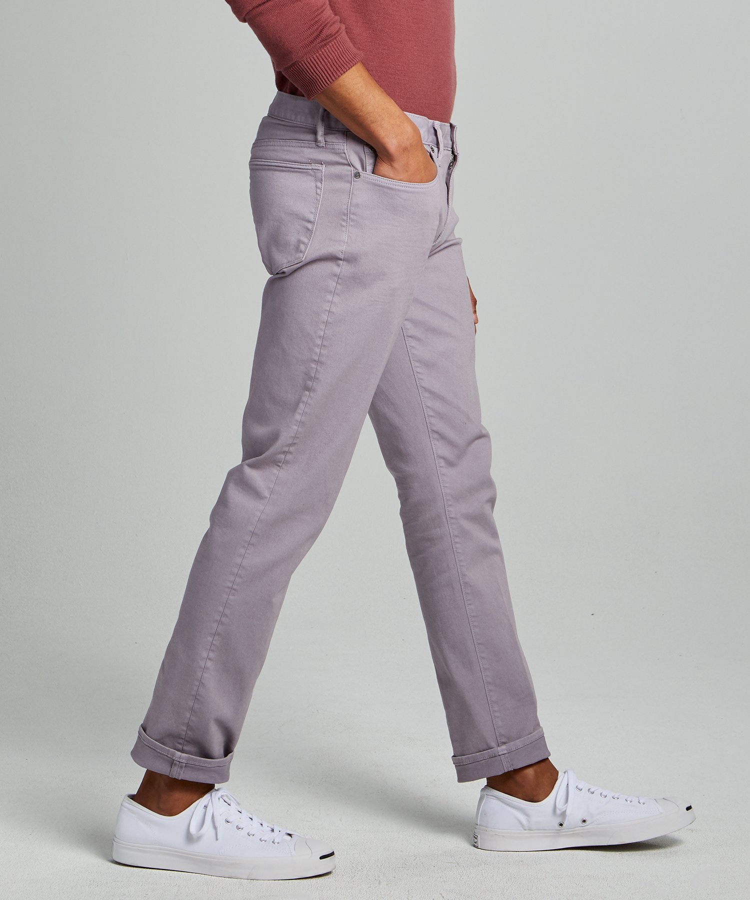 This modern hybrid merges the best features of your favorite denim and your trusty chinos into one truly perfect pair of pants. Crafted from garment-dyed twill with a touch of stretch, and tailored with a slim fit similar to our selvedge jean, the essential 5-Pocket Chino is casual yet elevated, comfy yet polished, and ready for just about anything. Leg tapers slightly from knee to hem; available in multiple inseams.