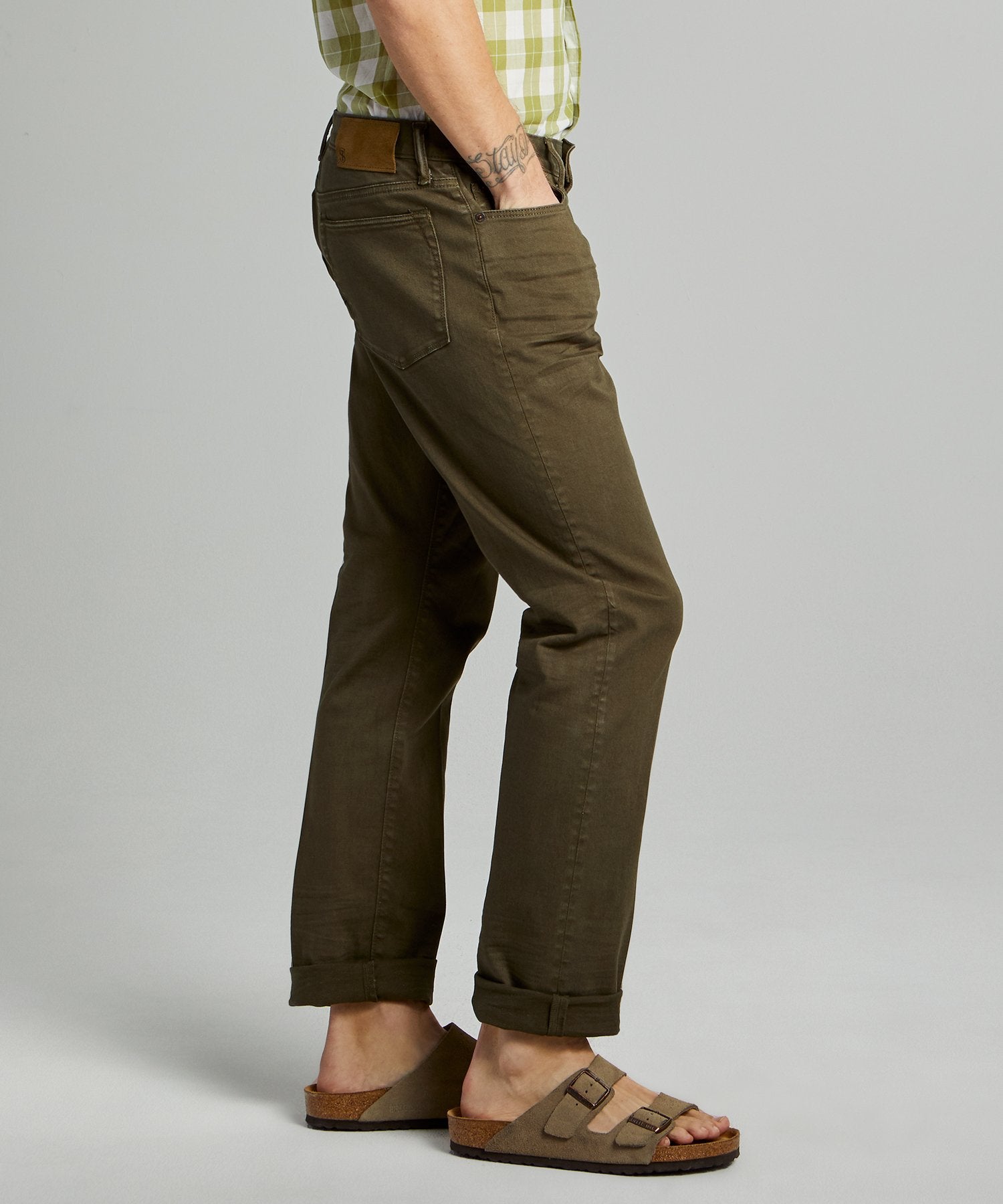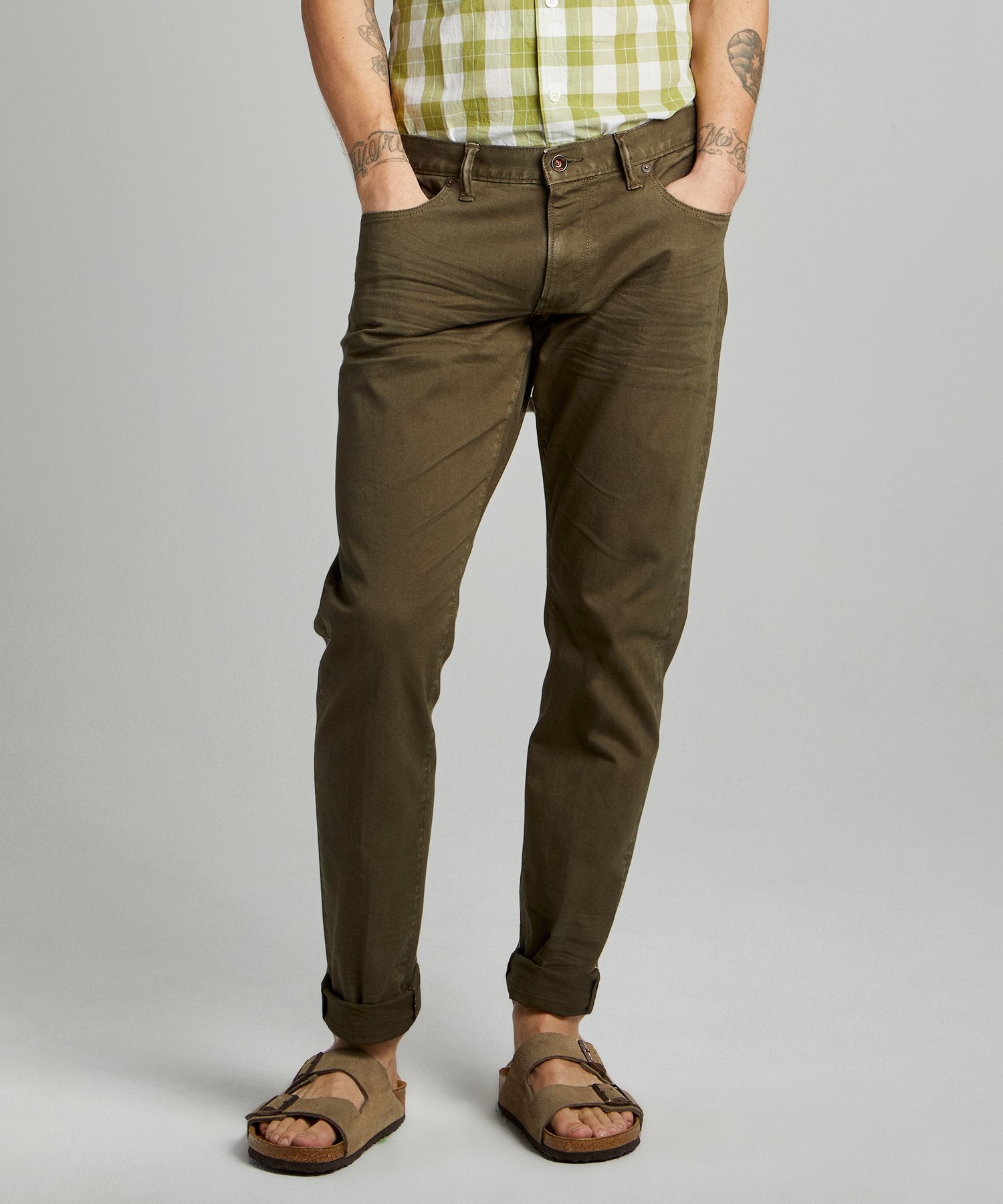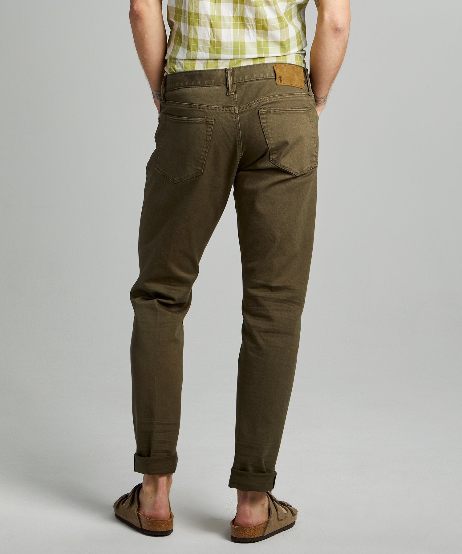 Slim Fit 5-Pocket Garment-Dyed Stretch Twill in Olive