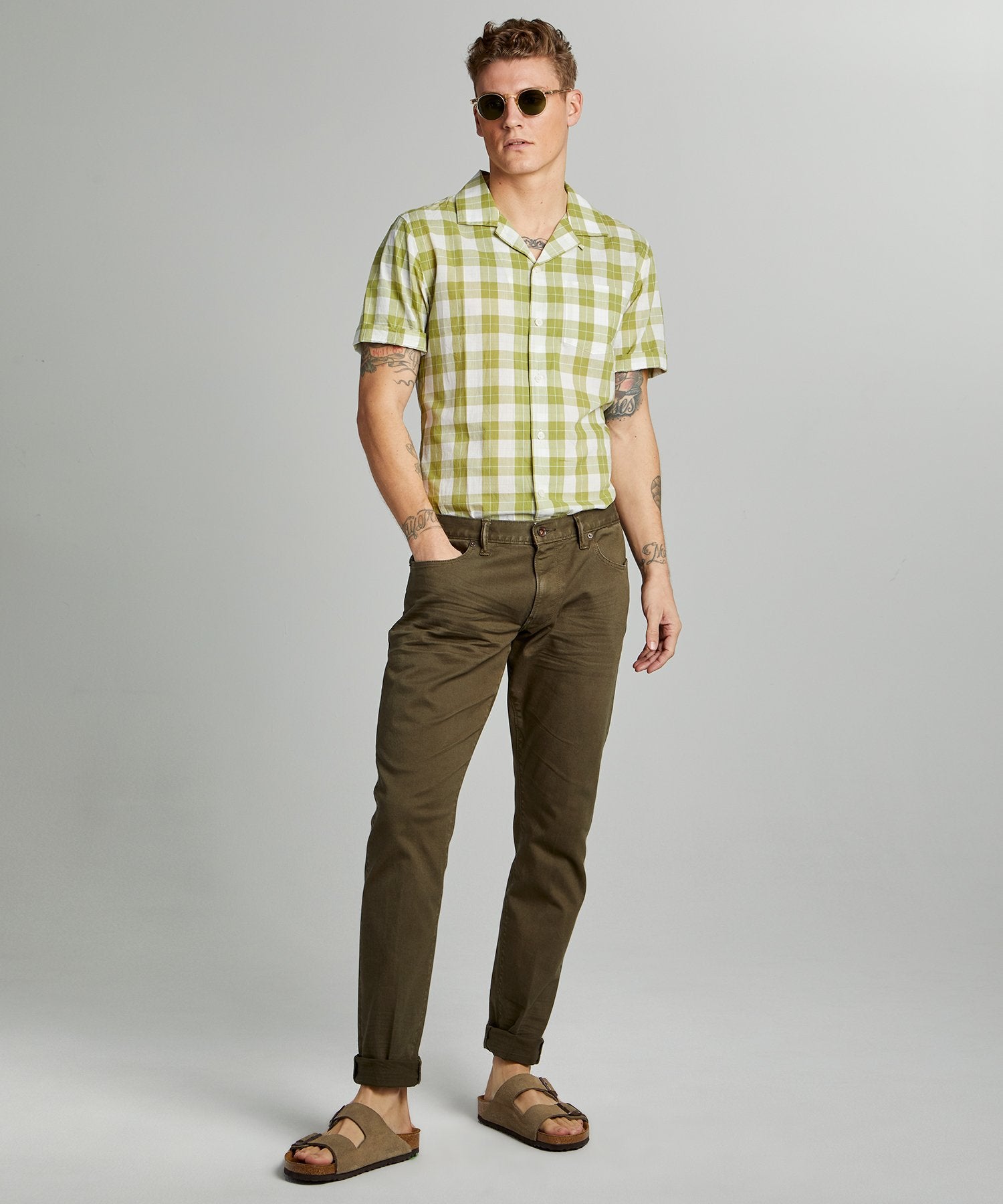 This modern hybrid merges the best features of your favorite denim and your trusty chinos into one truly perfect pair of pants. Crafted from garment-dyed twill with a touch of stretch, and tailored with a slim fit similar to our selvedge jean, the essential 5-Pocket Chino is casual yet elevated, comfy yet polished, and ready for just about anything. Leg tapers slightly from knee to hem; available in multiple inseams.