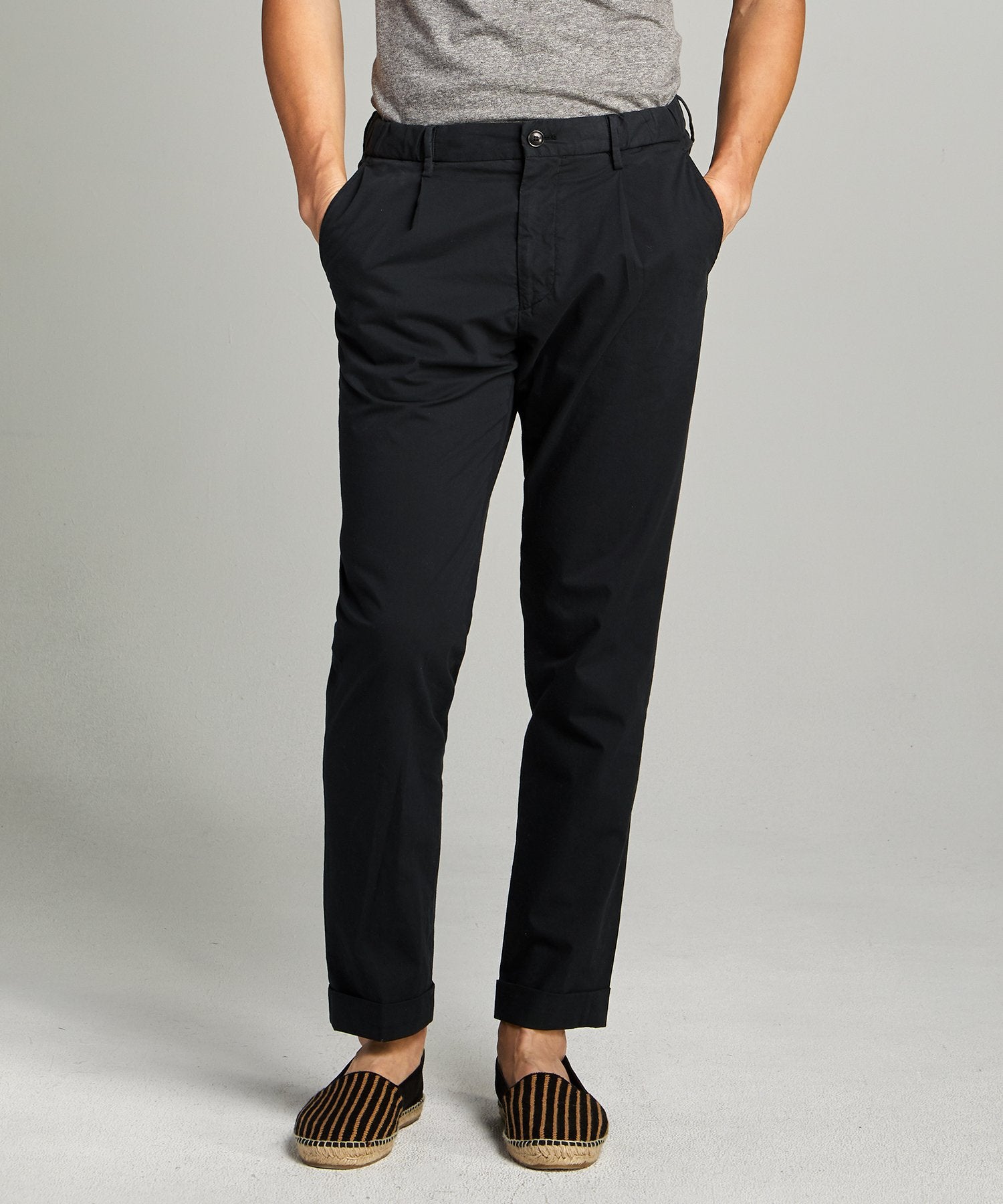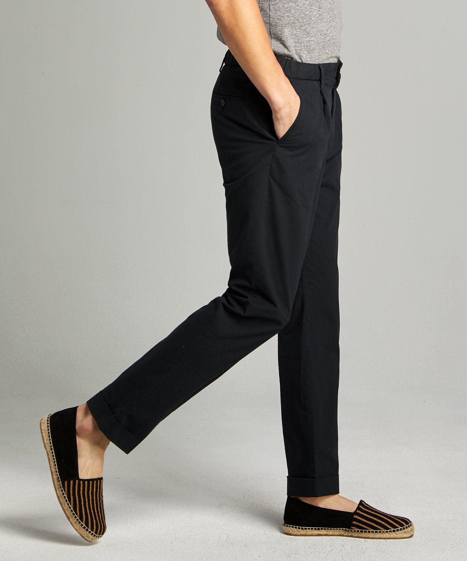 With a modern trim fit for every guy, the garment dyed traveler suit trouser is our take on casual suiting with an easy to wear concealable elastic drawcord and stitched in pintuck. Made in Portugal in a factory renowned for it’s tailoring, this pant is the perfect way to uplevel your springtime suiting and find a staple that looks as good with a button-down and matching jacket or with a tee and overshirt for a laid-back vibe.
