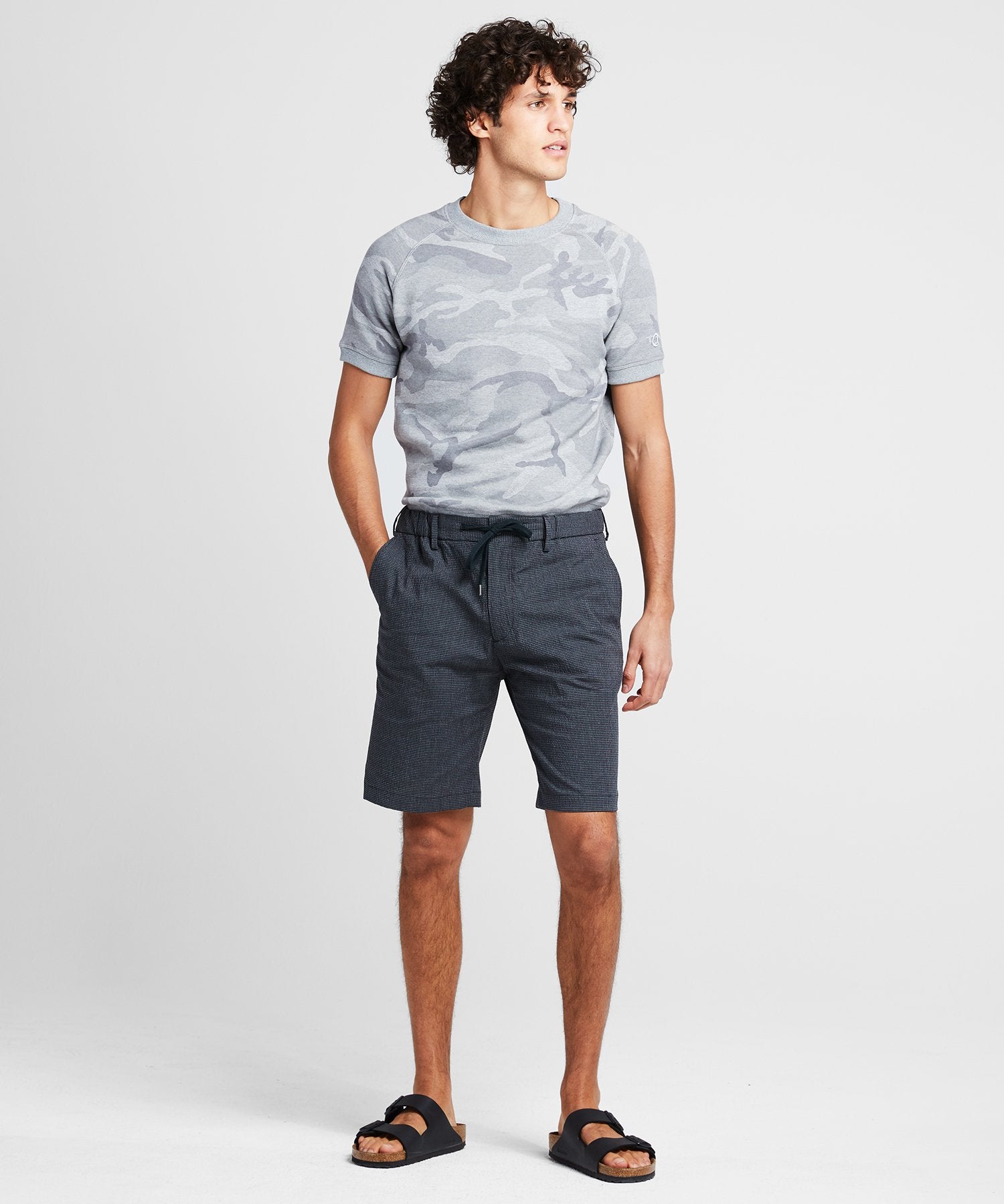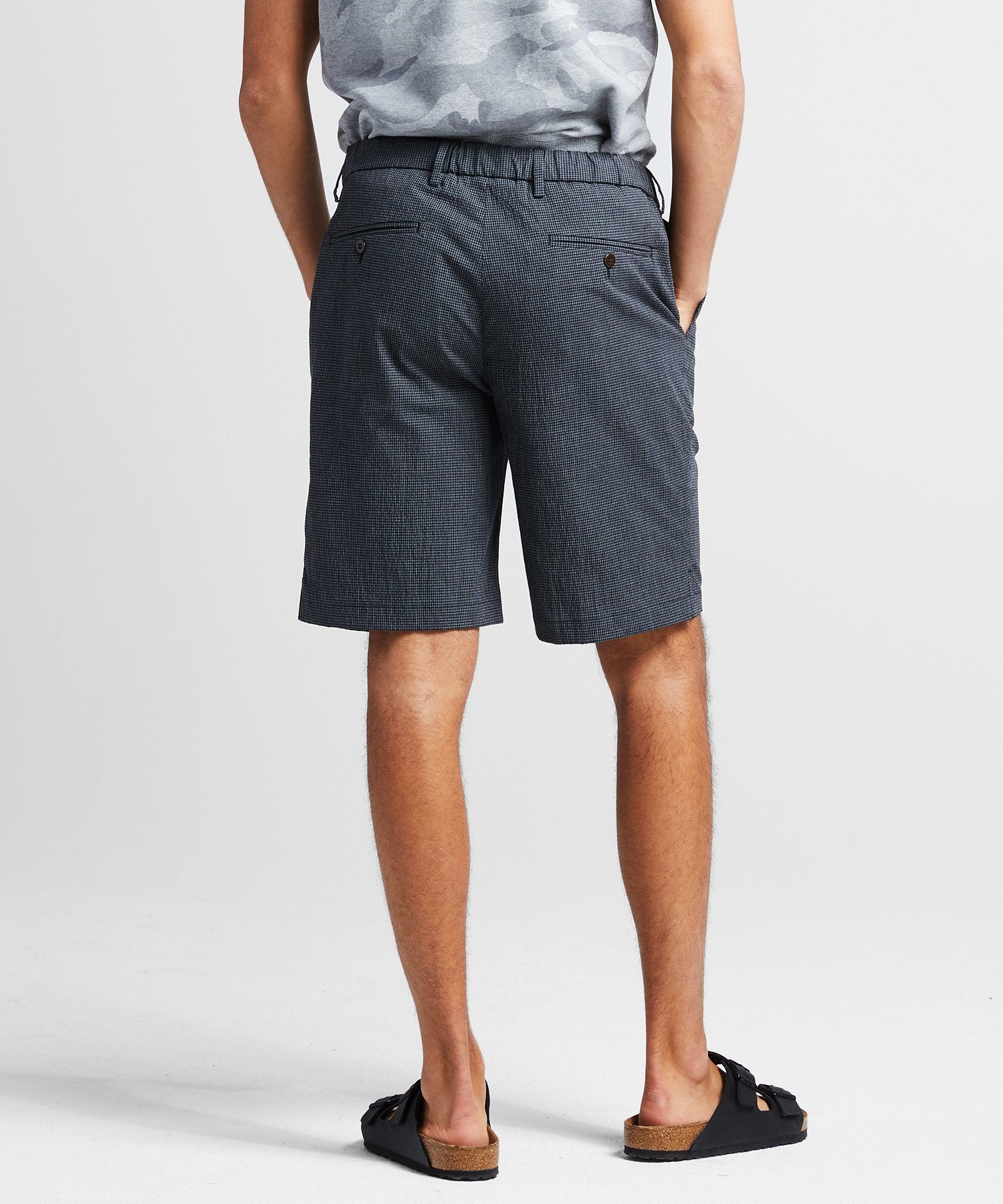 With a modern trim fit for every guy, the blue seersucker traveler short is our take on casual summer with an easy to wear elastic drawcord waist. Made in Portugal in a factory renowned for it’s tailoring, this short is the perfect way to add a twist to your weekend and find a staple that looks as good with a button-down or with a tee and overshirt for a laid-back vibe.