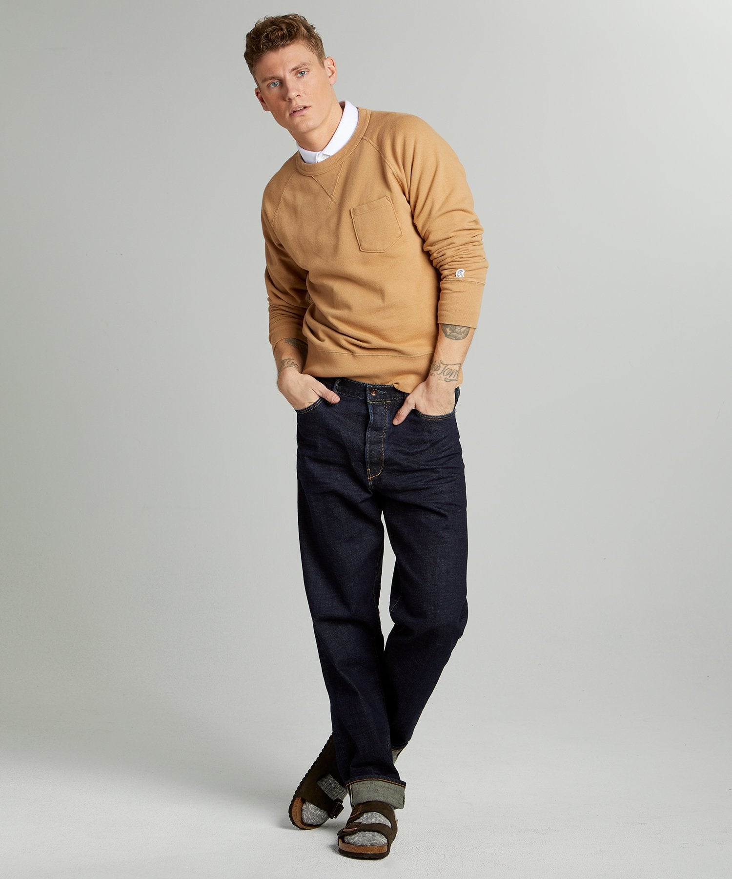 Our selvedge jean is cut with an oversized relaxed fit from premium Japanese stretch denim and rinsed and faded for a lived-in feel from the first wear. Softer than our other jeans and styled with a button fly, this signature style is our take on the American icon, destined to get even better with age.