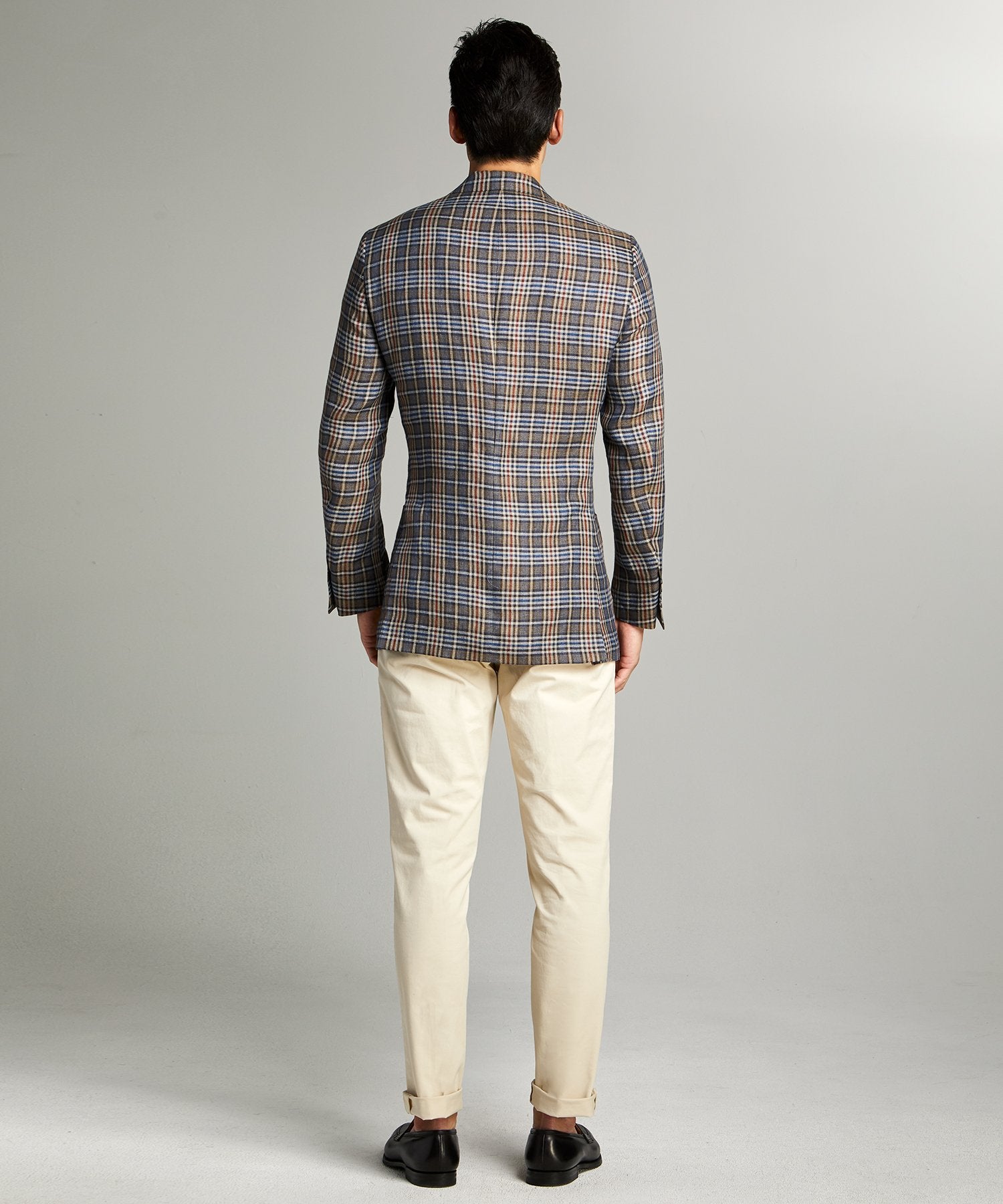 Our classic unconstructed sportcoat is a year-round staple, with a laid-back yet polished look. This piece is cut from linen hopsack making it a perfect transitional layer, half-lined with butterfly construction and impeccably tailored to look equally smart over a button-down, polo or tee.