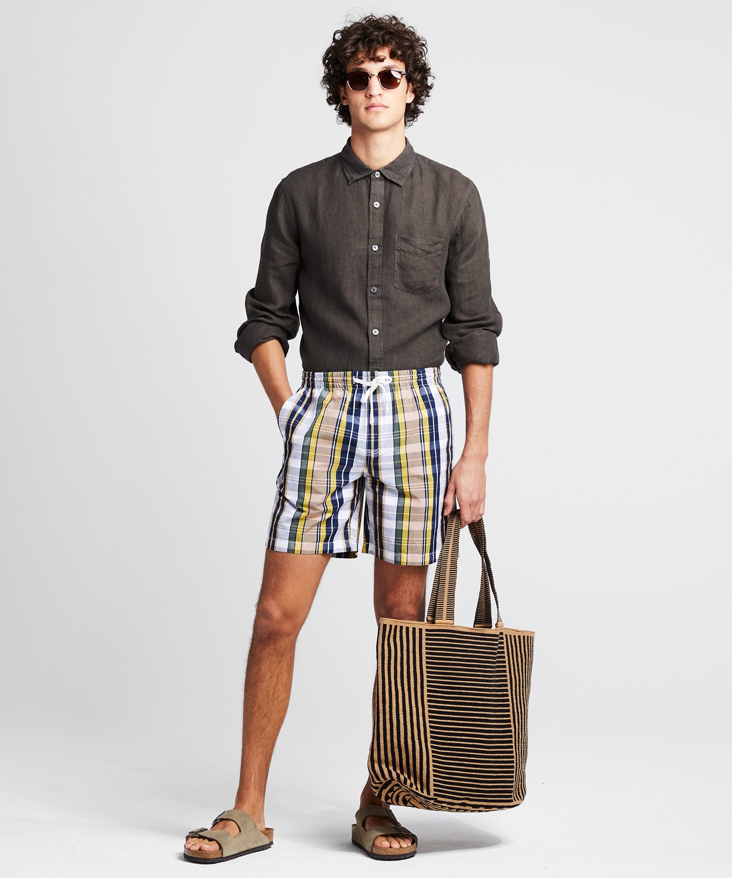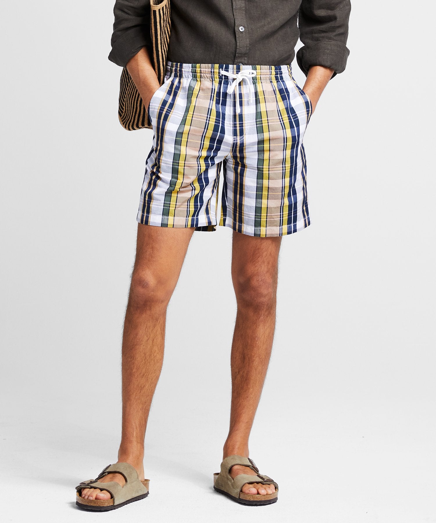 An off-duty essential crafted from premium Italian cotton linen for ease of movement. This springtime madras pattern with pull-on styling and a softly tailored shape is your all-day, everyday summer short.