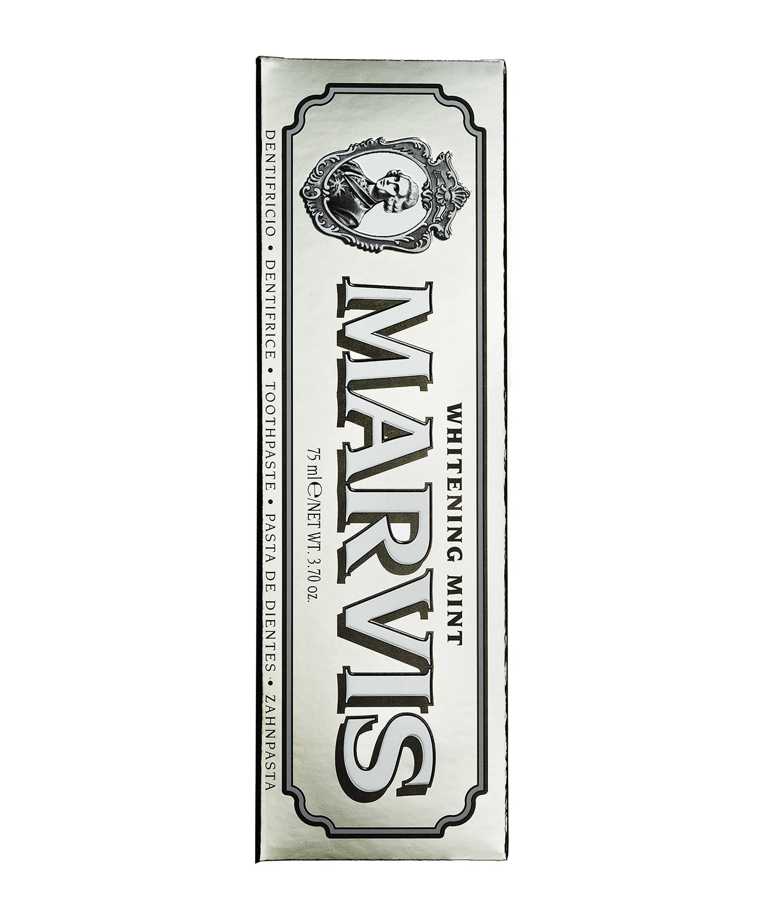 Marvis' toothpaste - packaged in an apothecary tube - is made in Florence, Italy, where the brand has been a trusted favorite for generations. Designed specifically to freshen breath and whiten teeth, this cool mint-flavored formula is just what you need for a mega-watt smile.