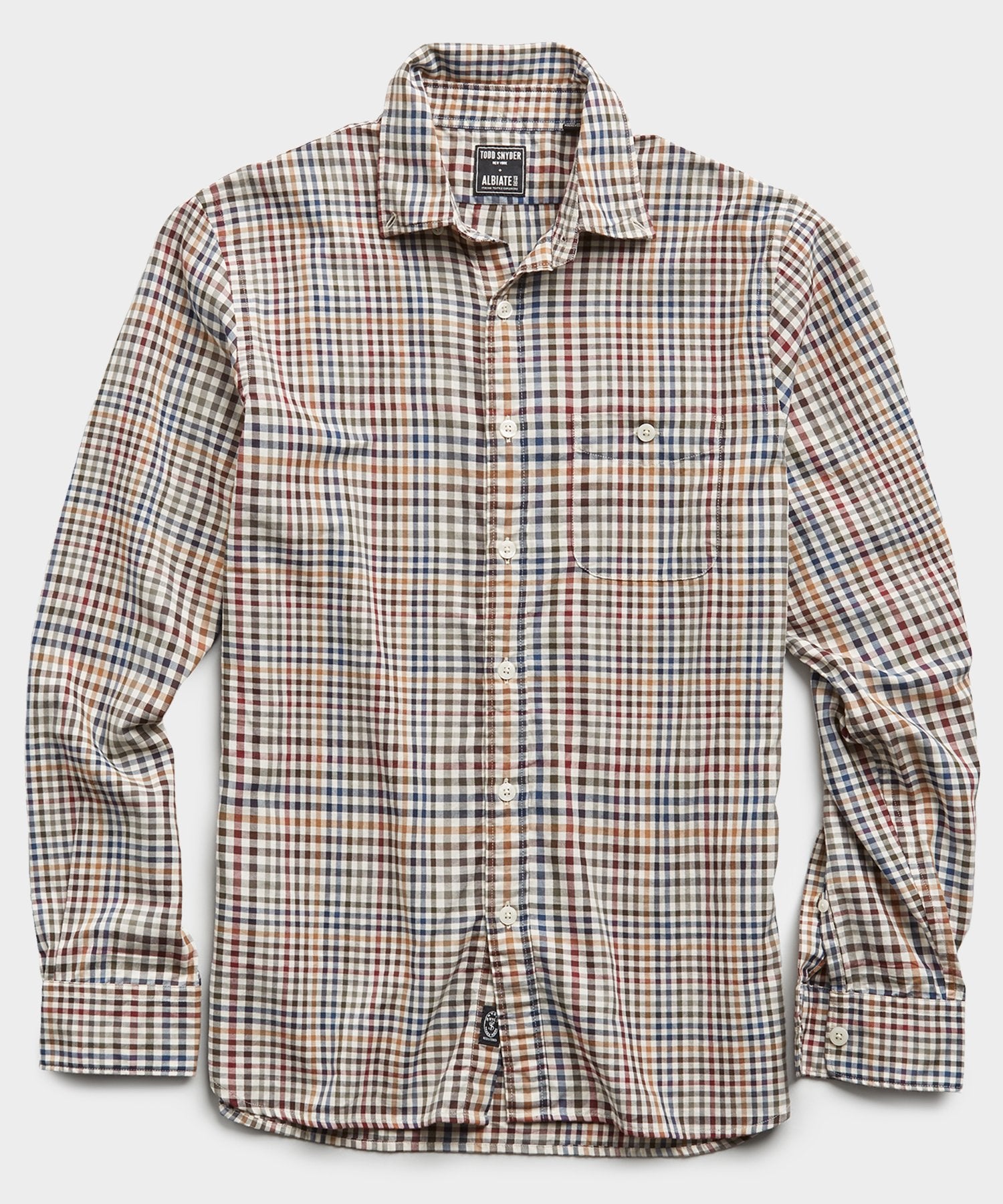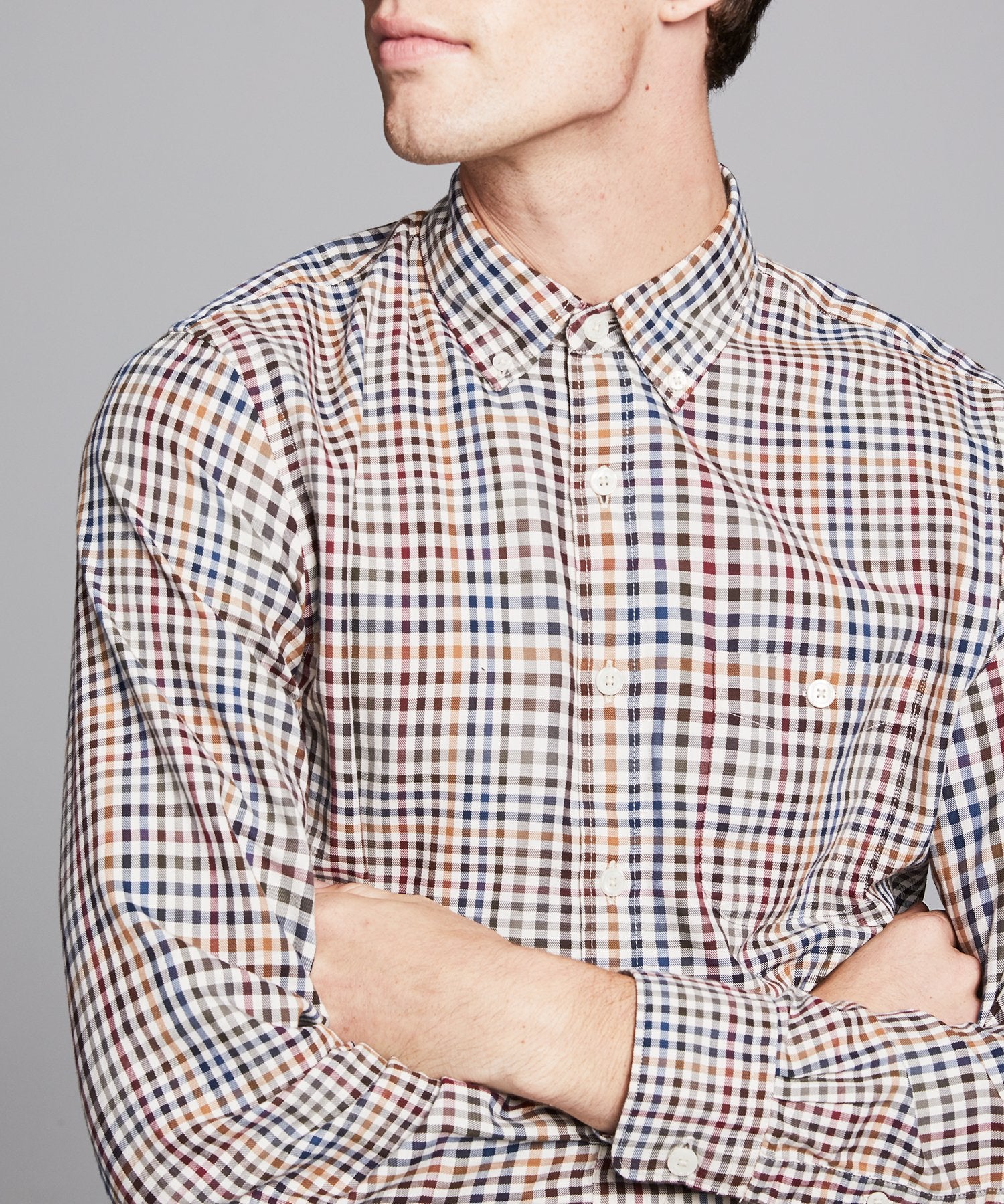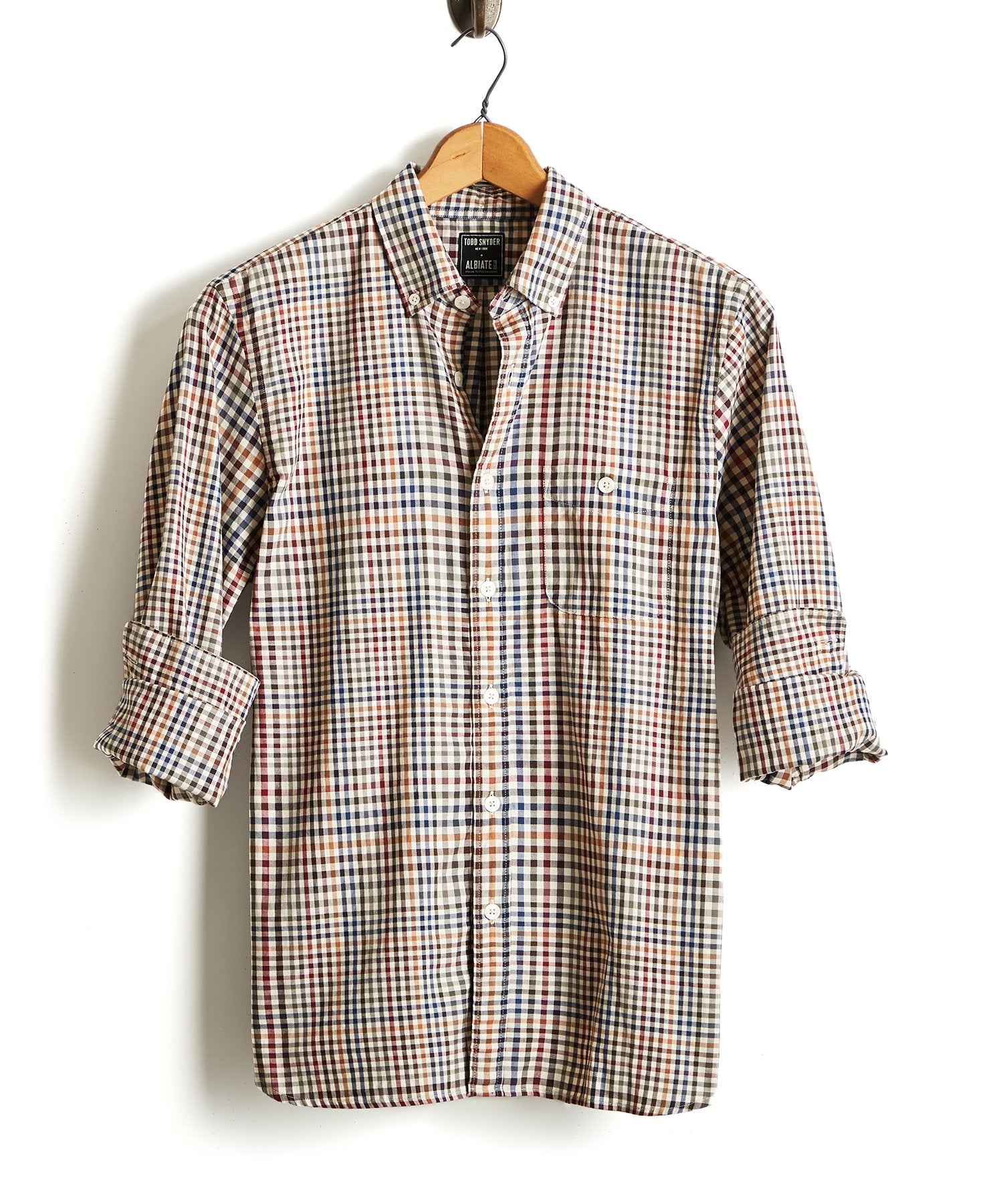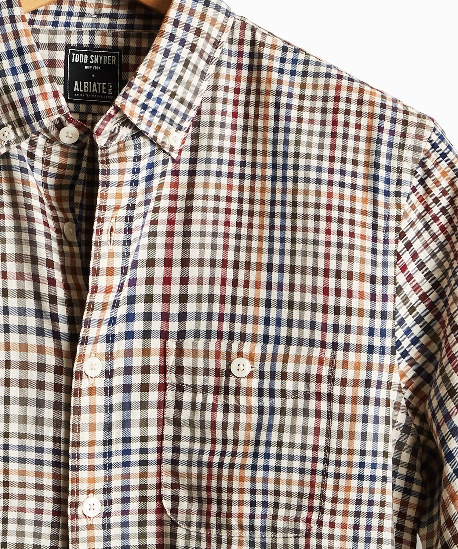 A classic staple of any modern gentleman’s wardrobe, this button-down has been cut in a tailored silhouette with premium, Italian fabric from Albiate 1830. Made from 100% cotton, the garment is truly lightweight maintaining breathability without losing strength and durability. The detailing and versatile Tattersall colored checks and intersecting lines capture the playful yet polished spirit that is Todd Snyder.
