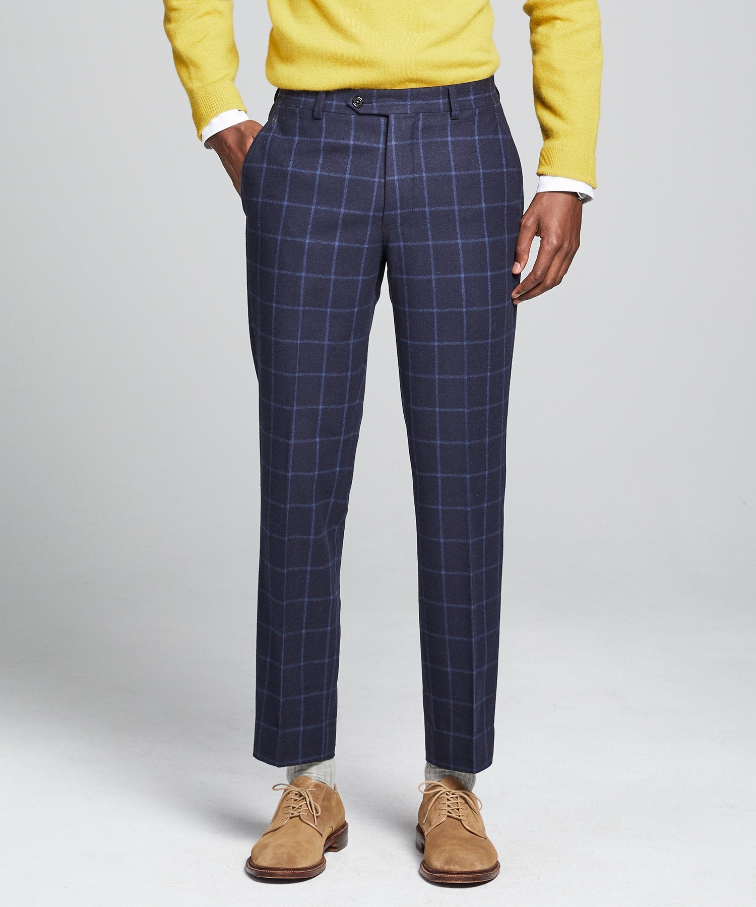 Made in Canada from a premium wool blend from Italy’s Tollegno 1900 mill, the Navy Wool Windowpane Trouser is tailored with our signature Sutton fit. It's a versatile and classic style that works with a matching suit jacket or as a traditional foundation piece for other fall looks. Try pairing with a chunky knit and sneakers for an elevated weekend look.