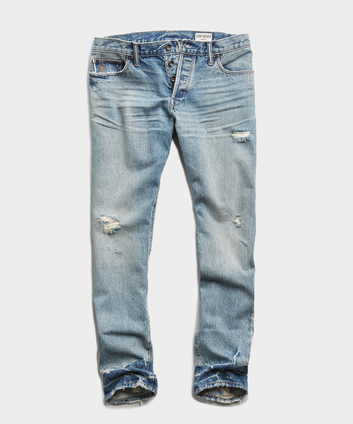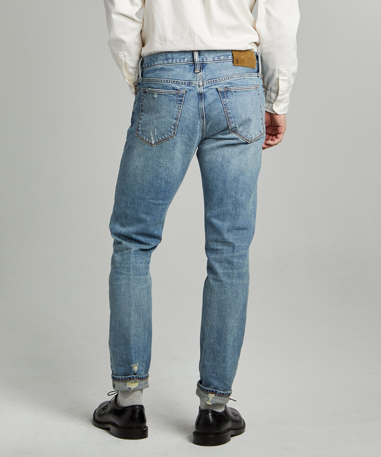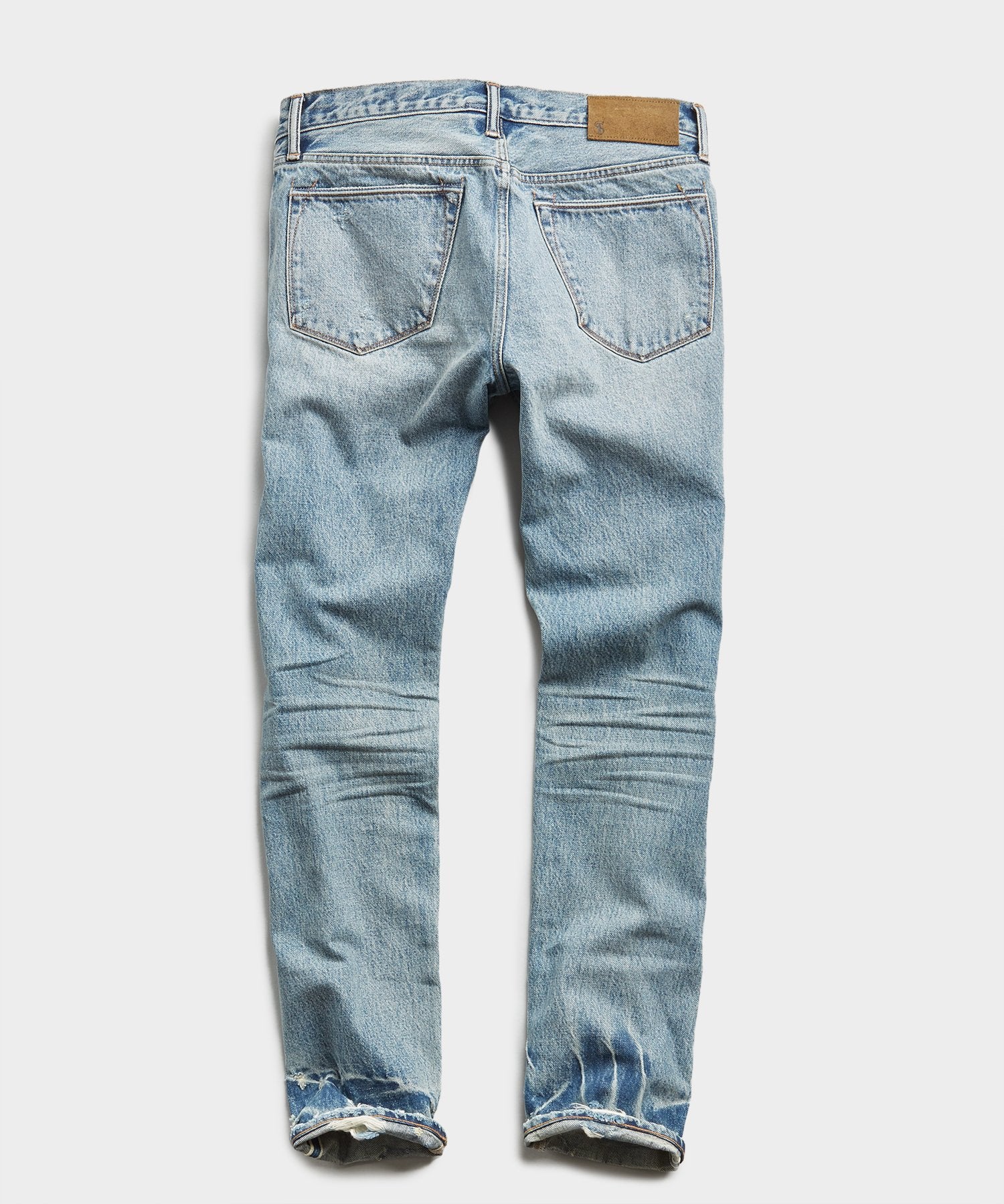 Cut from premium Japanese stretch selvedge fabric, and rinsed and distressed for a lived-in feel from the first wear. Softer than our other jeans and styled with a button fly, this new signature style is our take on the American icon, destined to get even better with age.