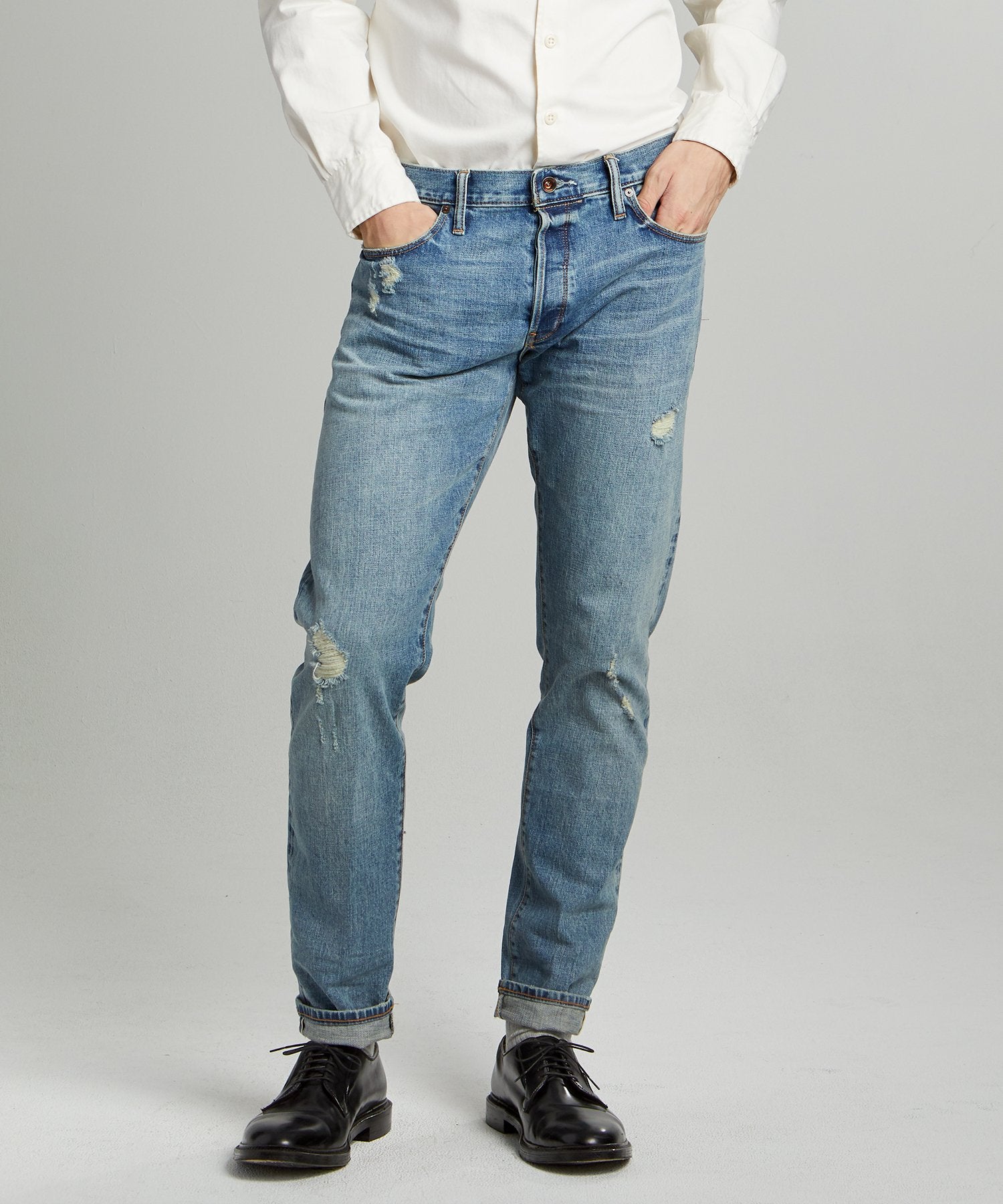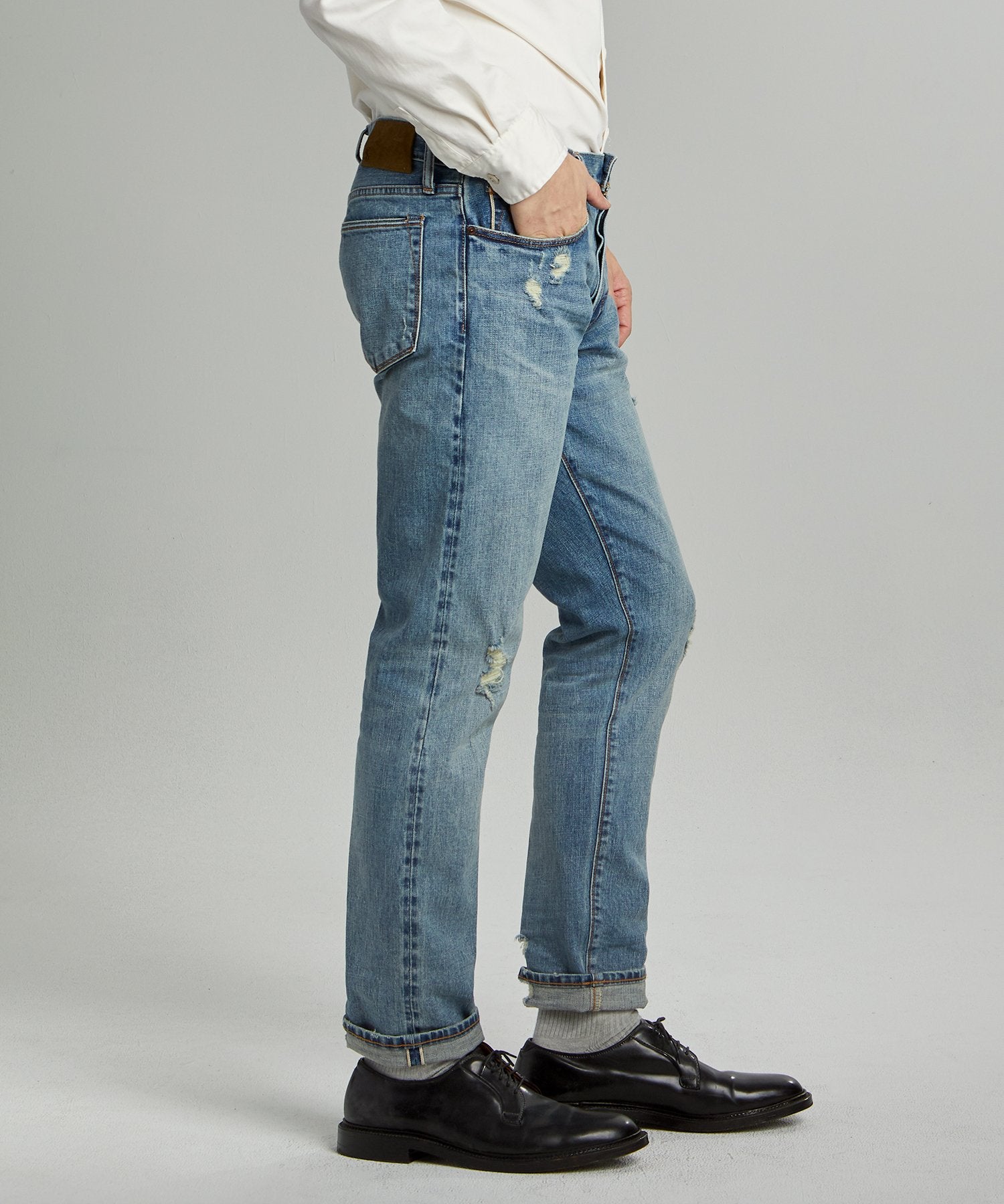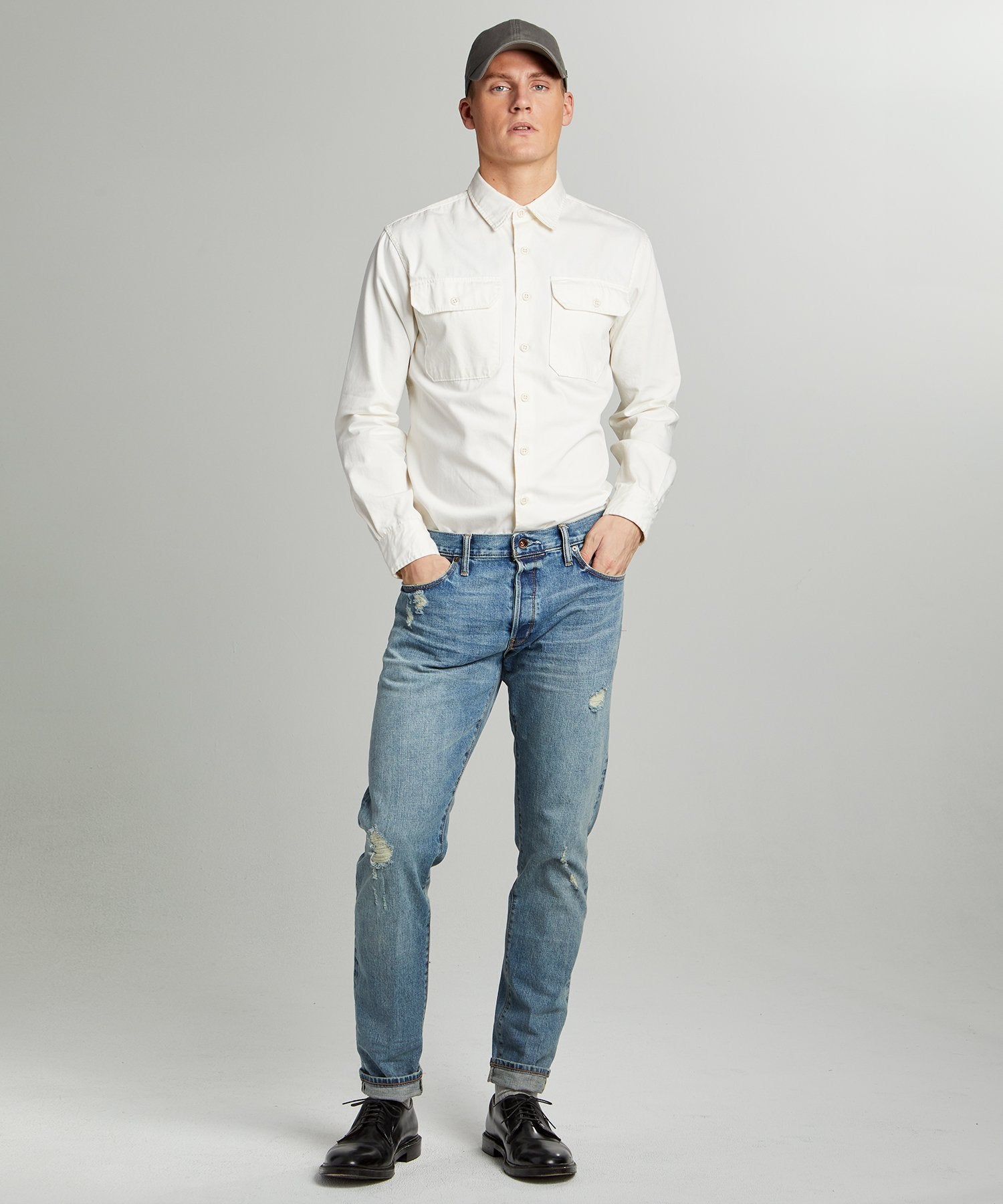 Cut from premium Japanese stretch selvedge fabric, and rinsed and distressed for a lived-in feel from the first wear. Softer than our other jeans and styled with a button fly, this new signature style is our take on the American icon, destined to get even better with age.