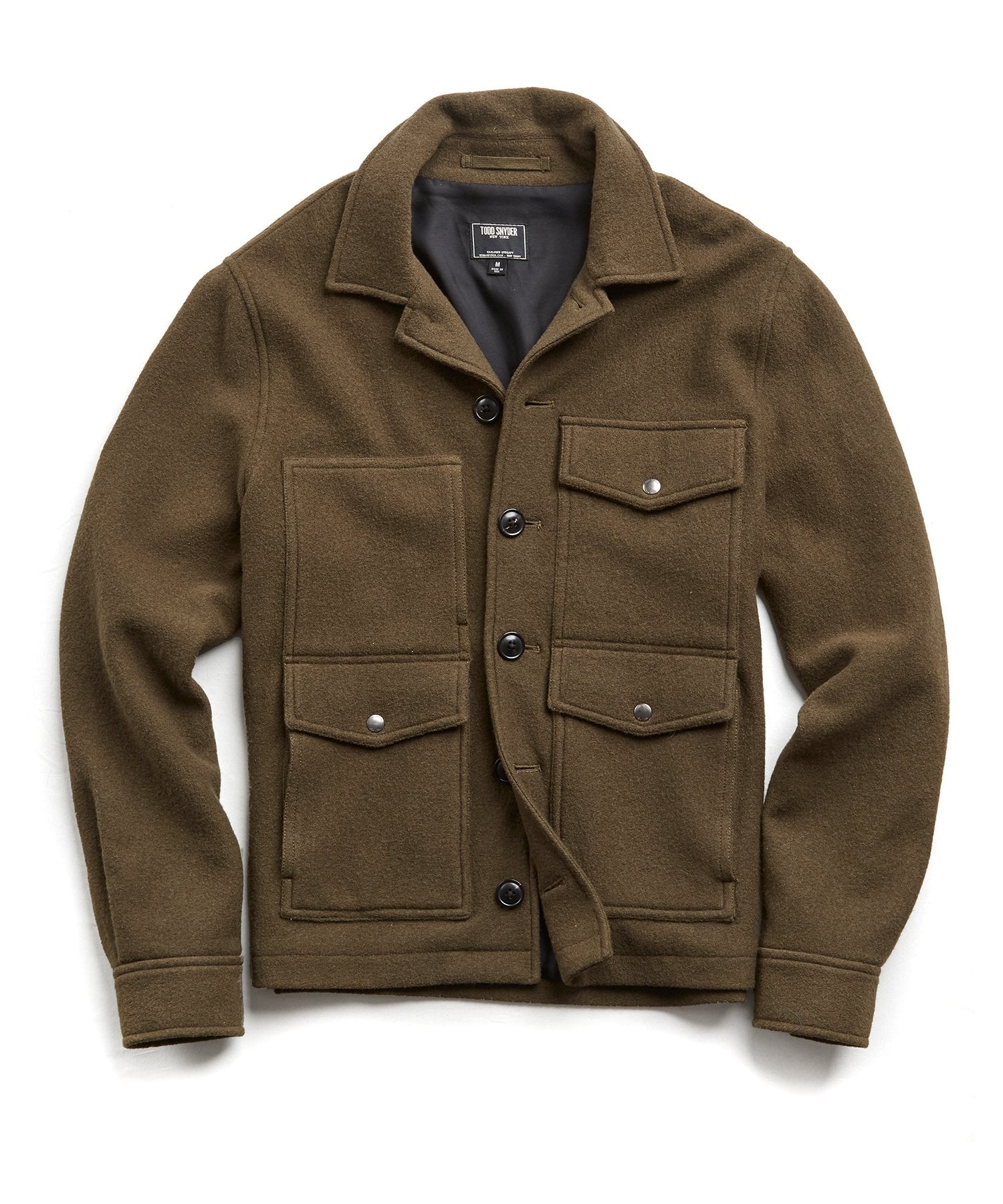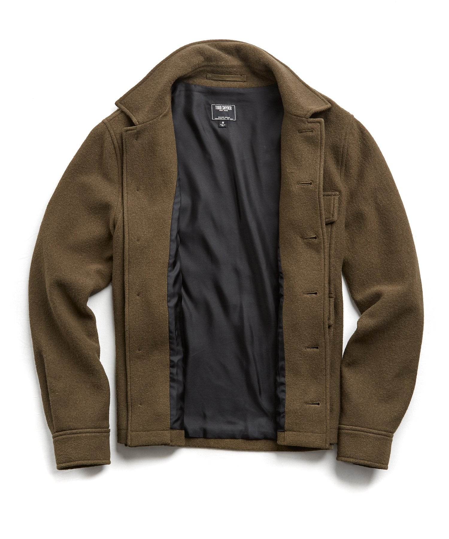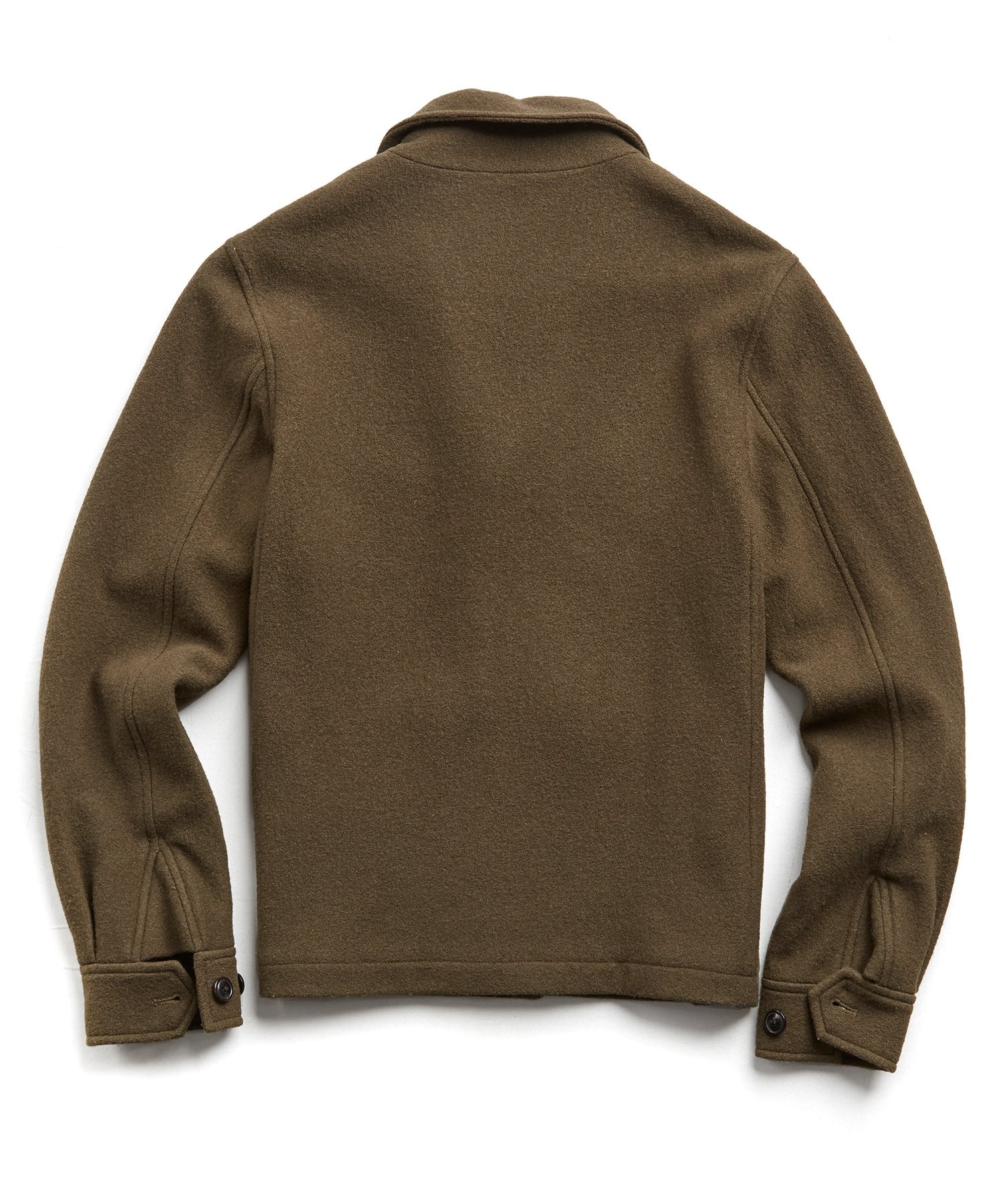 Made from heavyweight, Italian double-face fabric from Italy’s Tessuti di Sondrio, this Olive Cruiser Jacket has a workwear-influenced silhouette that cues perfect layering vibes. With an oversized fit that’s perfect over a chunky sweater or turtleneck, this twist on a classic showcases a 4-pocket, button front with woven trim detailing, felt undercollar, Bemberg-lined sleeves, and button cuff finish.