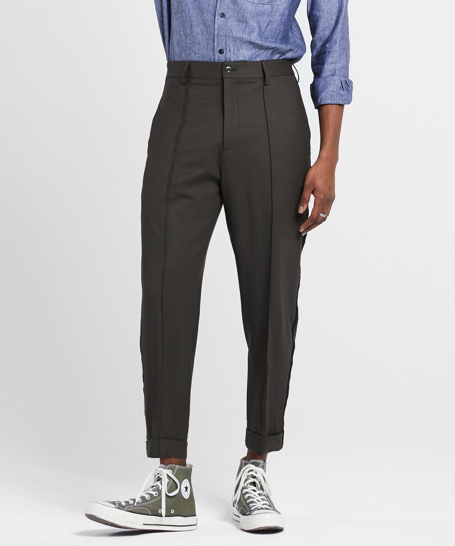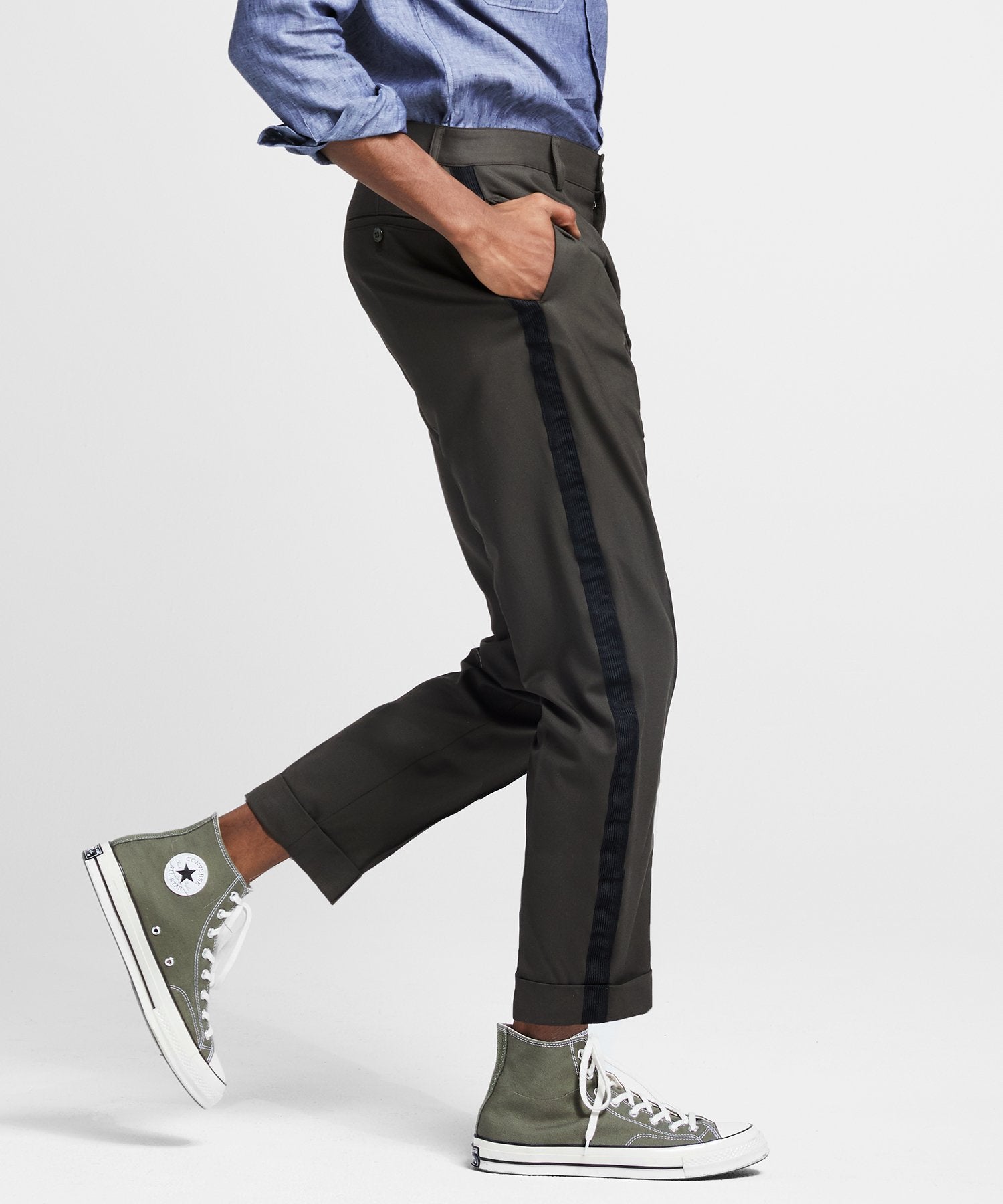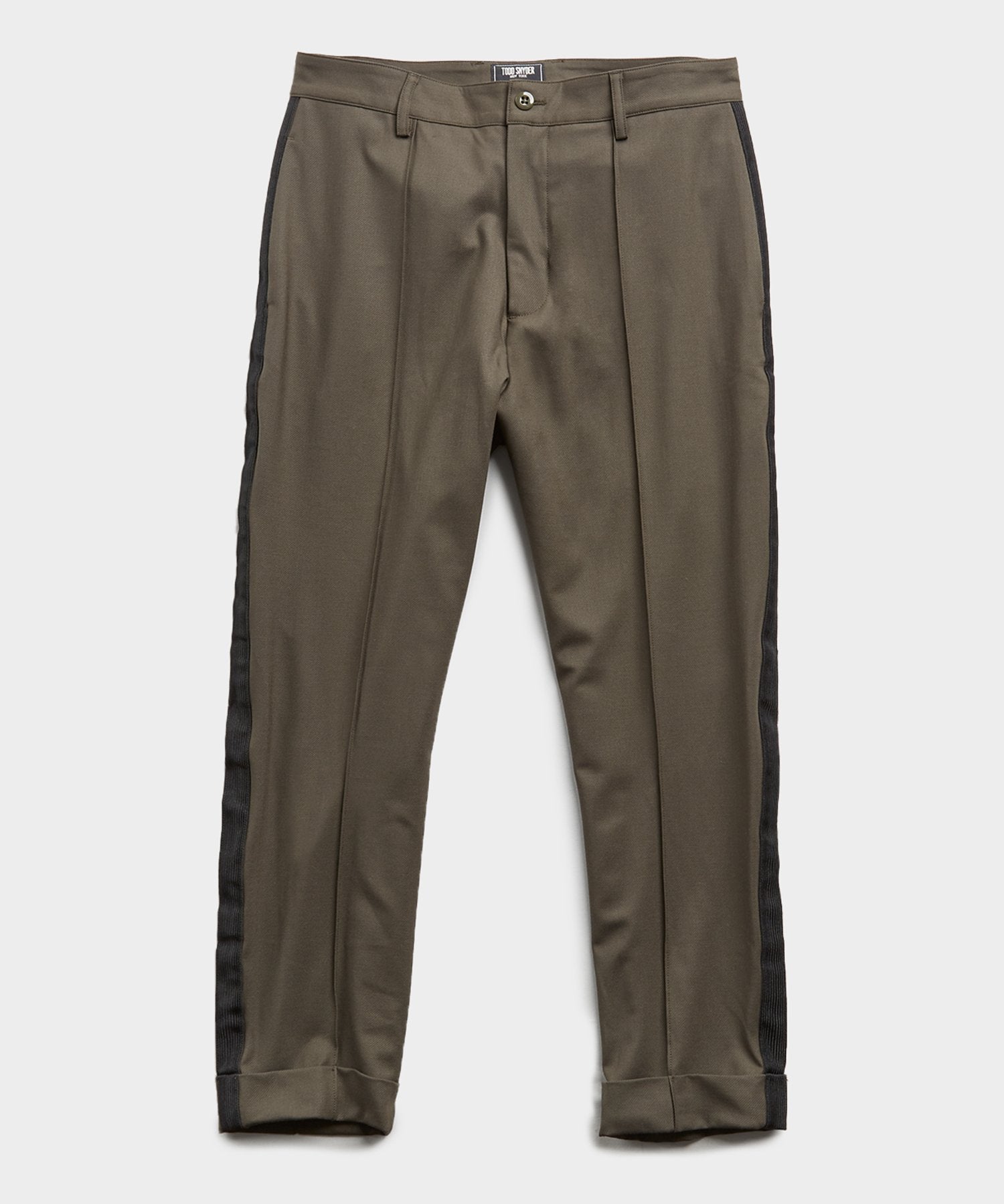 Made in New York with premium Italian stretch wool cavalry fabric from the world-renowned Tollegno mill, these military-inspired dress pants are a classic addition to your fall wardrobe. Stiched in a pintuck at the front and featuring braided tape stripe on the side seam. The tapered fit allows you to pair them with a button-down and coat for a client meeting or a chunky knit for a weekend date.