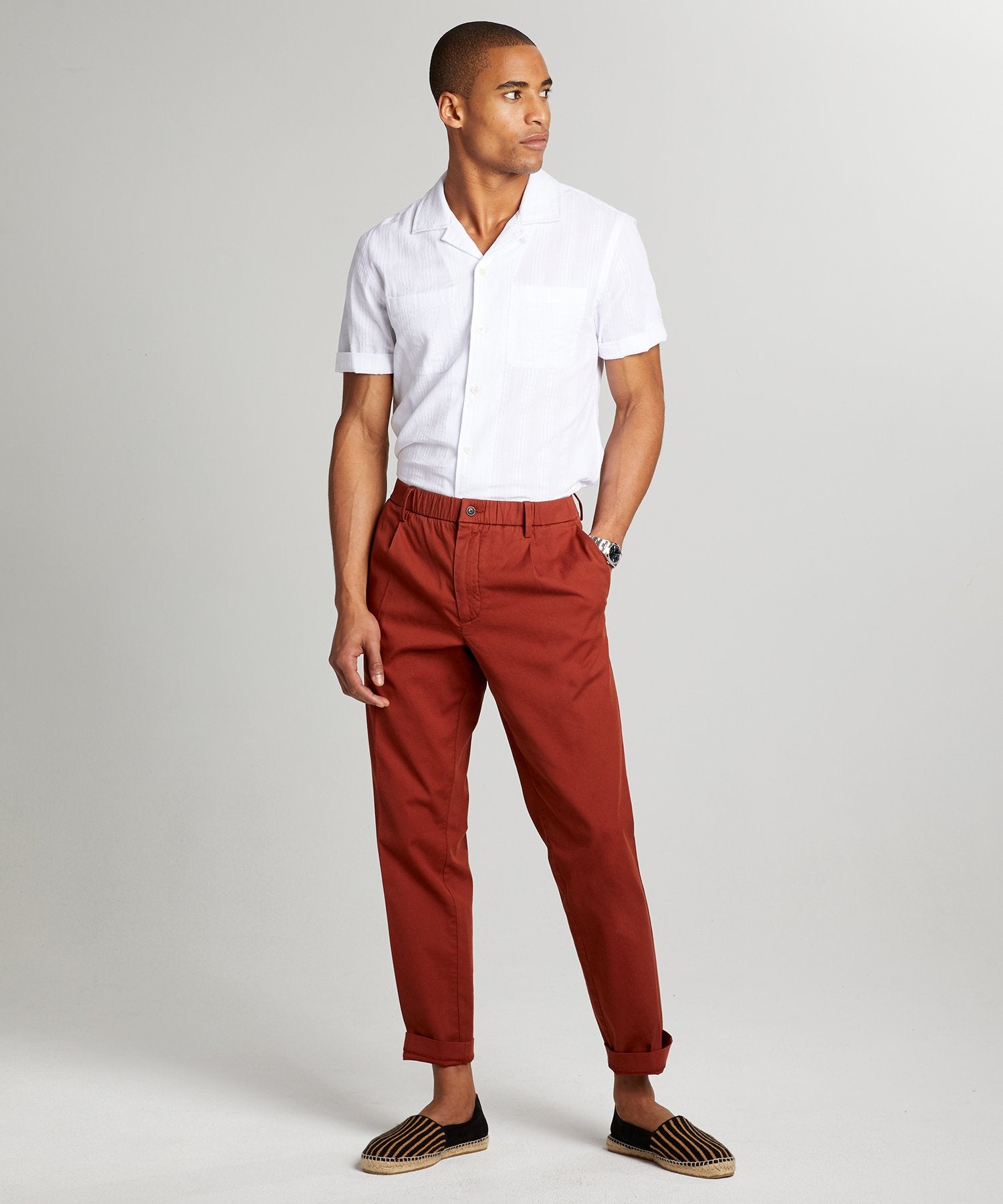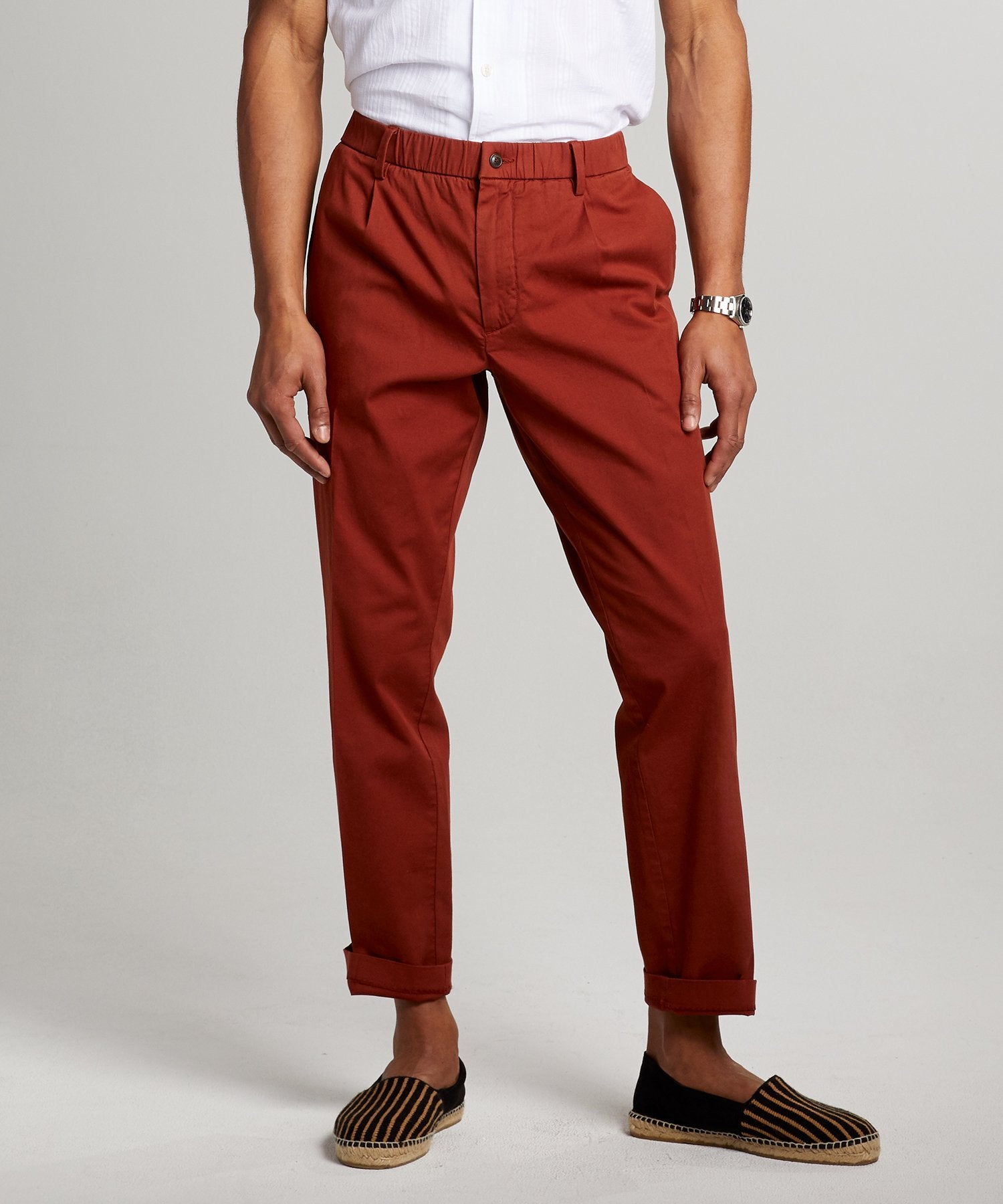 The pleated pant is our casual take on a tailored trouser with an elasticated waist, relaxed upper body and tapered bottom with a slight crop. This pant is the perfect way to up level your pants game and find a spring staple that looks as good with a button-down as it would a tee for a laid-back vibe.