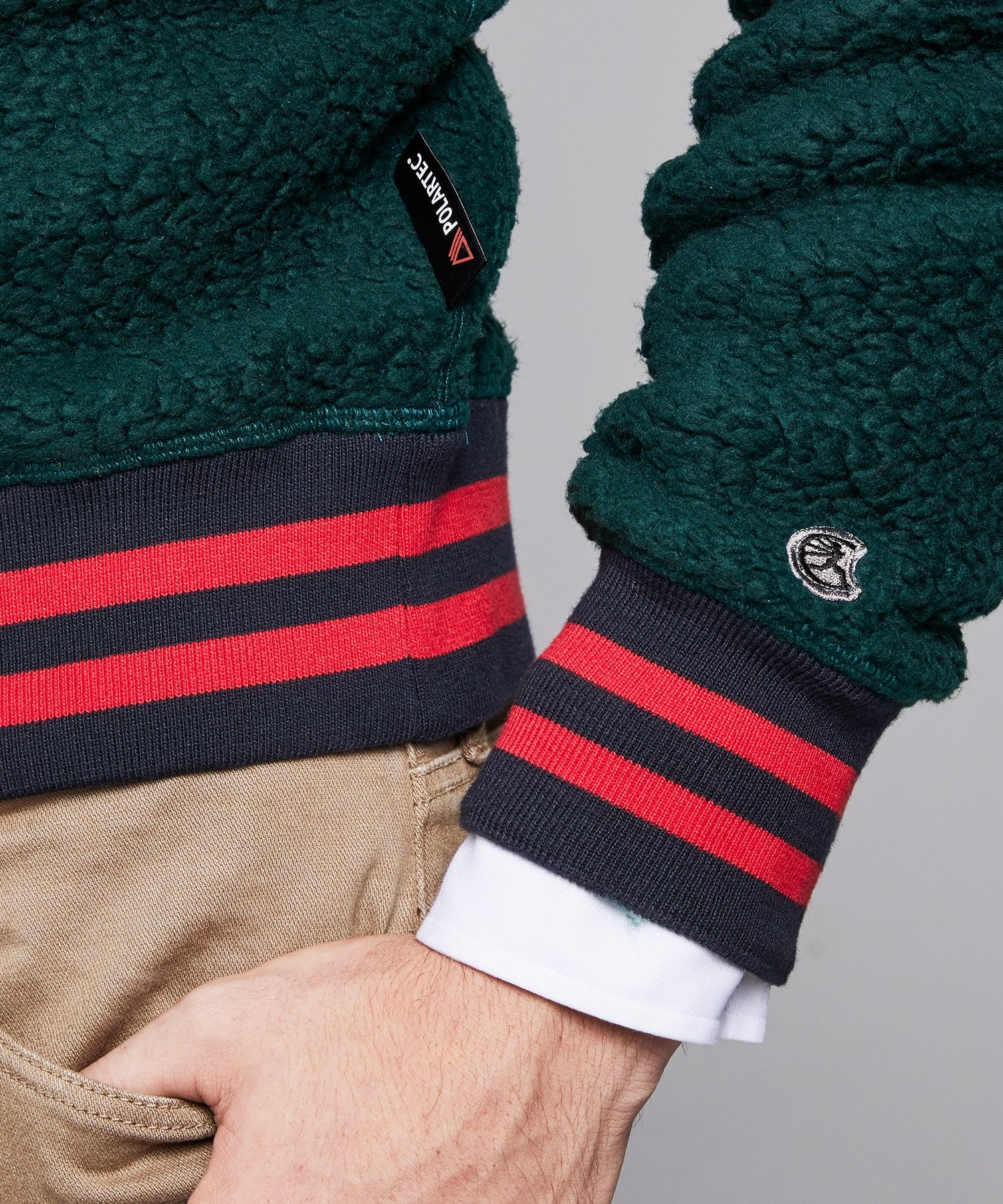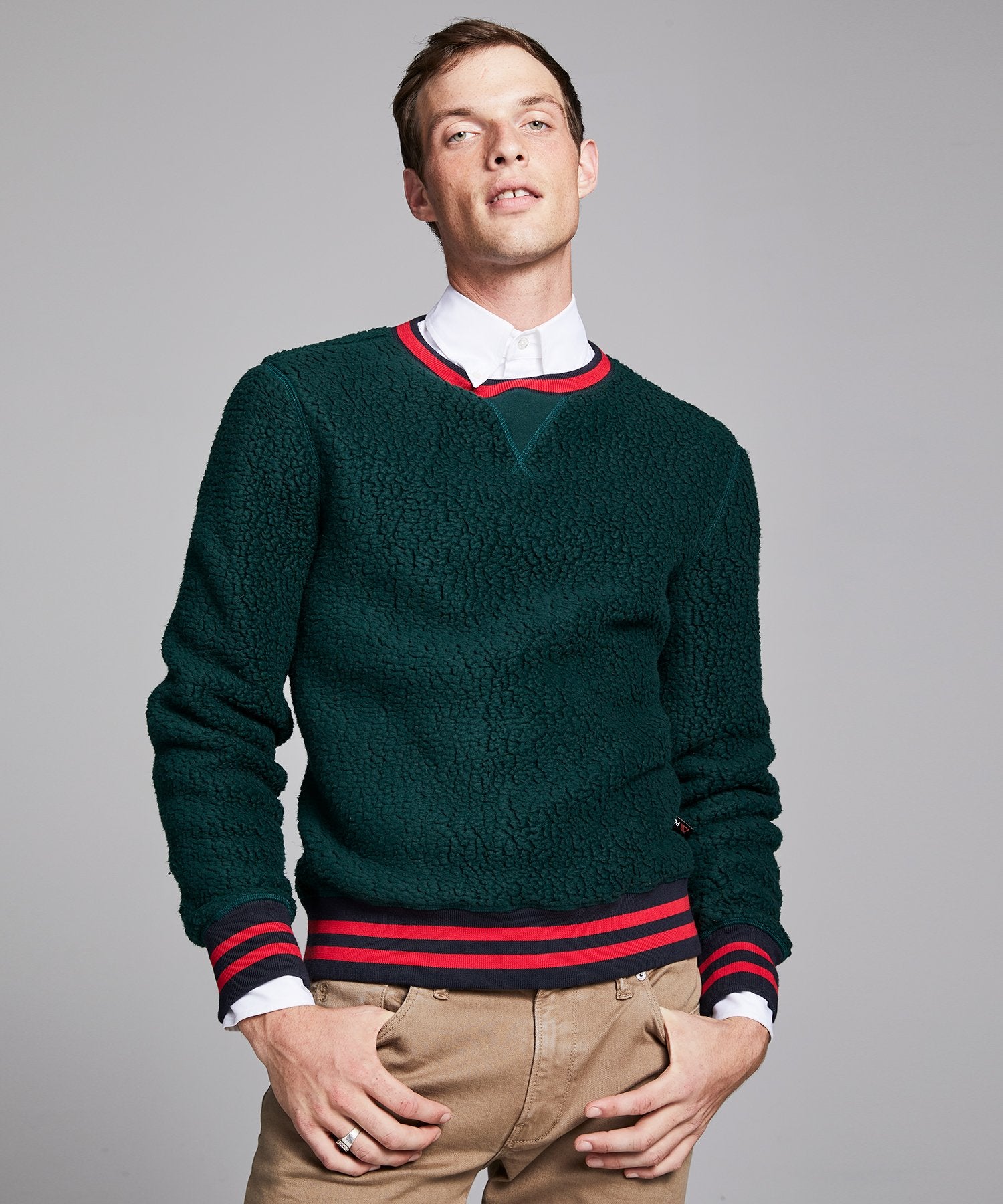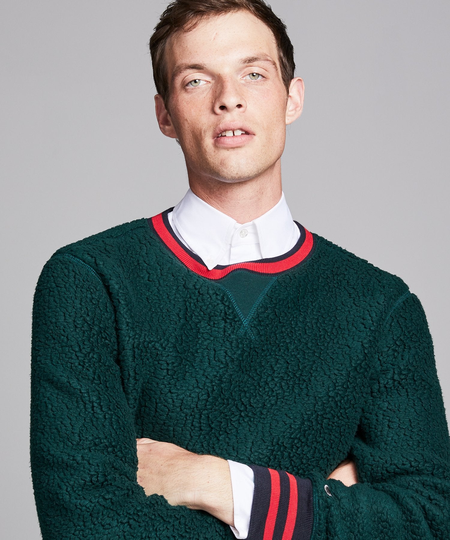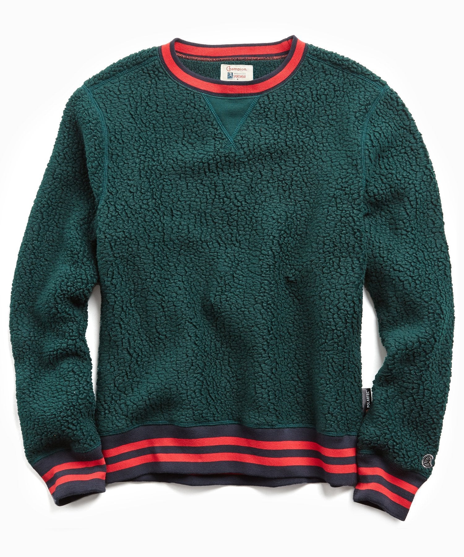 Our award-winning Polartec® crew is back and ready to be your must-have item for fall layering. Warmth is a given as it’s created from nearly weightless premium fabric. Slim fit with contrast ribs and striped tipping at the cuff, waist, and neck trim. Layer it up with a tee or button-down or as the final piece before your favorite coat. Created in collaboration with iconic American athletic brand Champion Sportswear, and exclusively designed and manufactured by Todd Snyder.