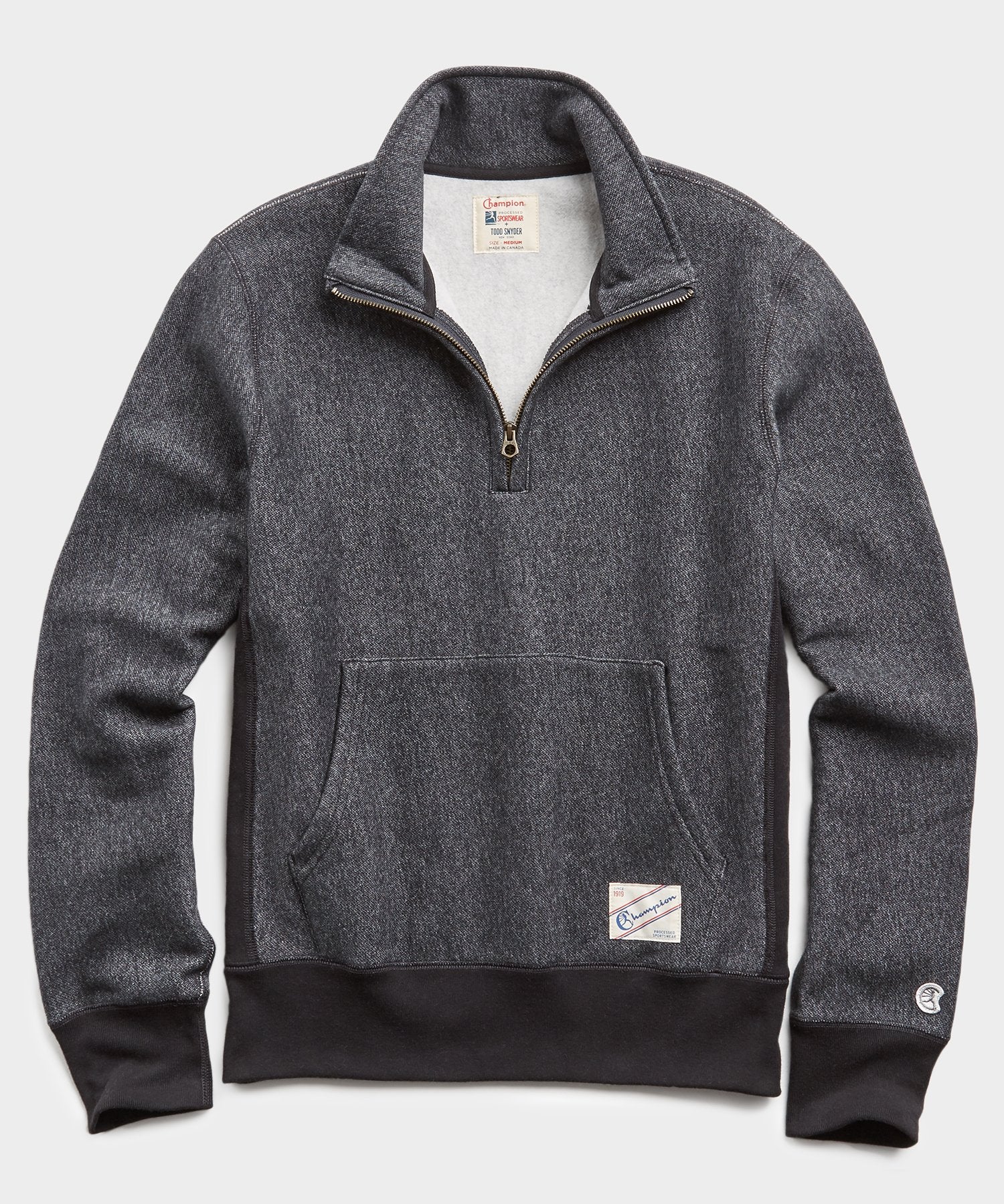 Heavyweight Quarter Zip Sweatshirt in Black Pepper Charcoal