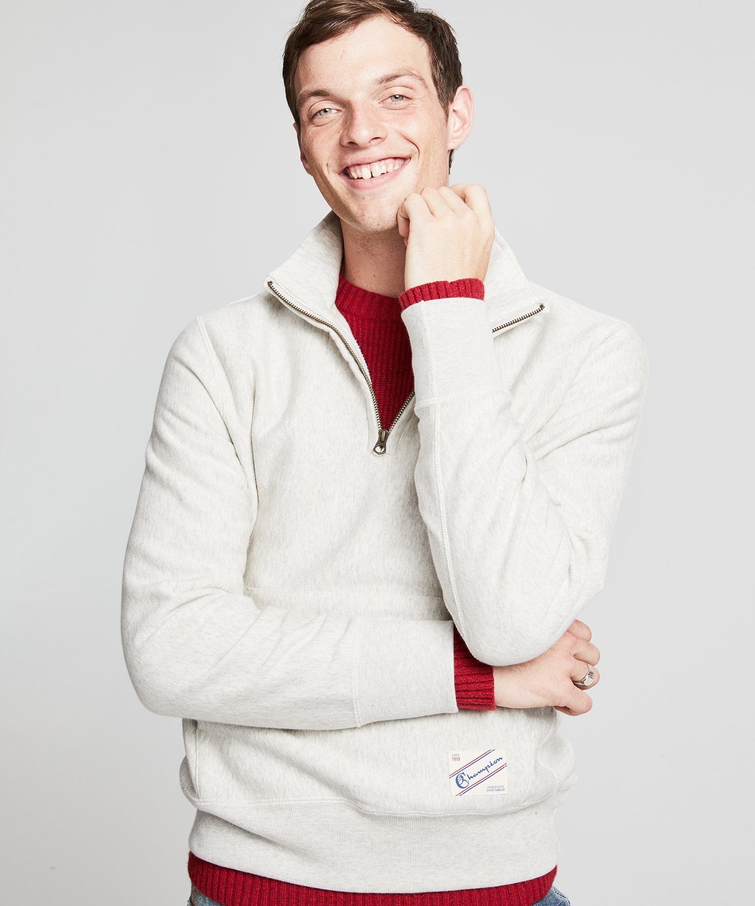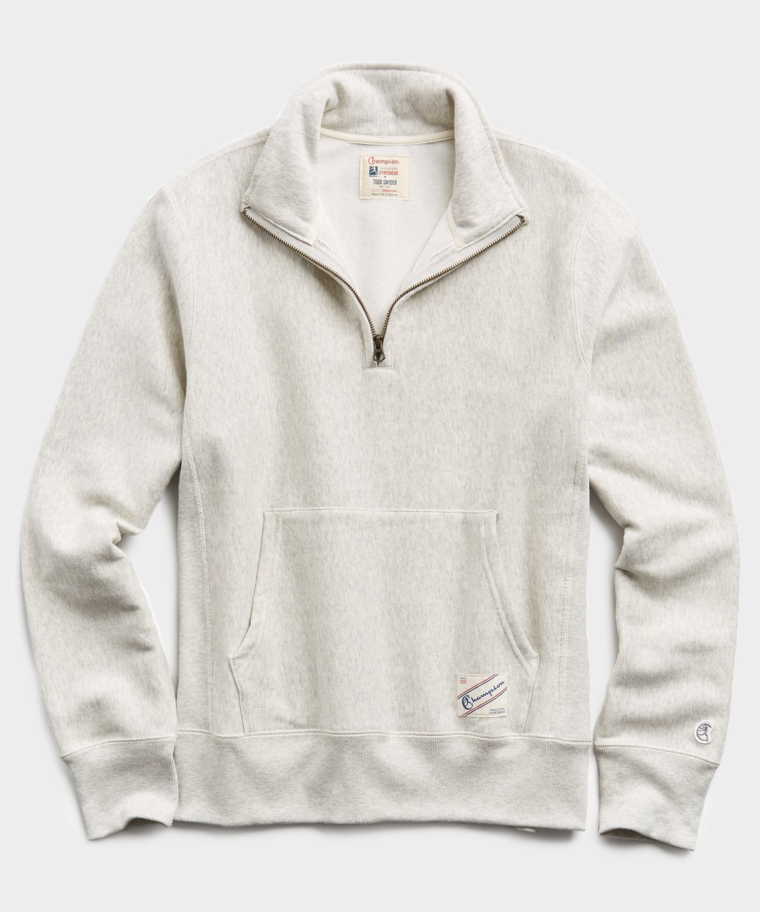 Made in Canada with 16 oz Fleece, this modern take on a vintage classic brings a heightened sophistication to this endlessly comfortable casual look. The functional design features a front pouch pocket, antique brass zippers, ribbed cuffs, and stretchy side seam panels for flexibility and breathability. The reverse weave fabric is cut on the cross grain to be as soft to the touch as it’s easy on the eye. The vintage-inspired Champion jock tag nods to the long-loved traditions of the style.