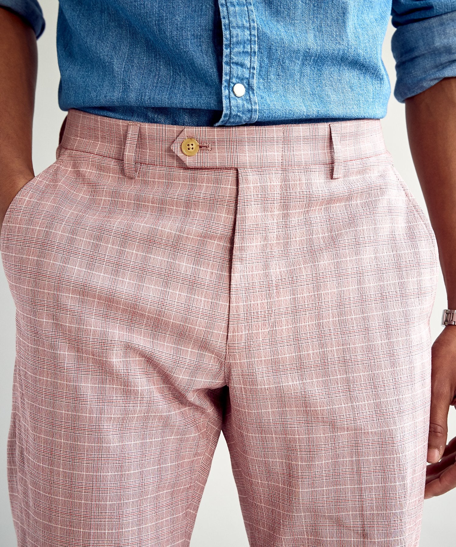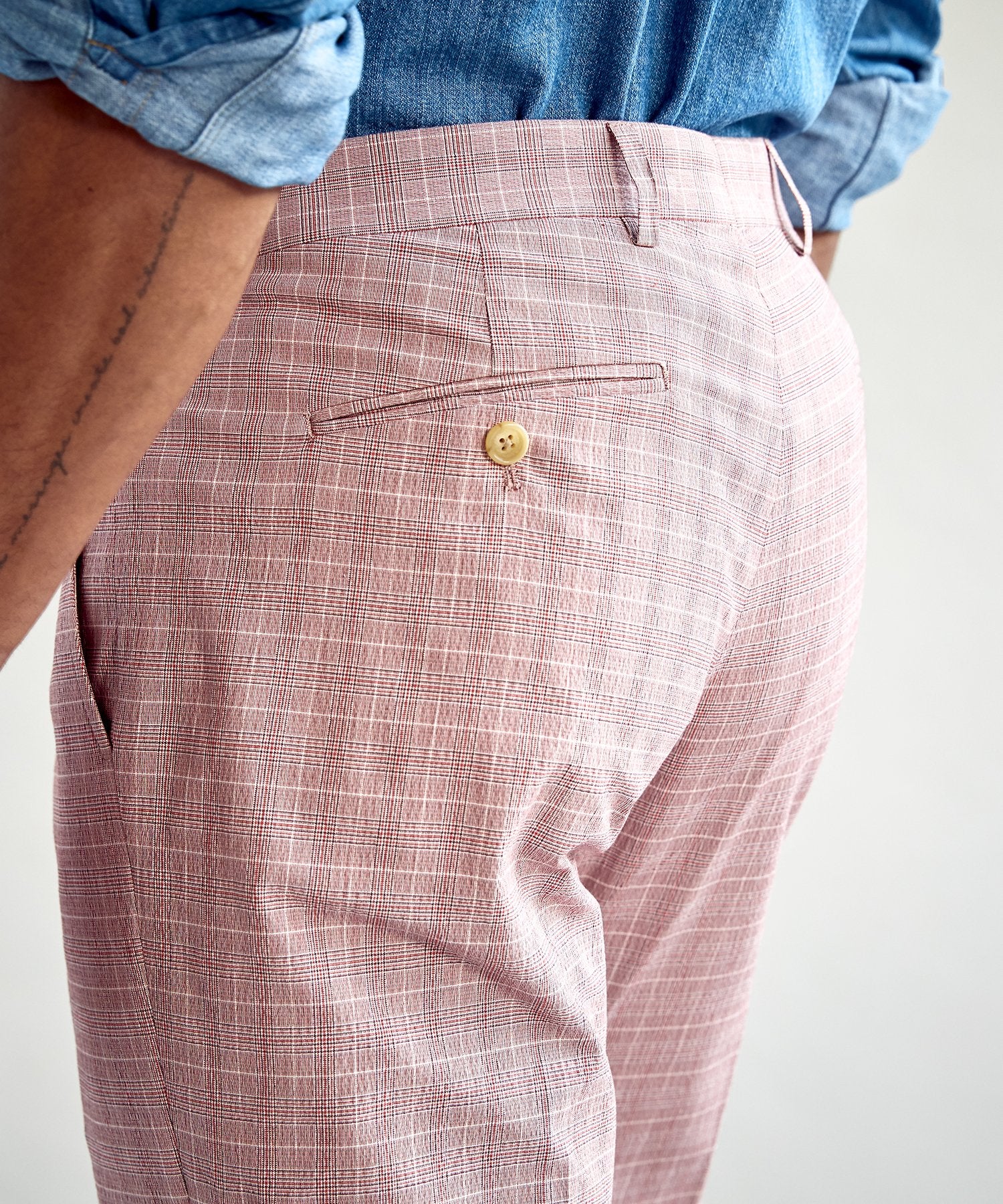 A versatile springtime style in a modern slim fit for every guy. This fresh pair is impeccably constructed in Canada from Italian stretch red check fabric and finished with premium details. Wear as your go-to spring workwear, or elevate your weekend look paired with a light sweater and your favorite kicks.